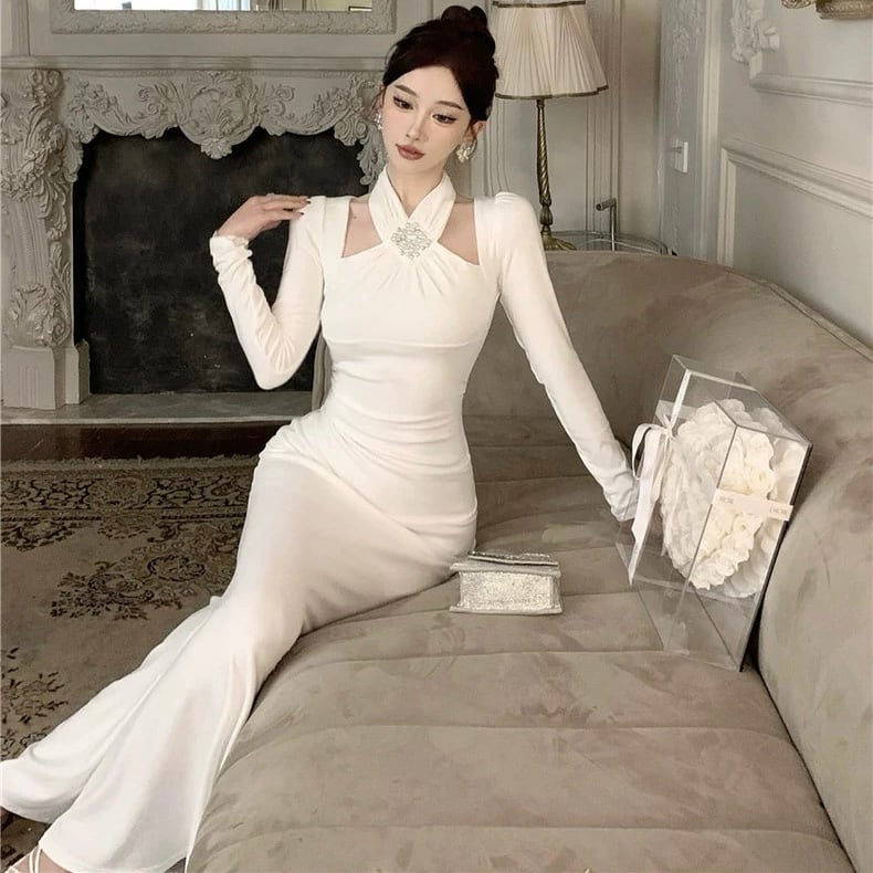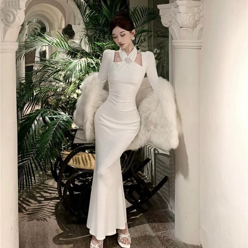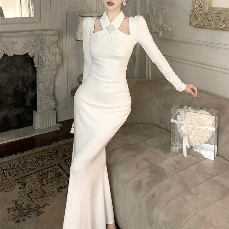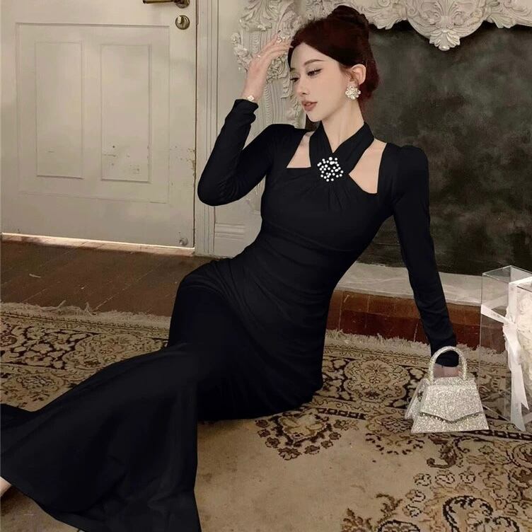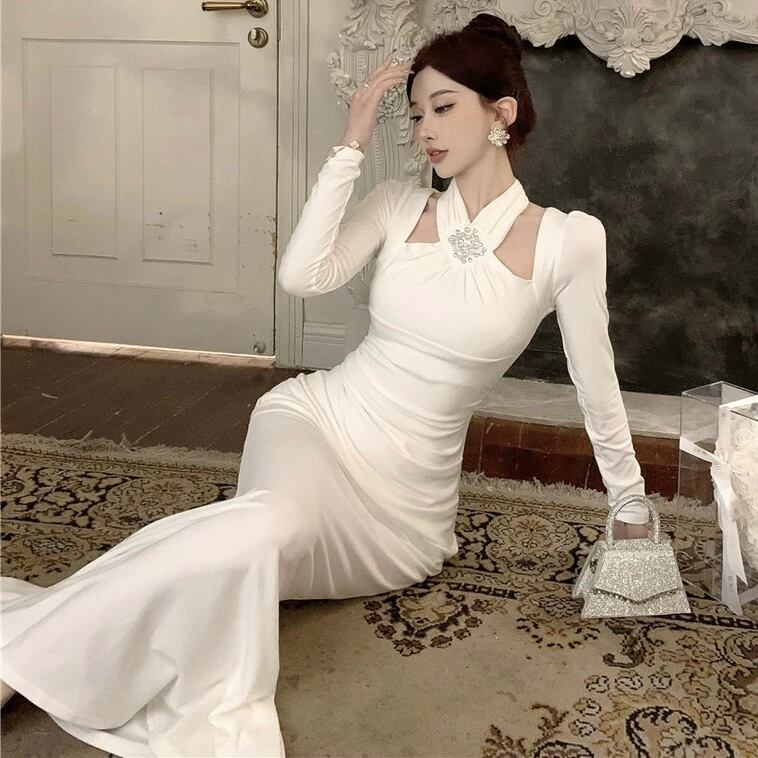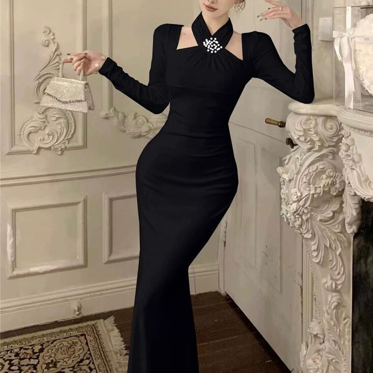 【dress】ホルターネックマーメイドワンピース2色 HD0104