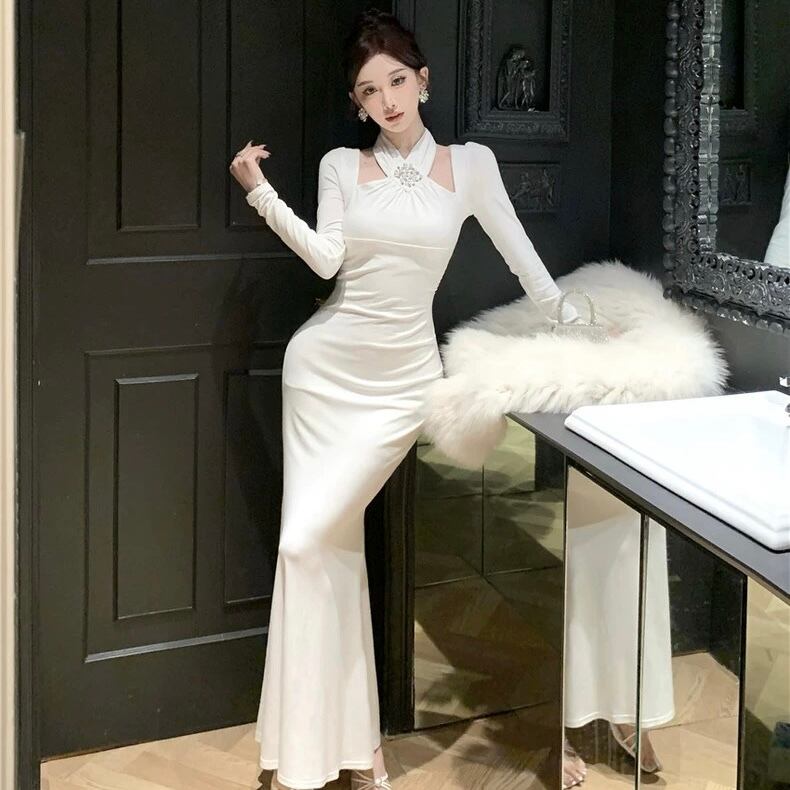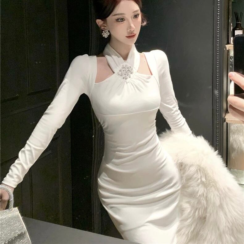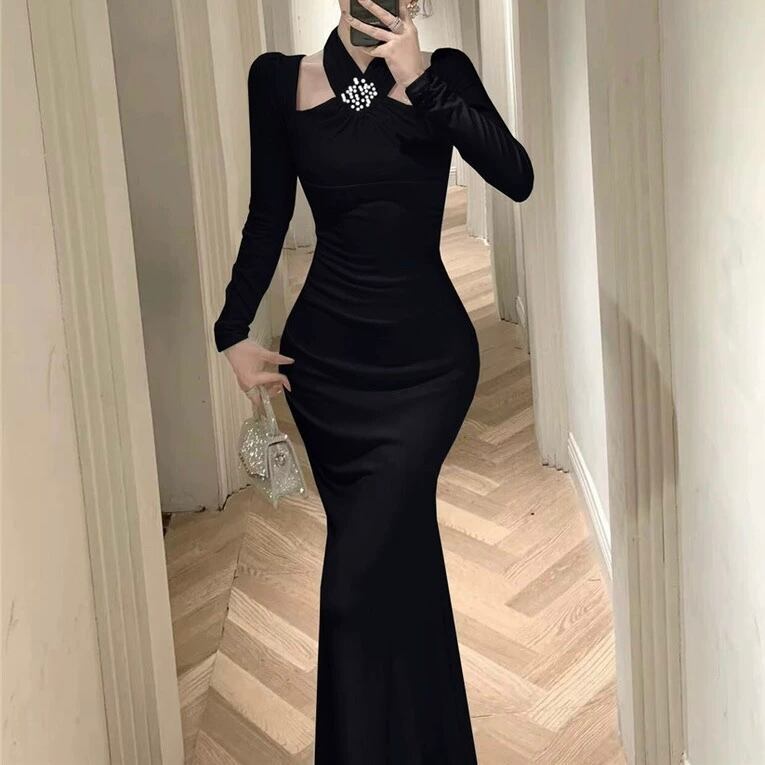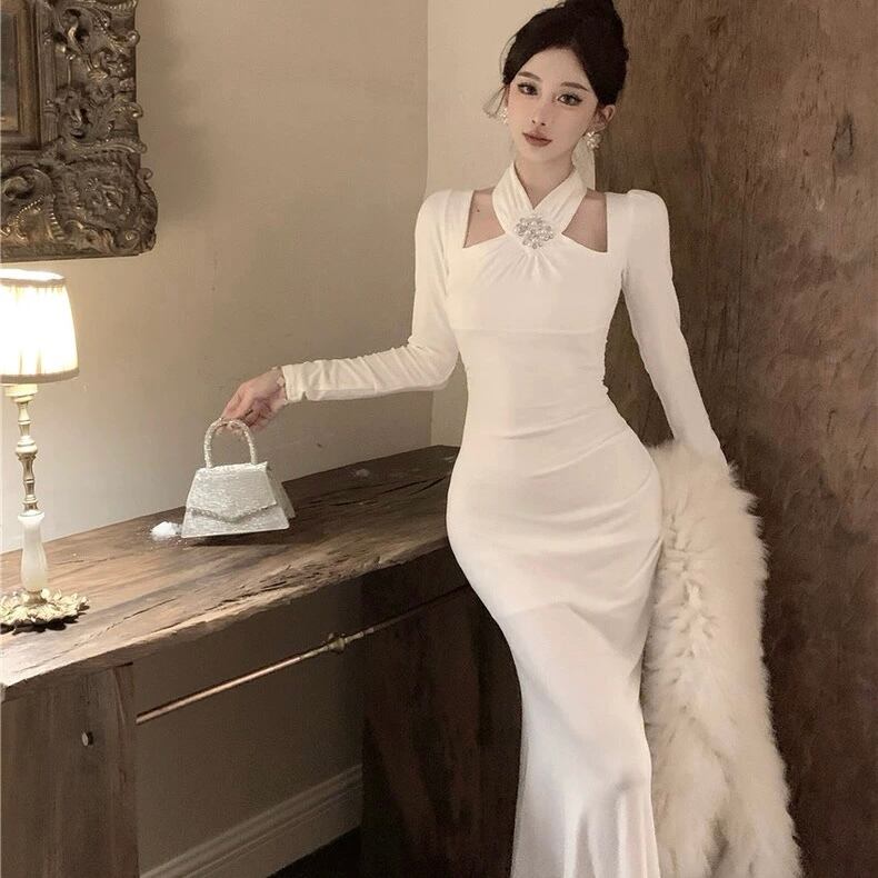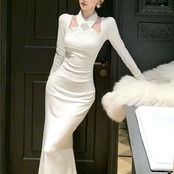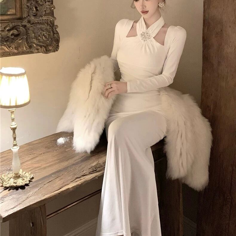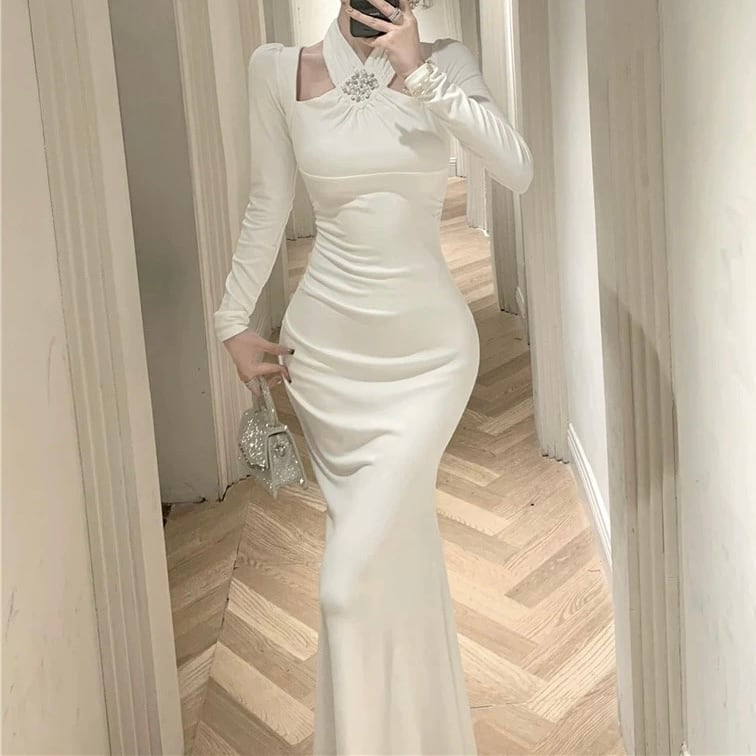 【dress】ホルターネックマーメイドワンピース2色 HD0104