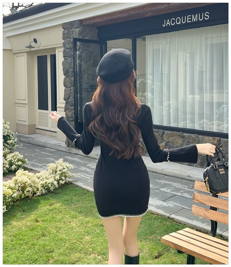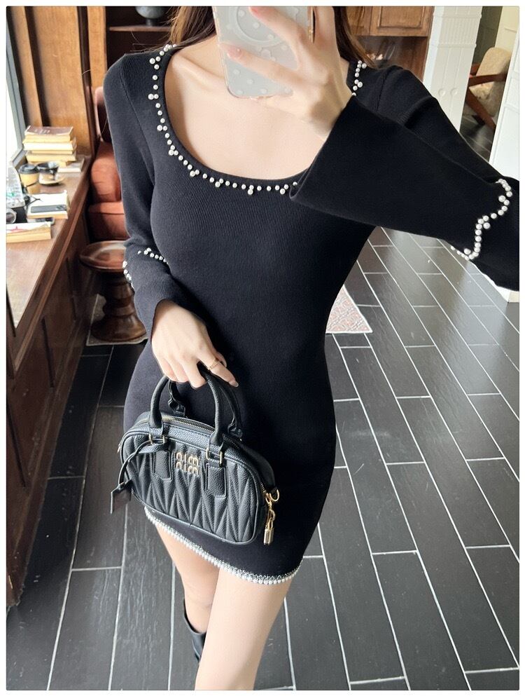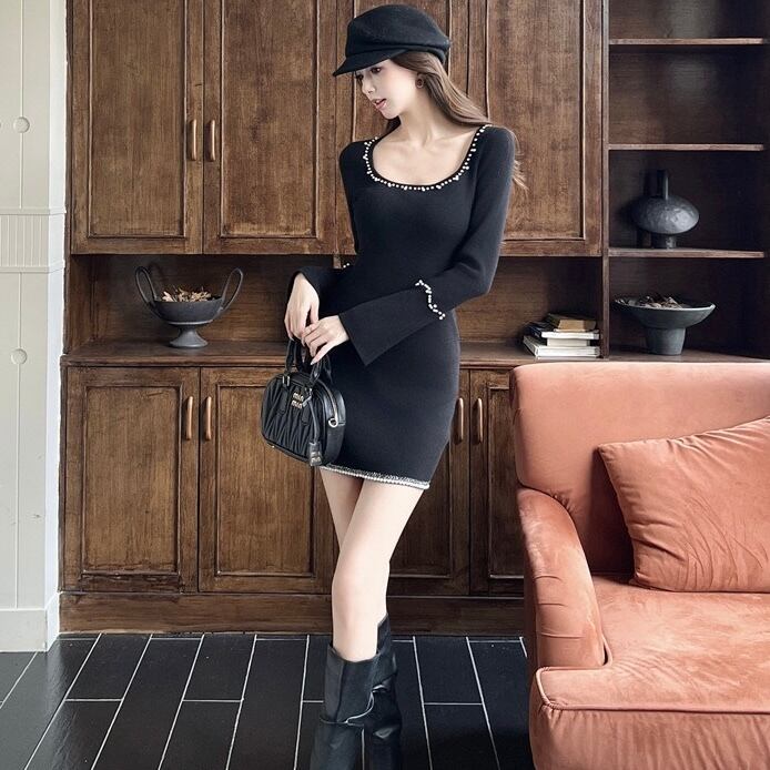 【dress】ビジュースクエアネックニットワンピース RY5001