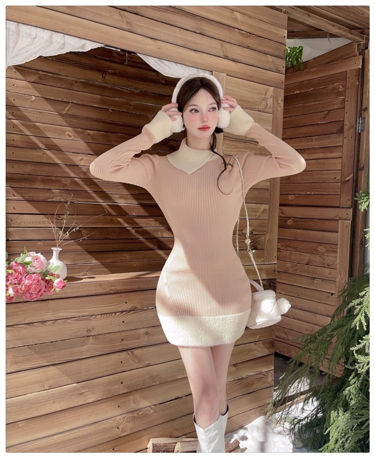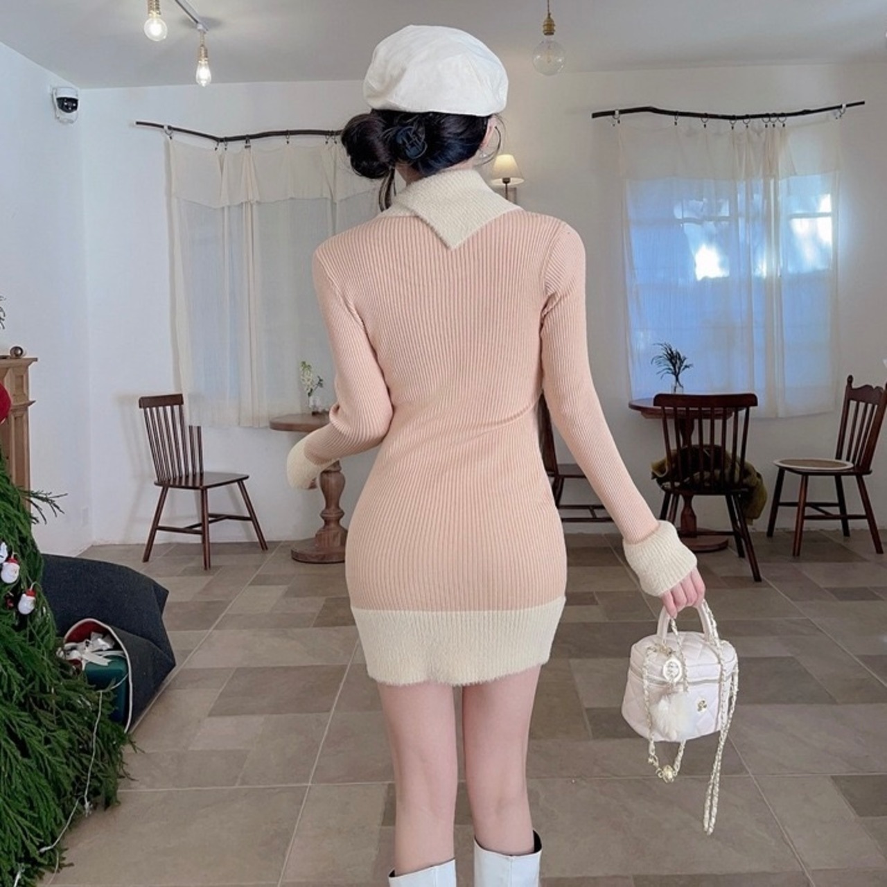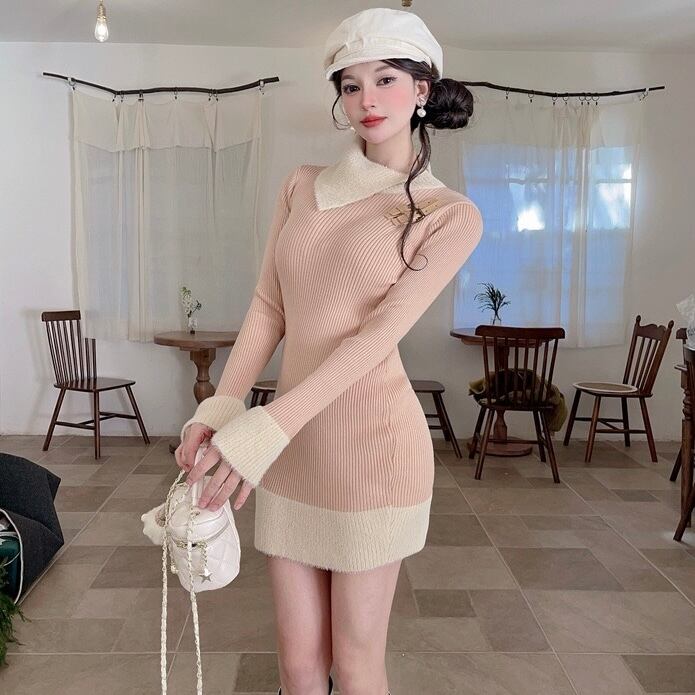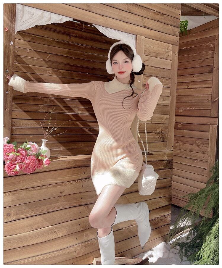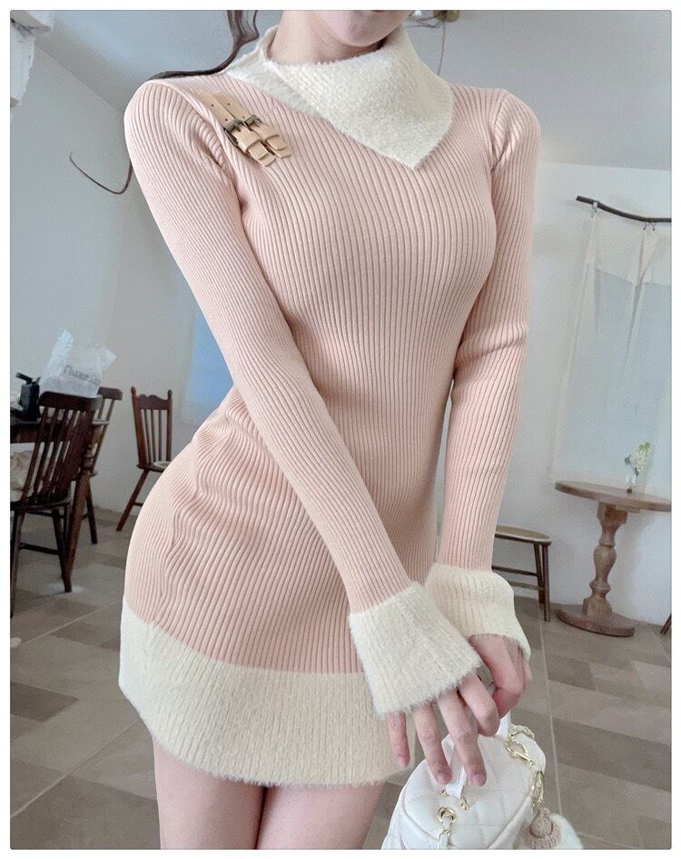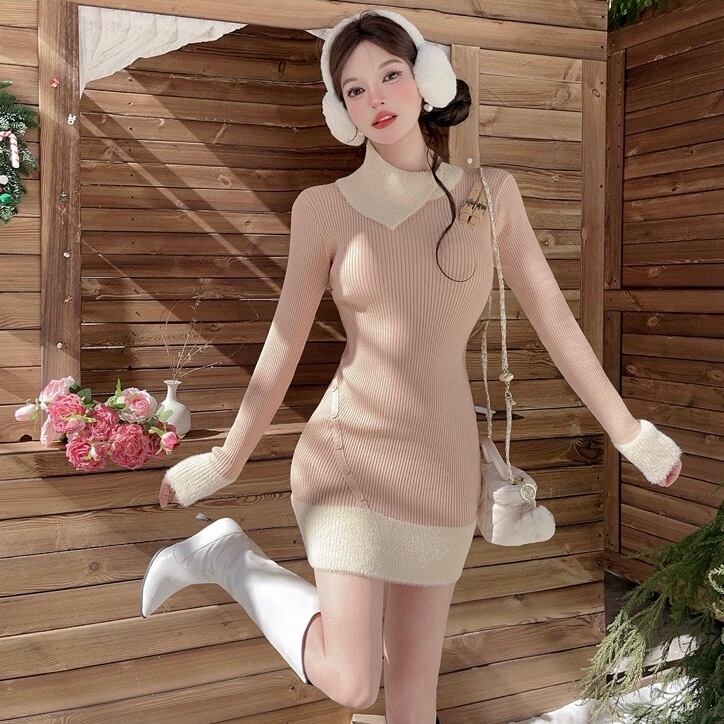 【dress】配色ニットワンピース RY5002