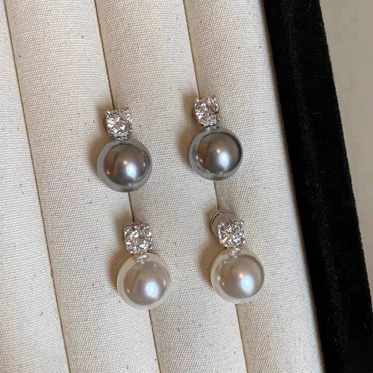 【雑貨】S925銀製ジルコンx人工パールピアス2色 RY5012
