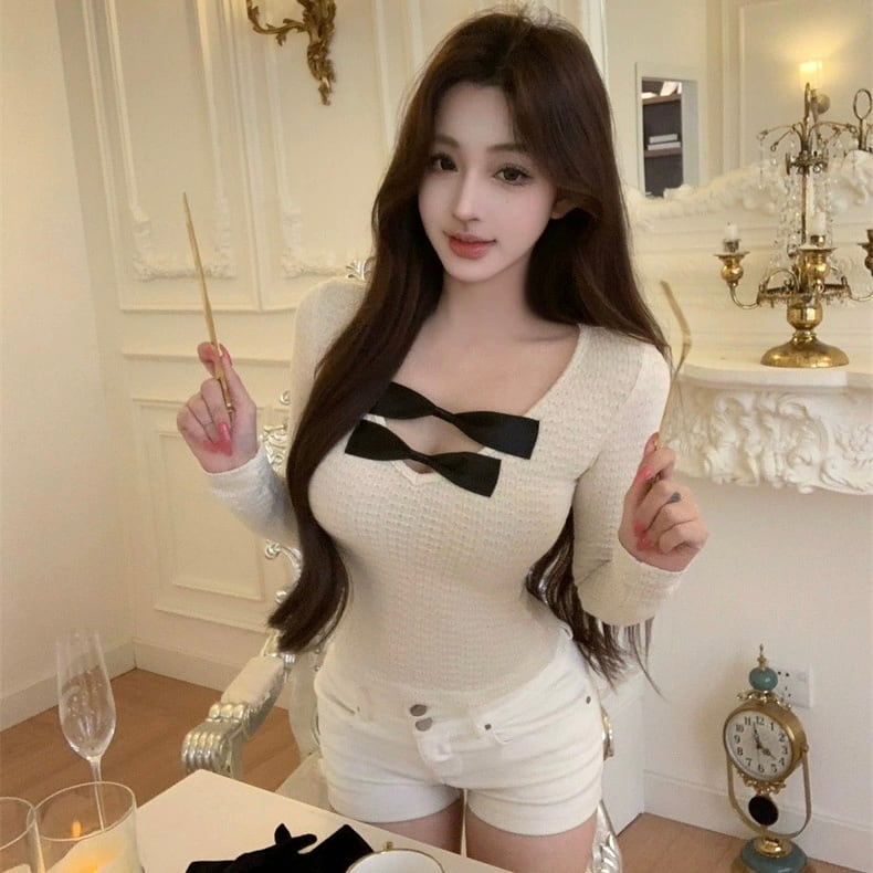 【tops】リボンVネックトップス RY5016