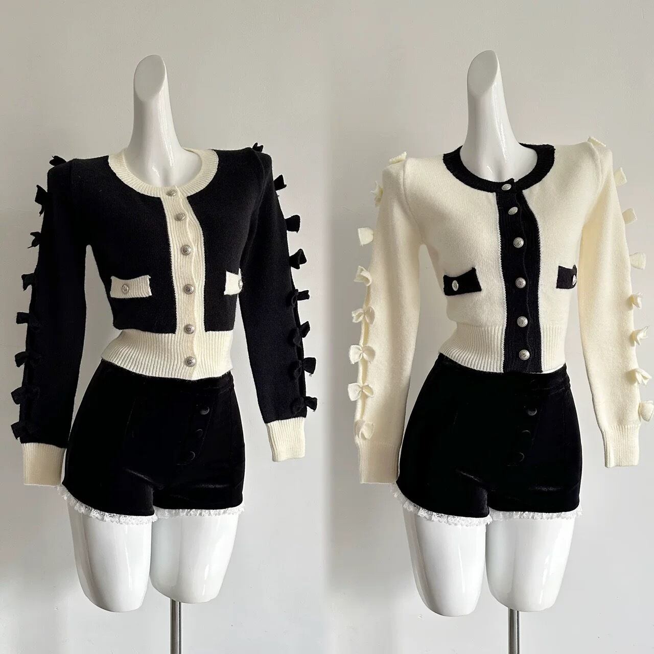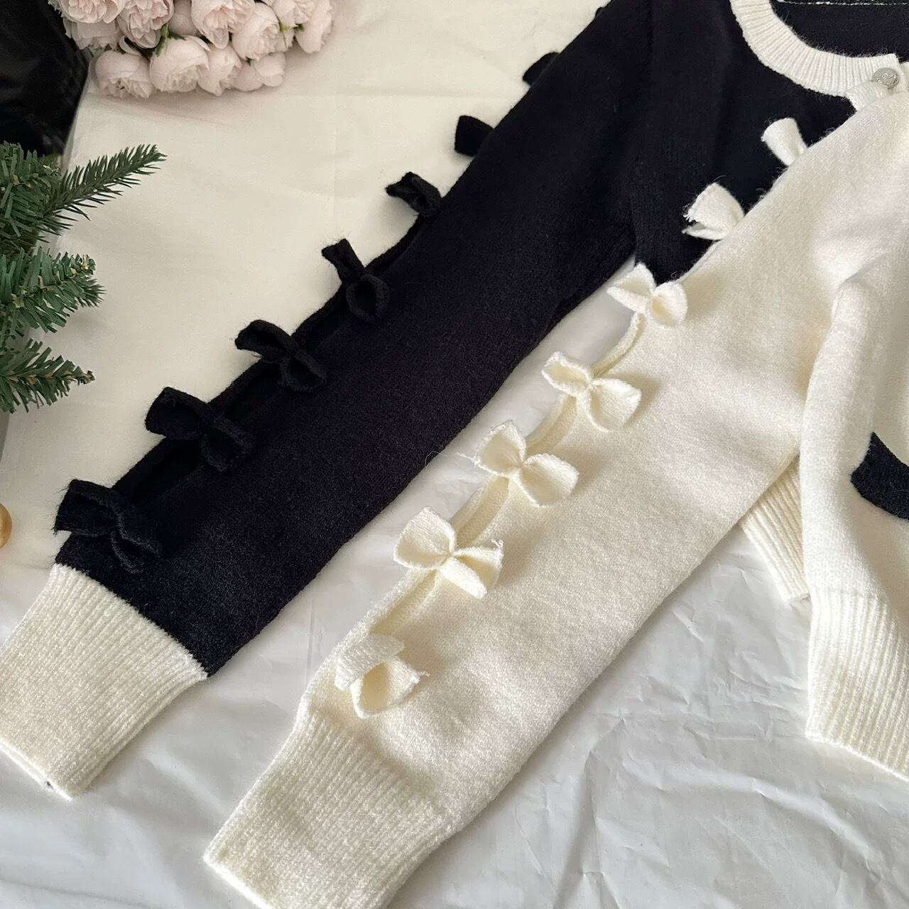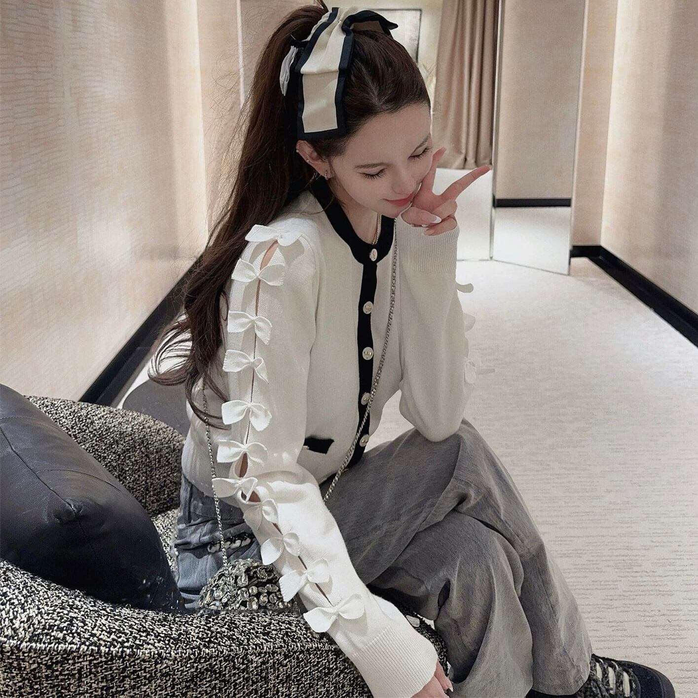 【tops】リボンスリーブ配色ニットトップス2色 RY7005