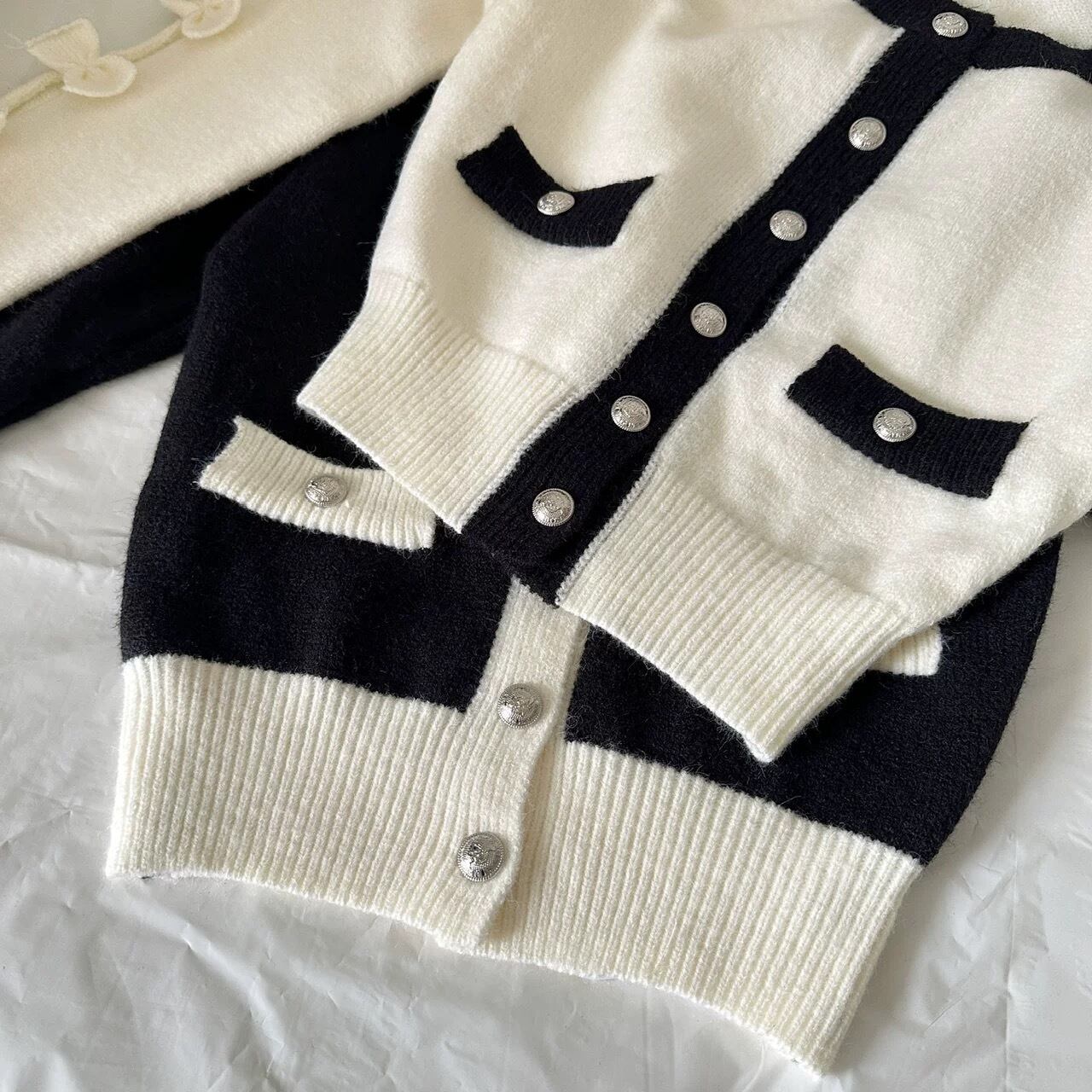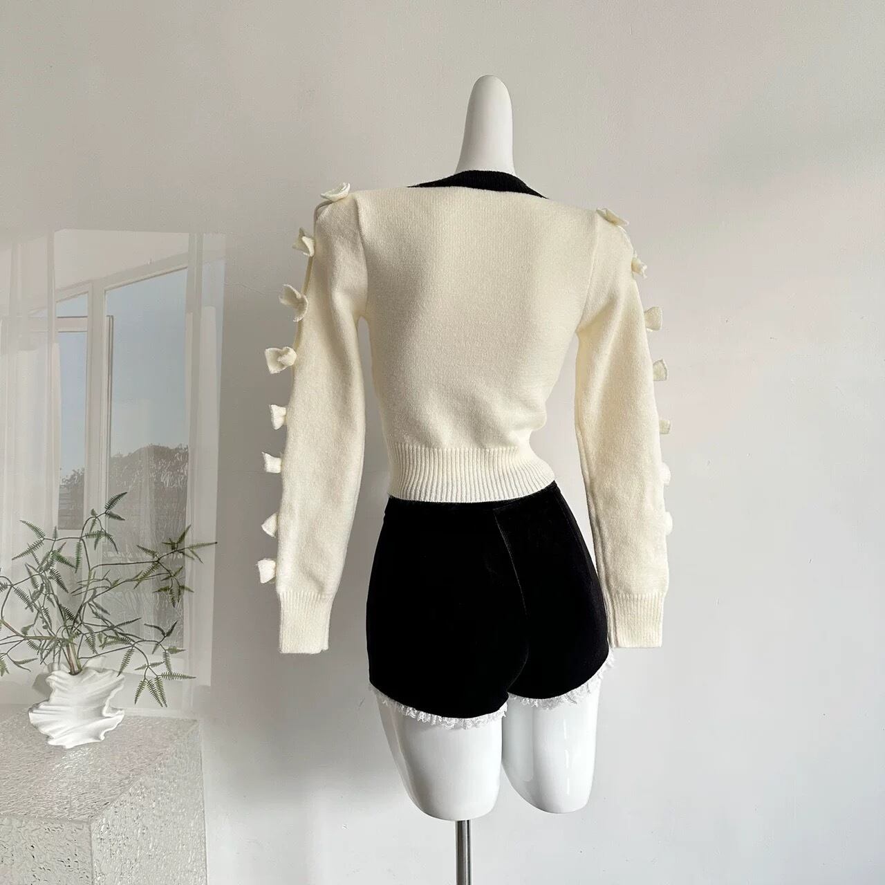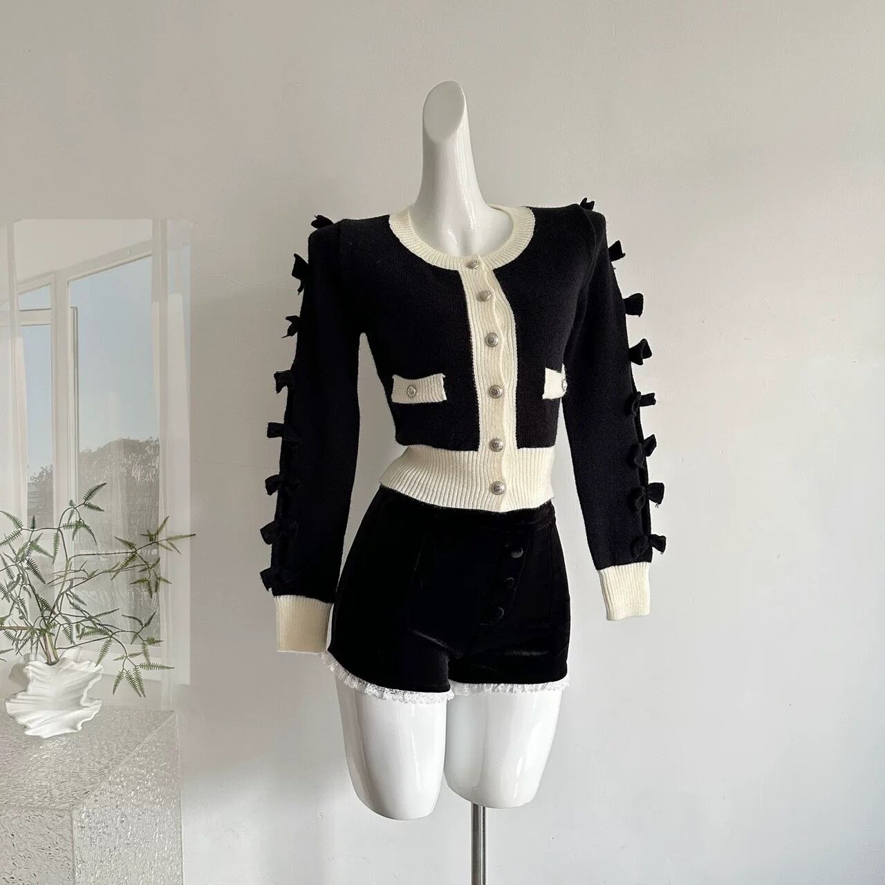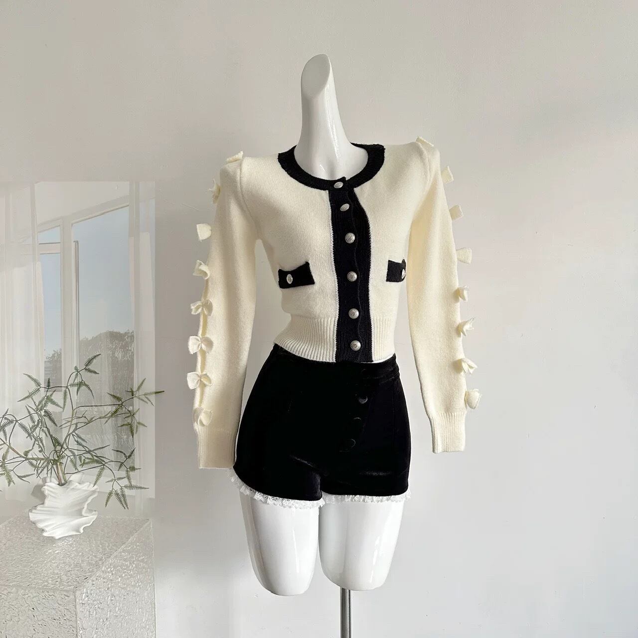 【tops】リボンスリーブ配色ニットトップス2色 RY7005
