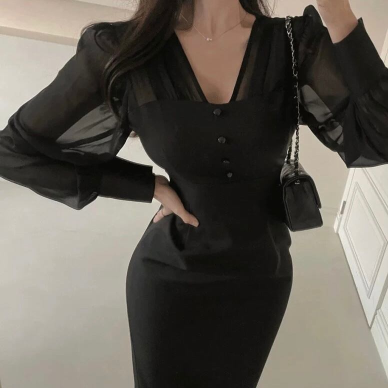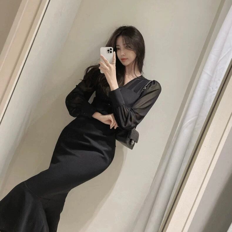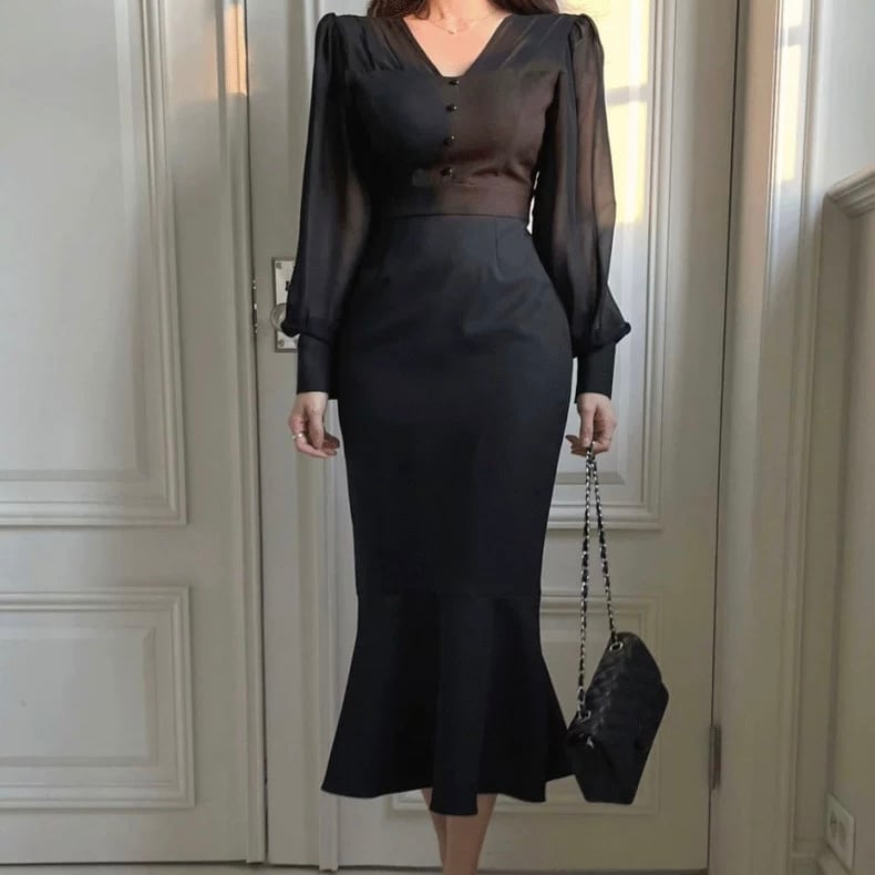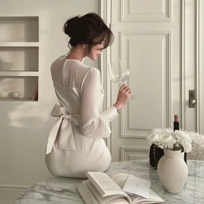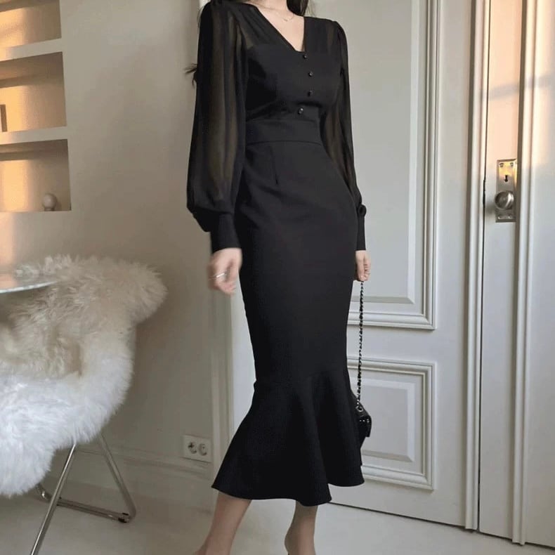 【dress】バックリボンマーメイドワンピース2色 RY7008
