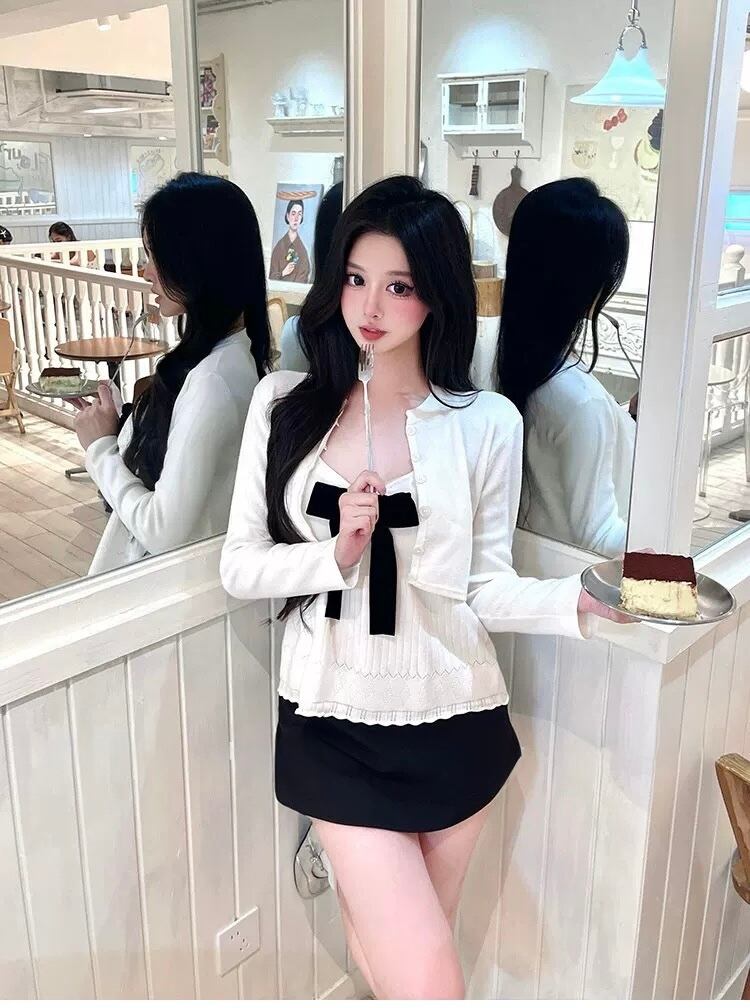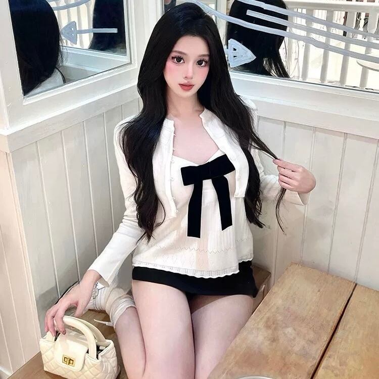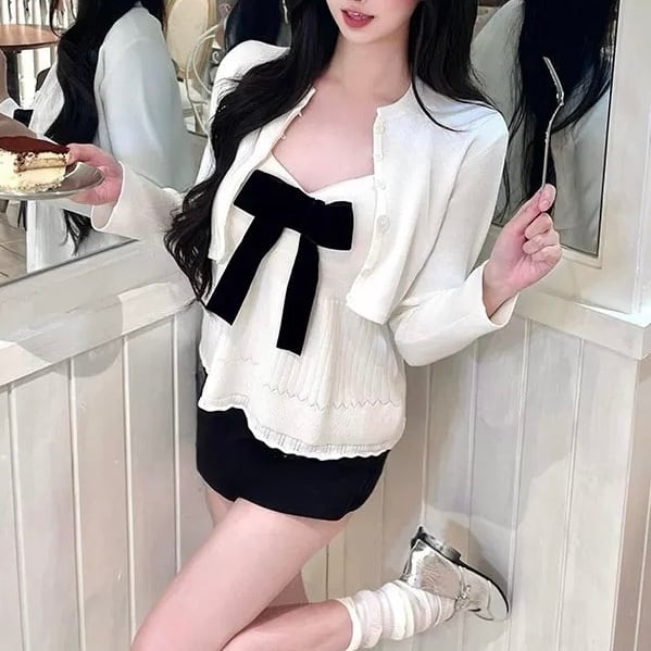 【set】2色ショート丈カーディガンxキャミソール RY7012