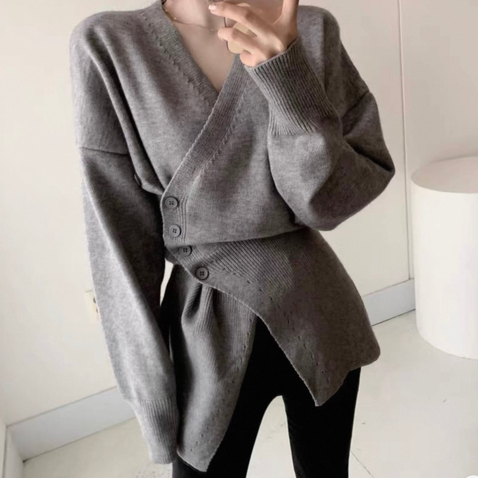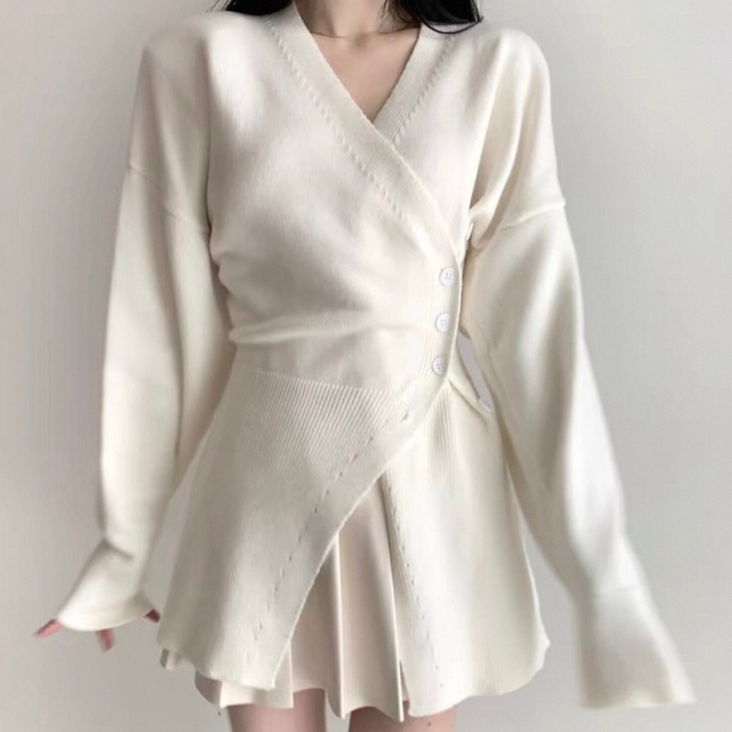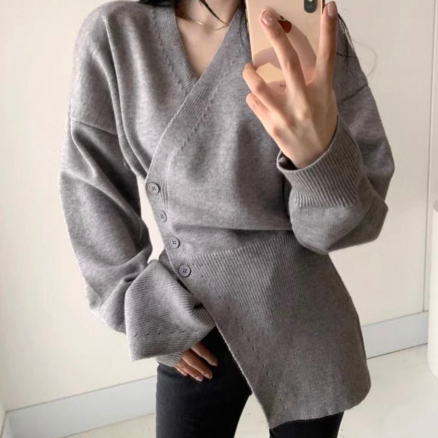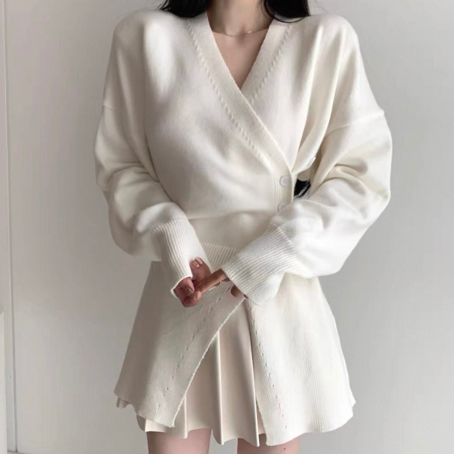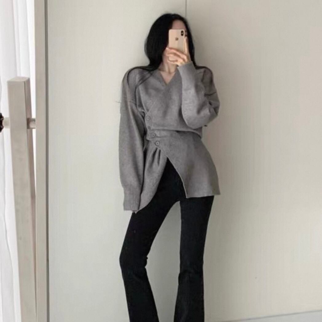 【outer】Vネックアシンメトリーニットカーディガン2色 HK0304
