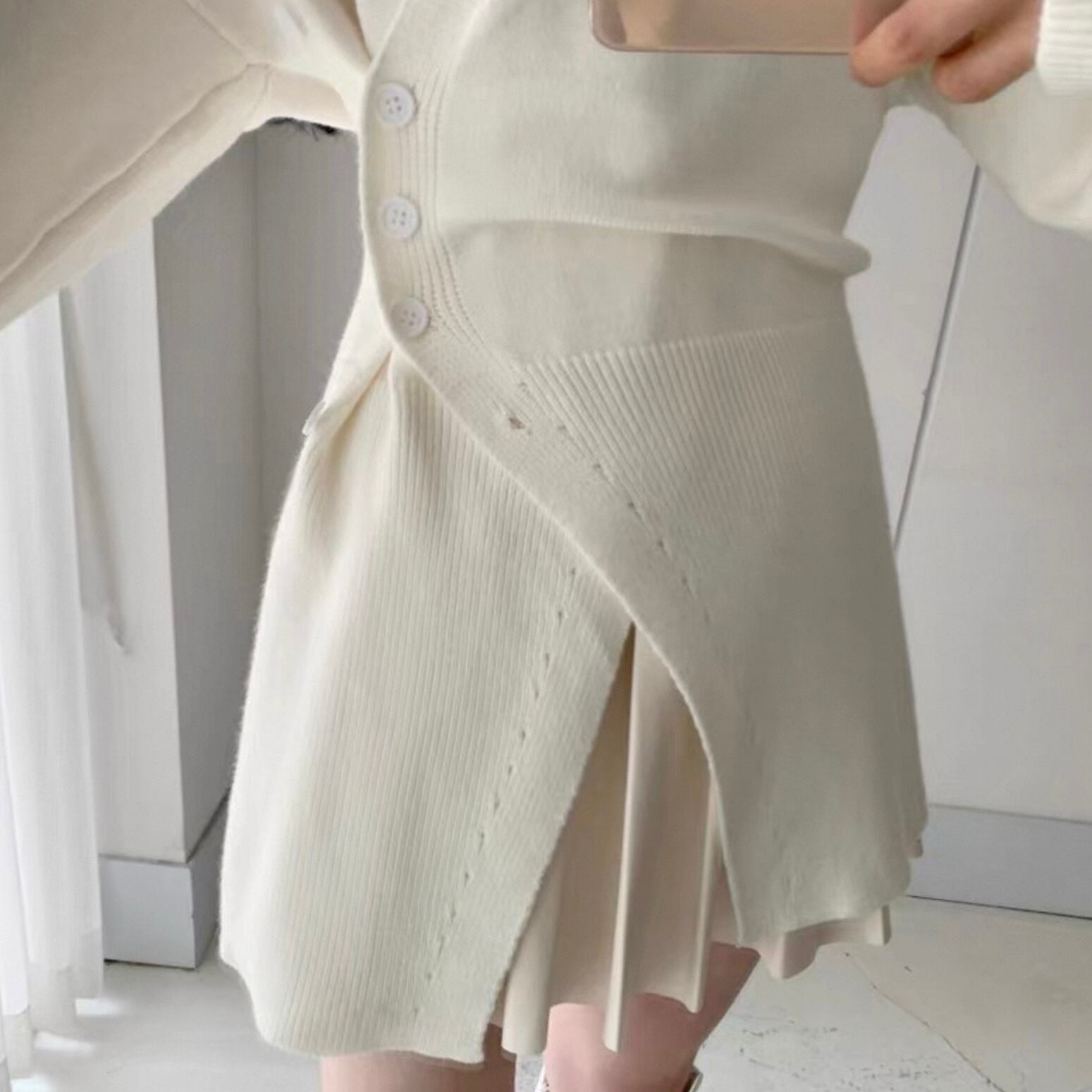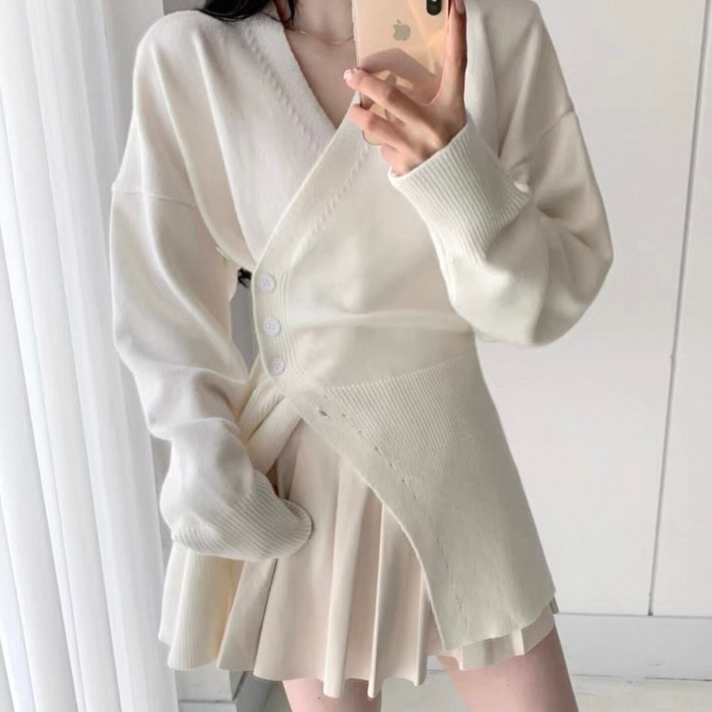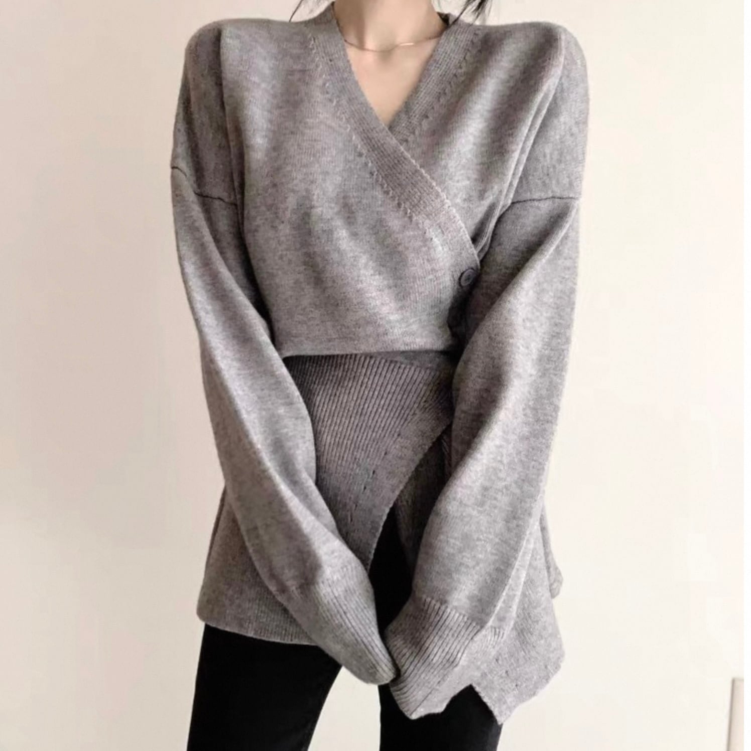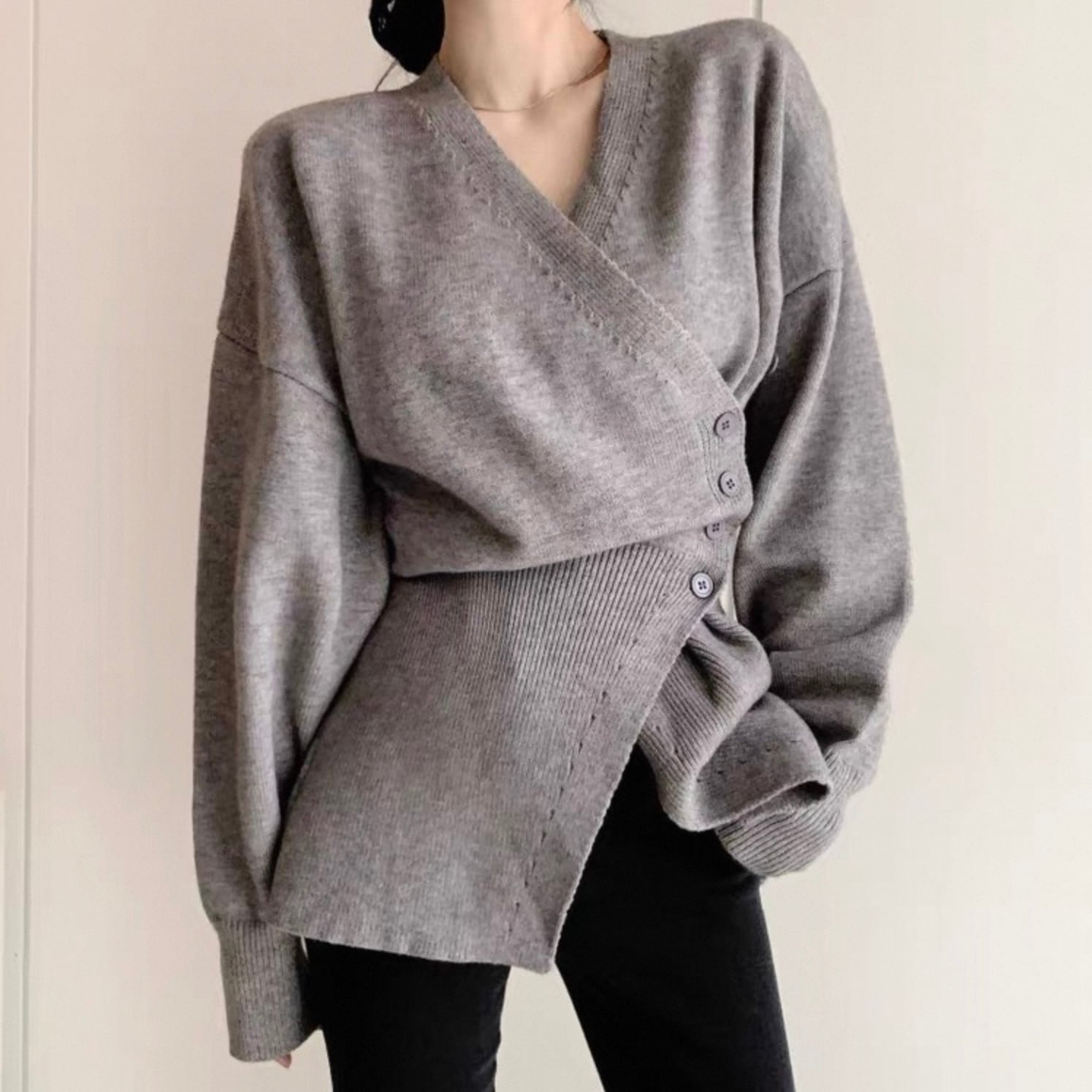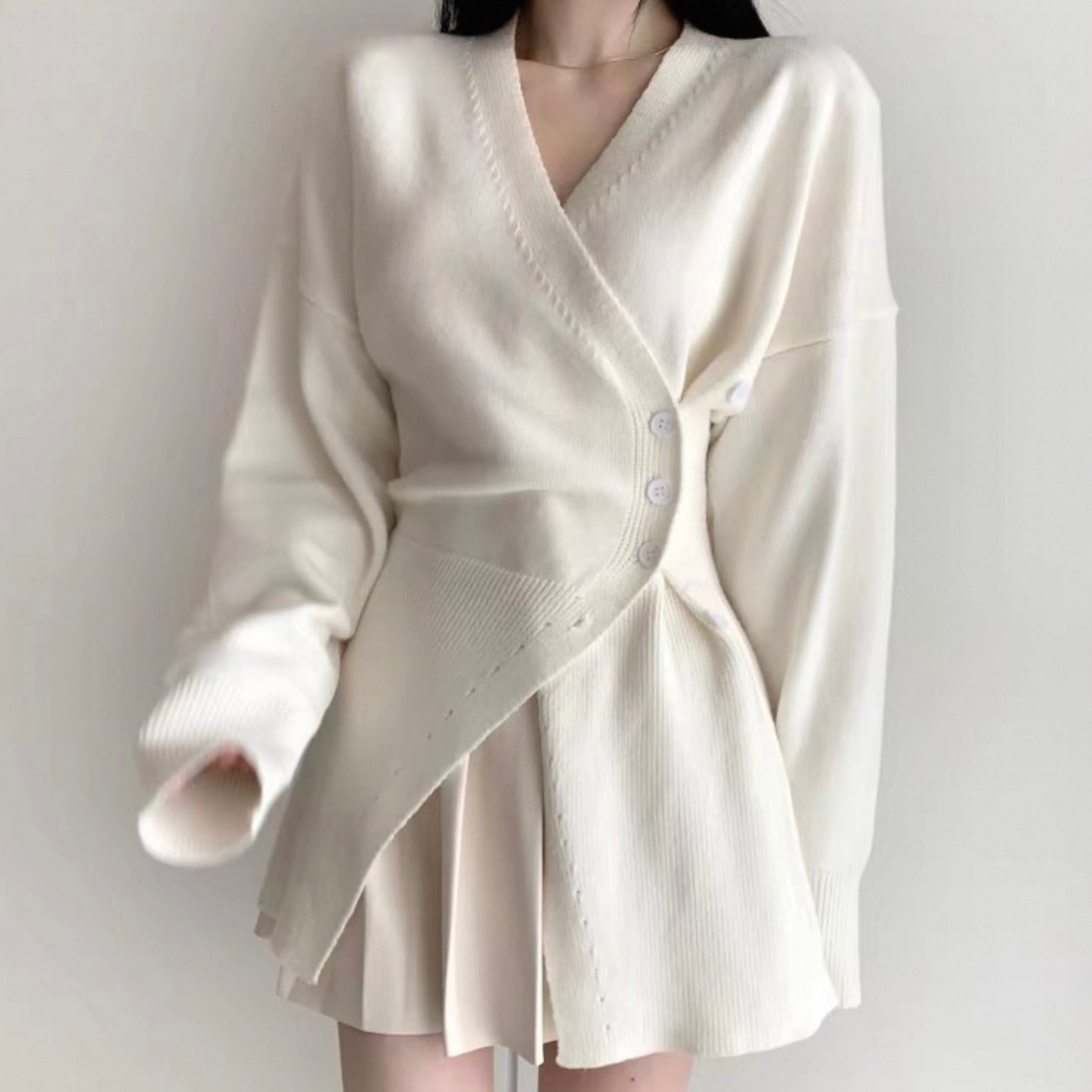 【outer】Vネックアシンメトリーニットカーディガン2色 HK0304