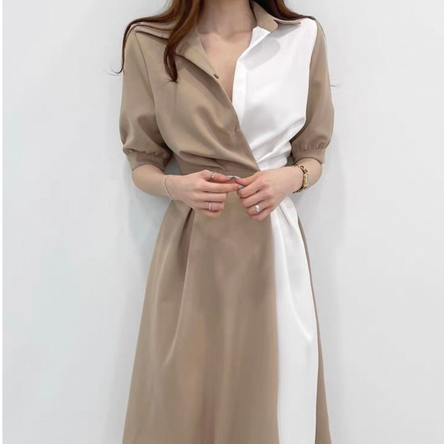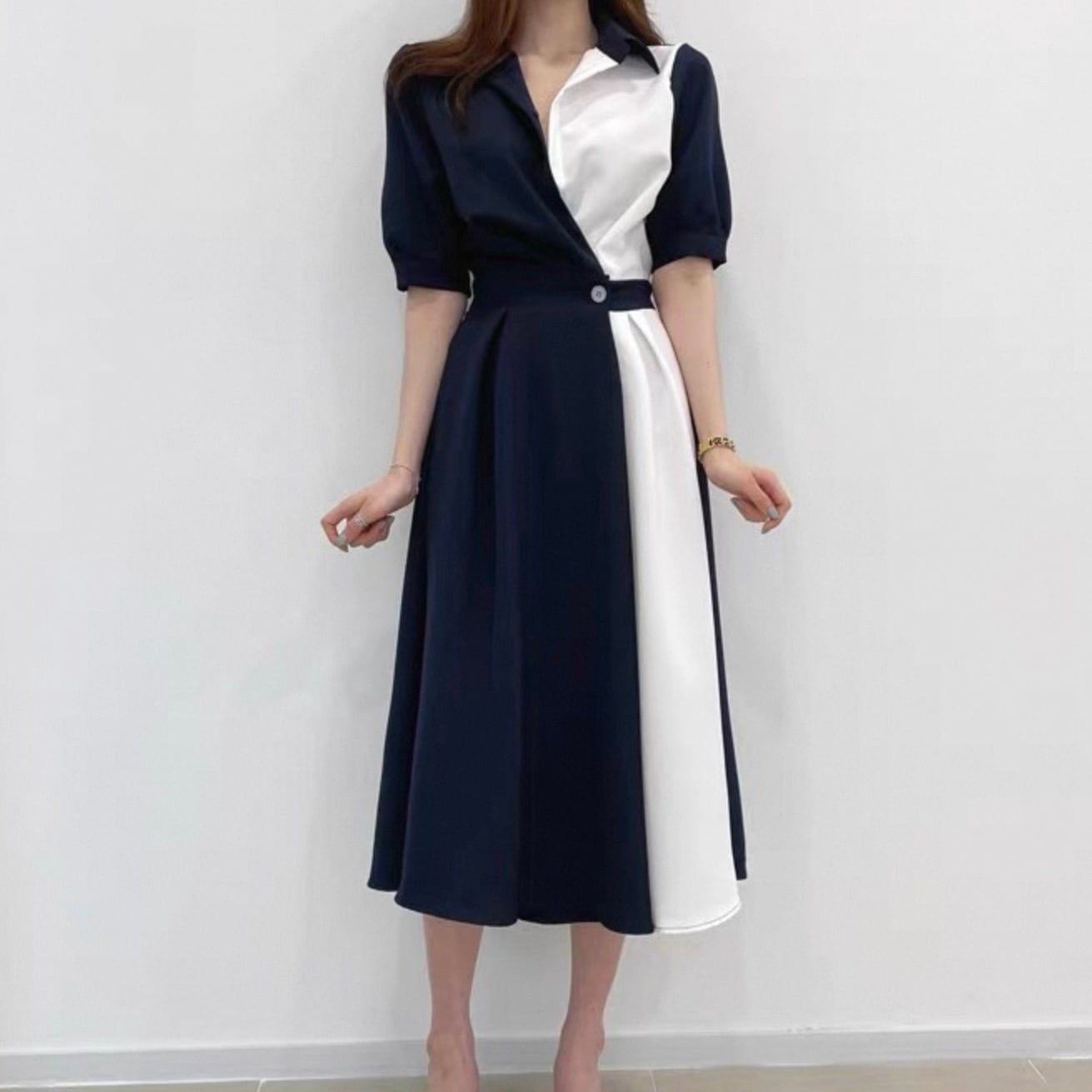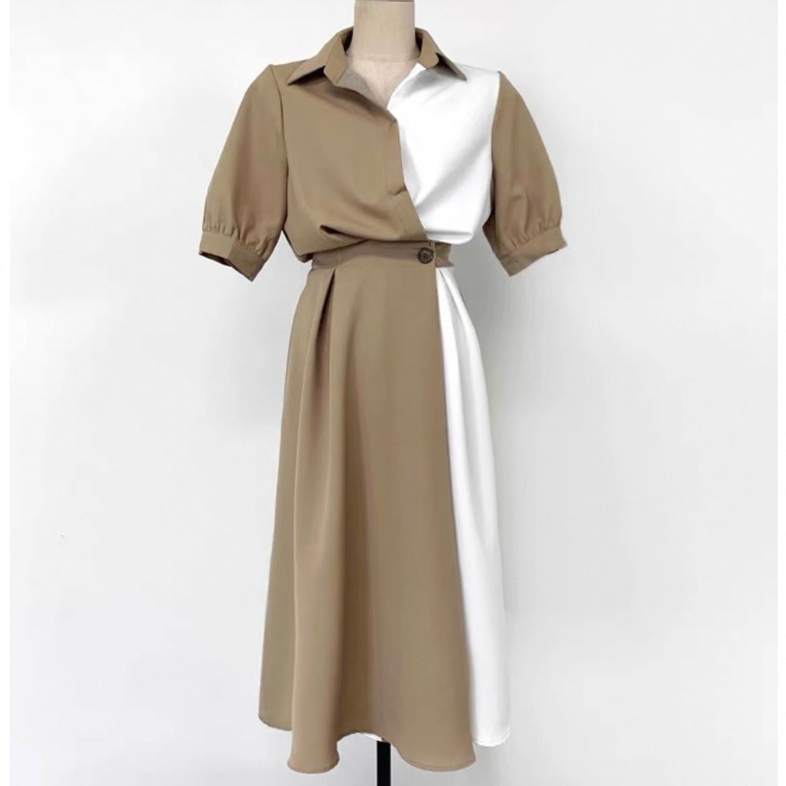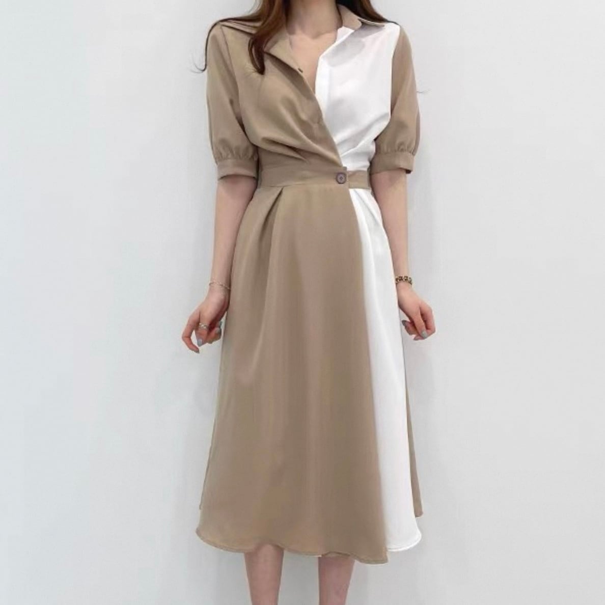 【dress】ロング丈コントラストステッチワンピース2色 HK0309