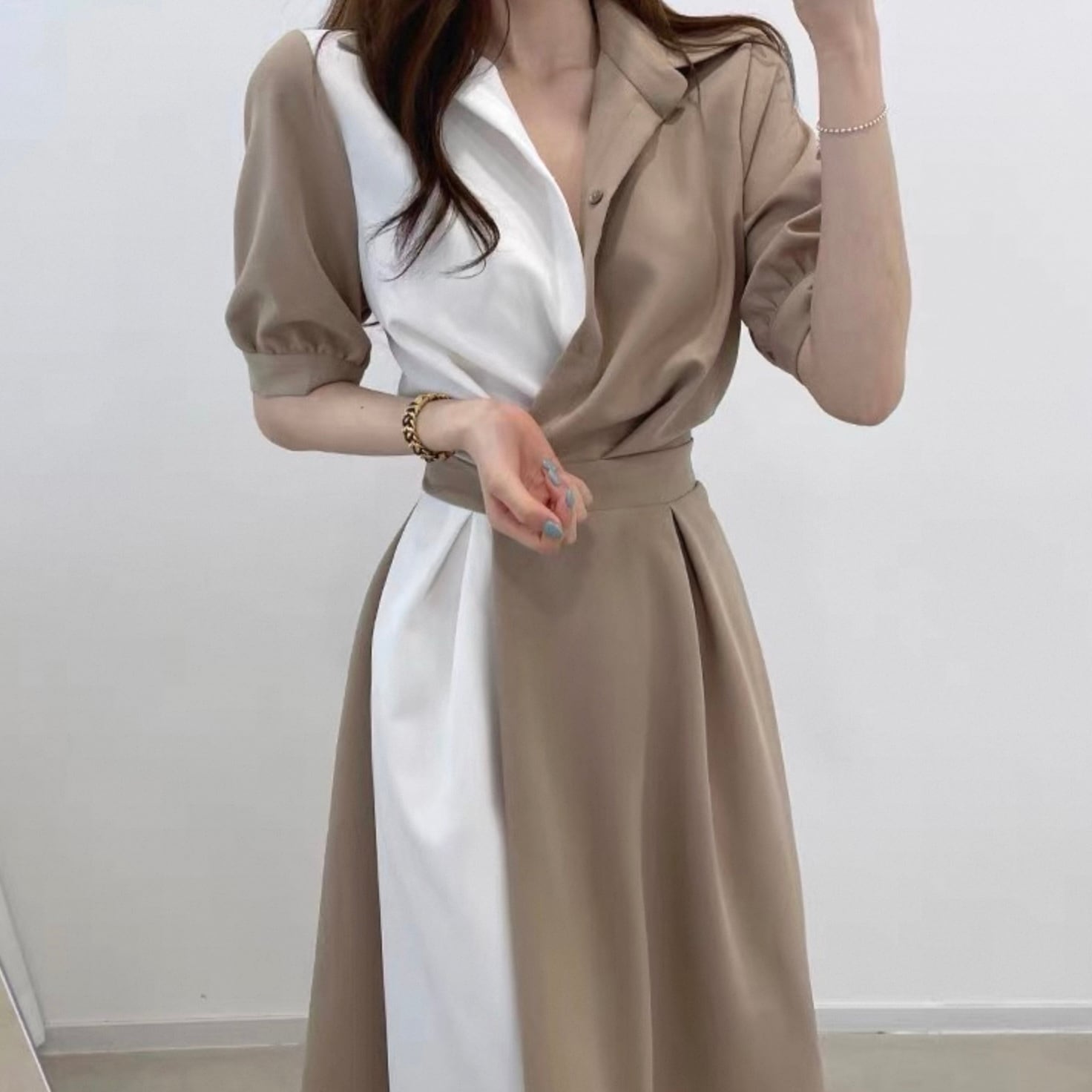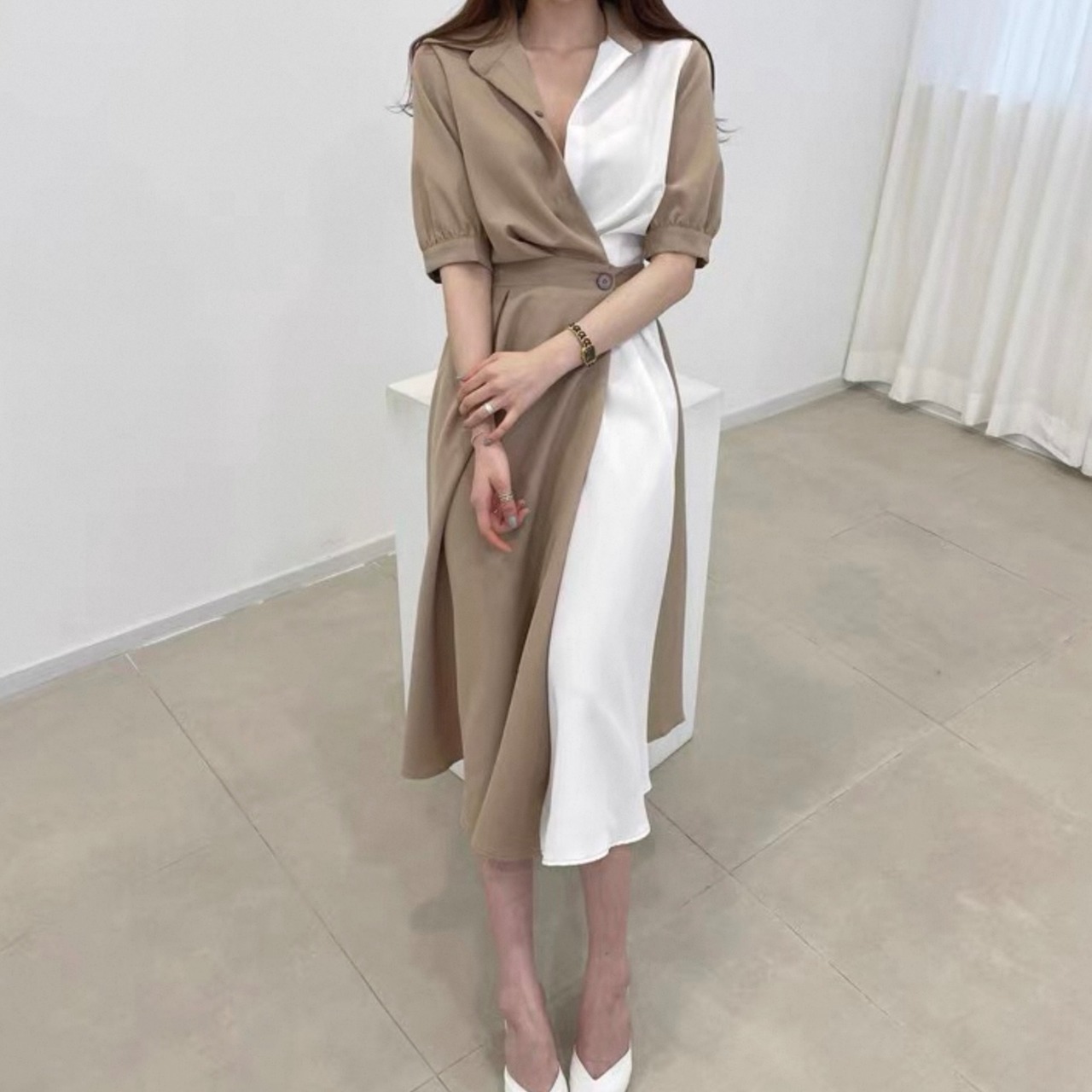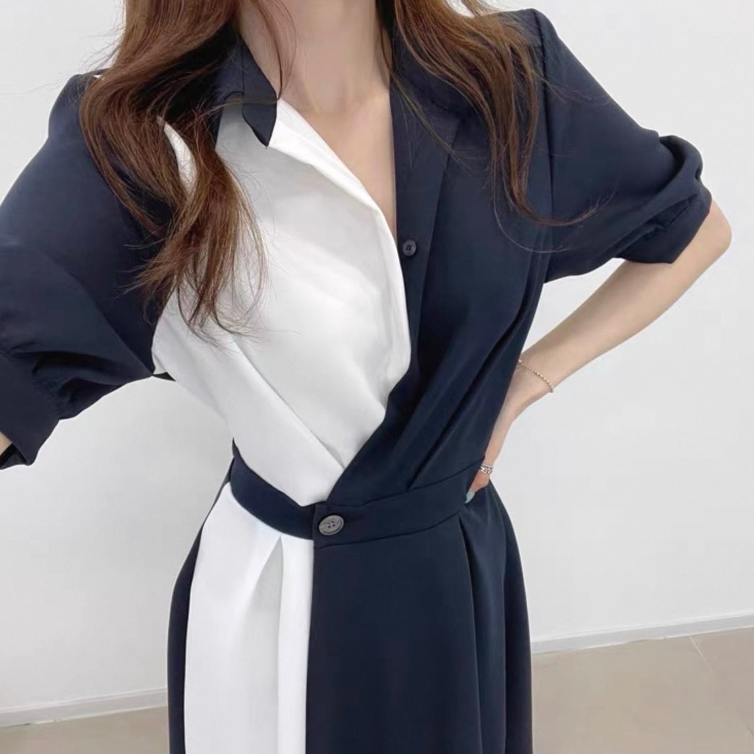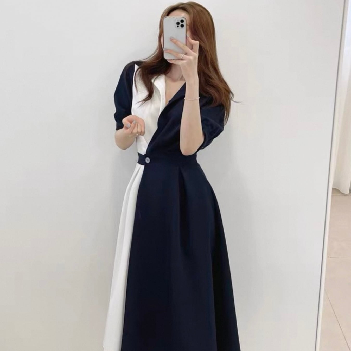 【dress】ロング丈コントラストステッチワンピース2色 HK0309