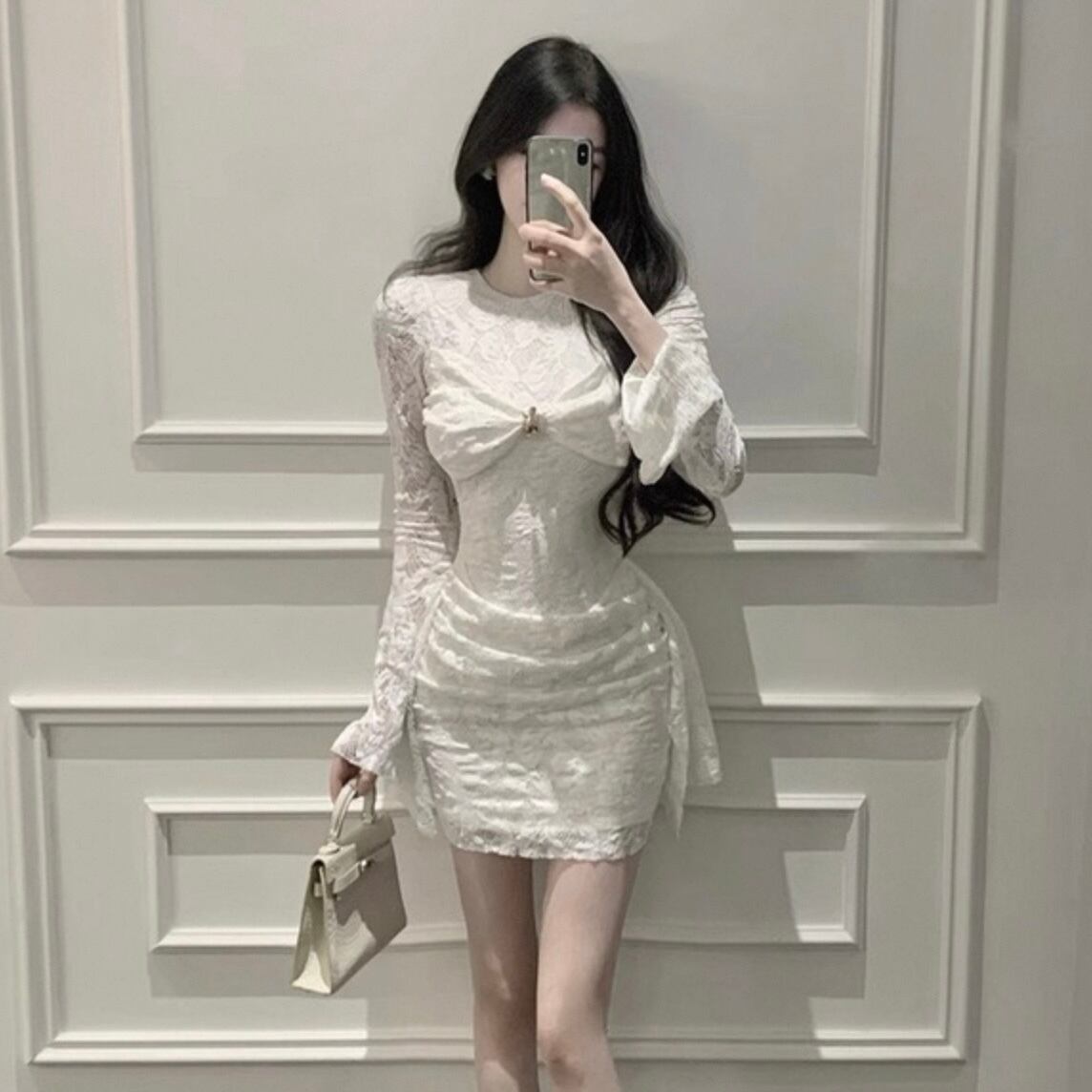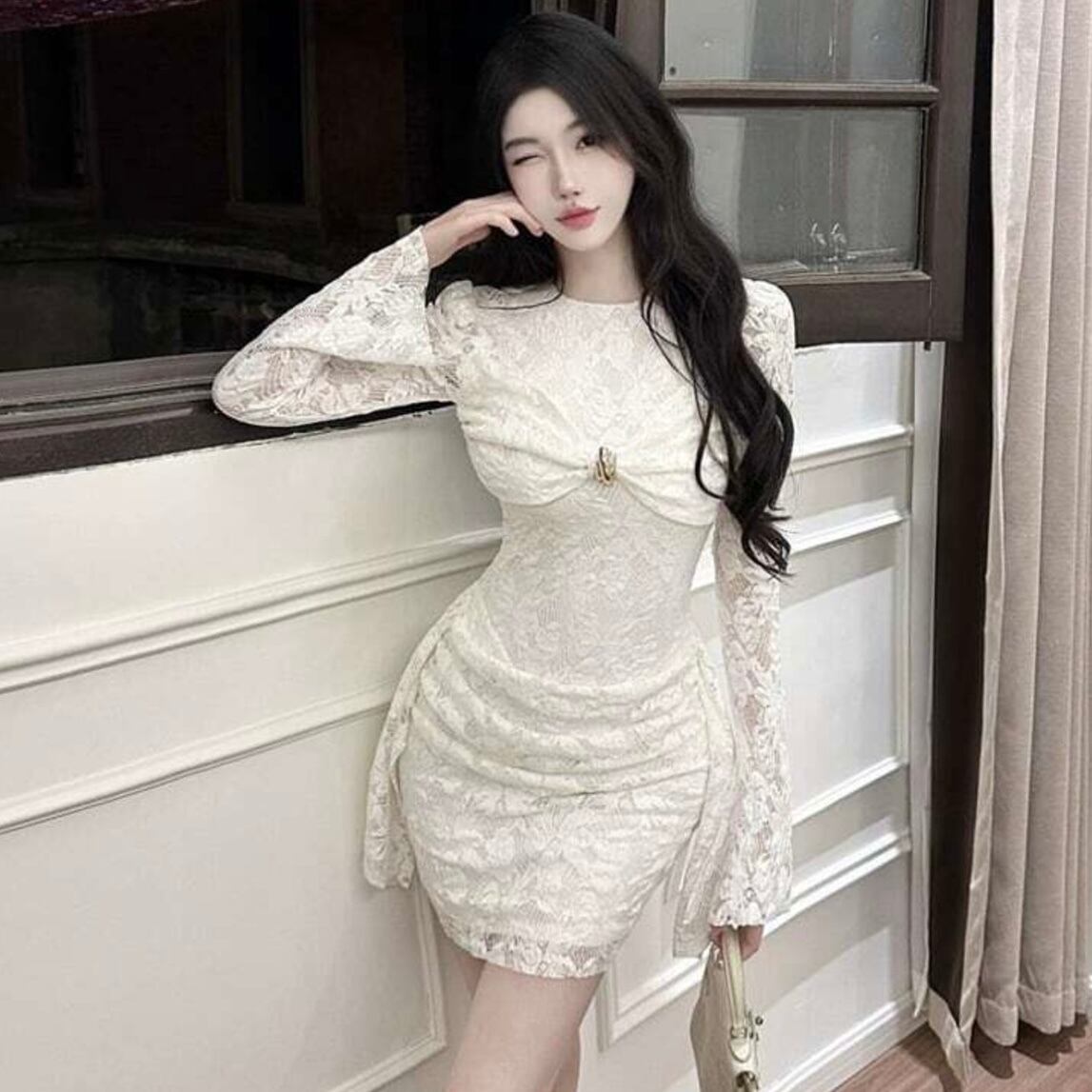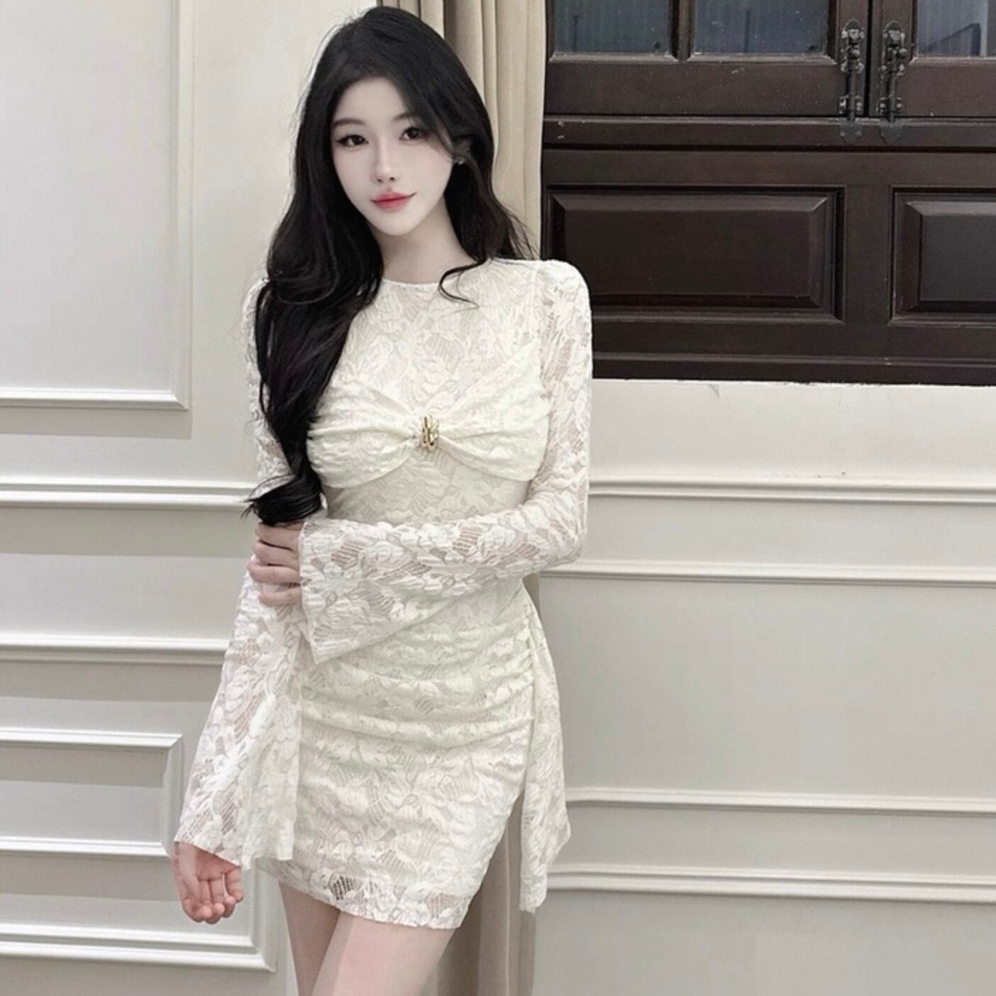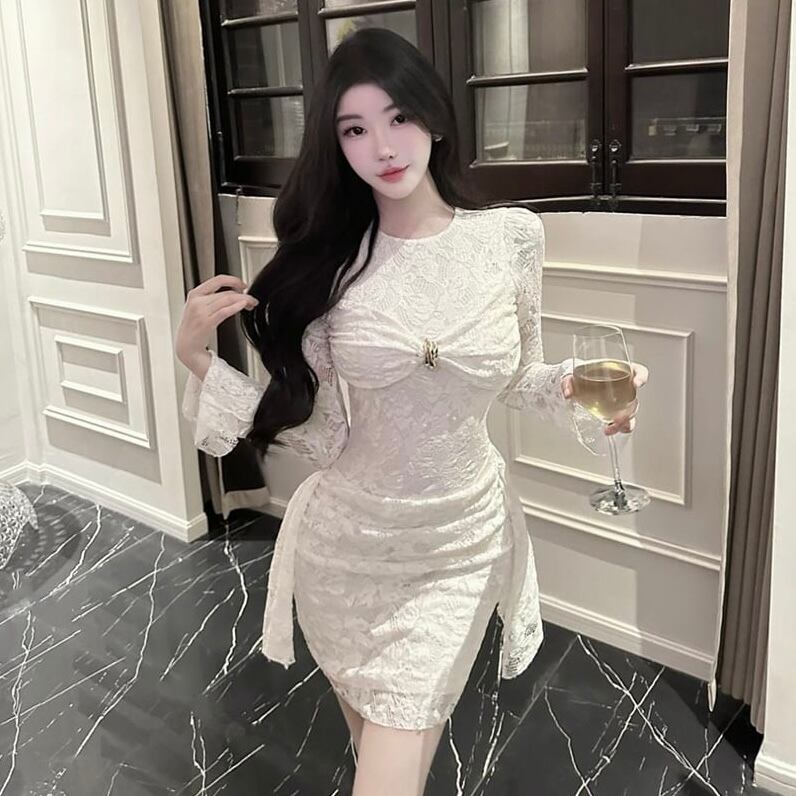 【dress】リボン付きレースワンピース HK0312
