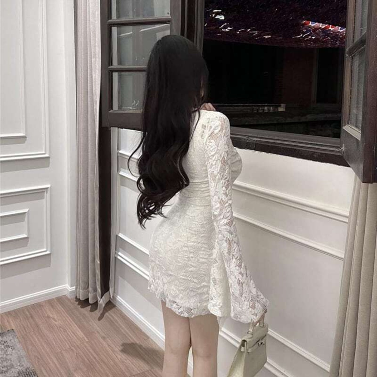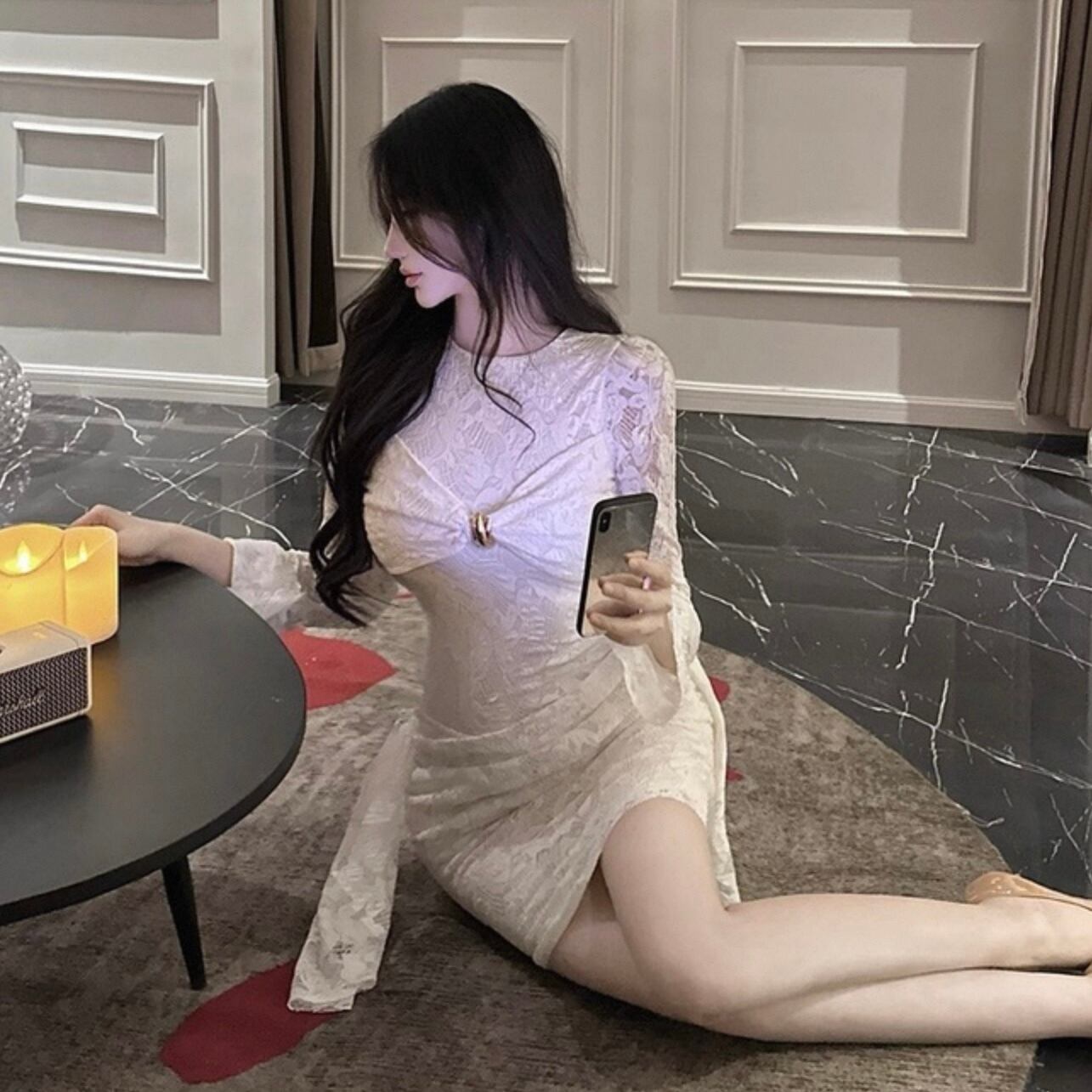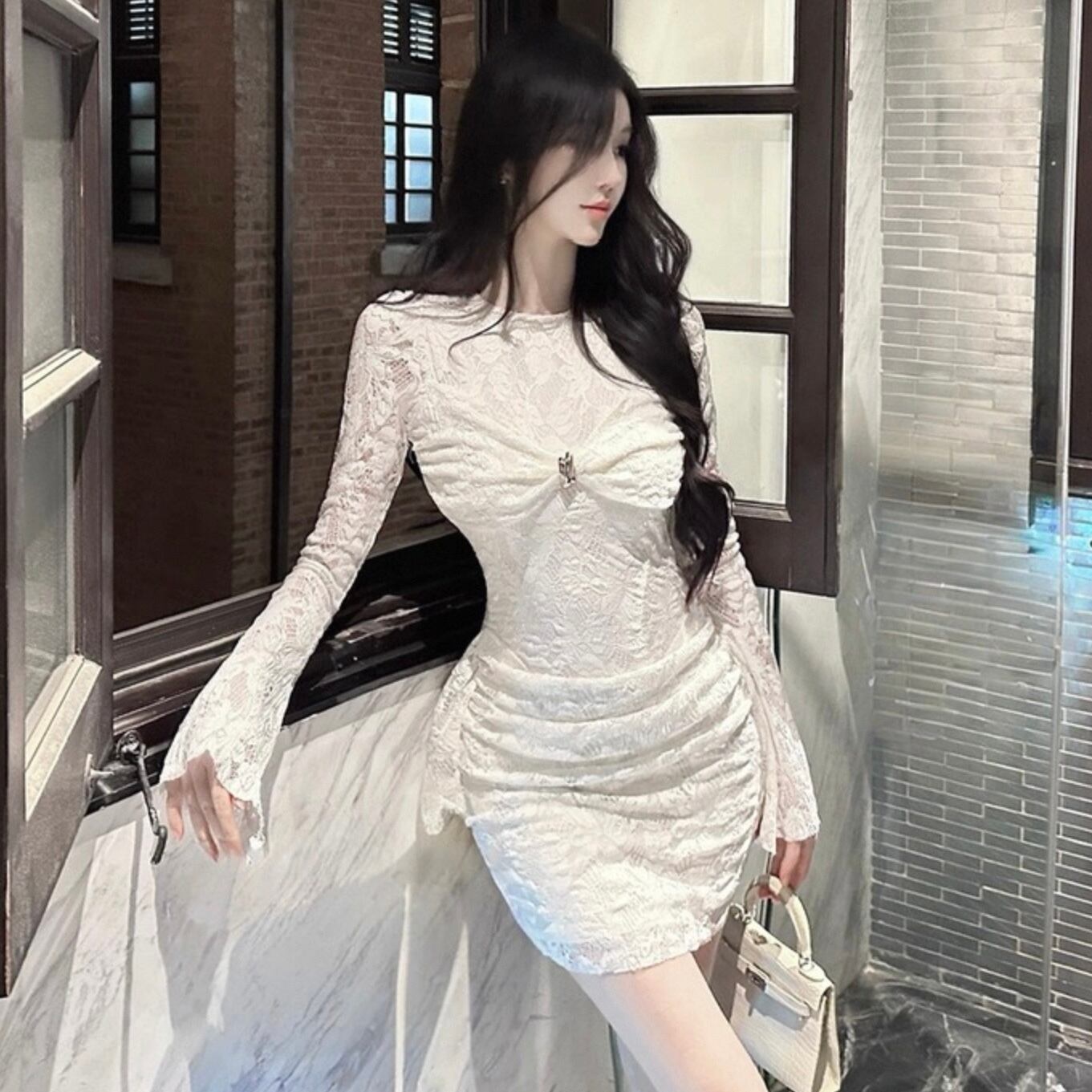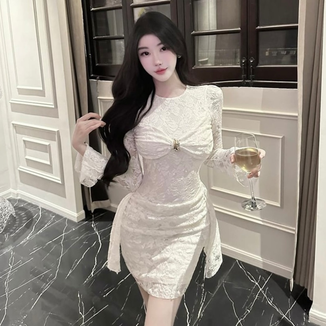 【dress】リボン付きレースワンピース HK0312