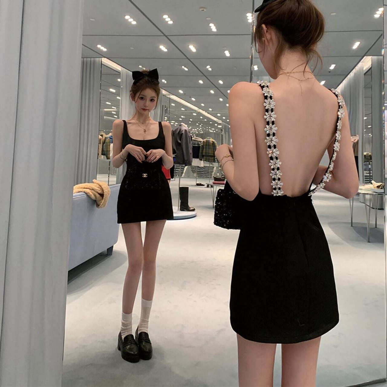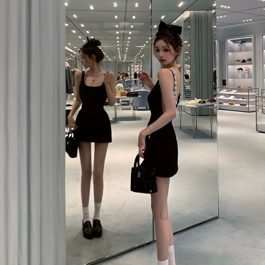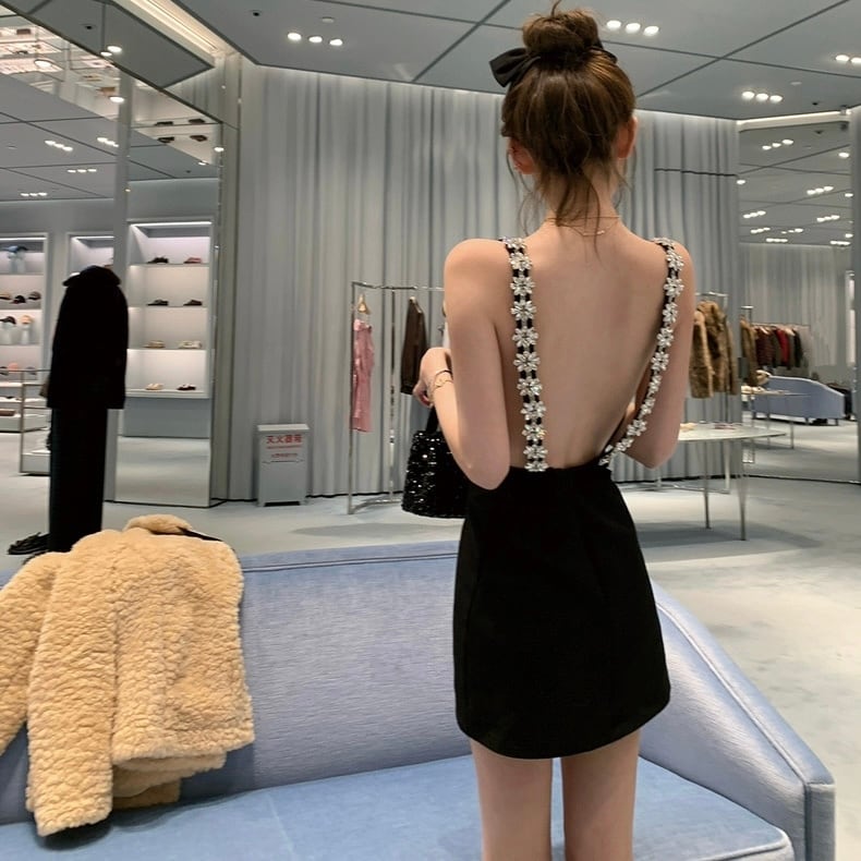 【dress】バックデザインビジューキャミミニワンピース RY1600