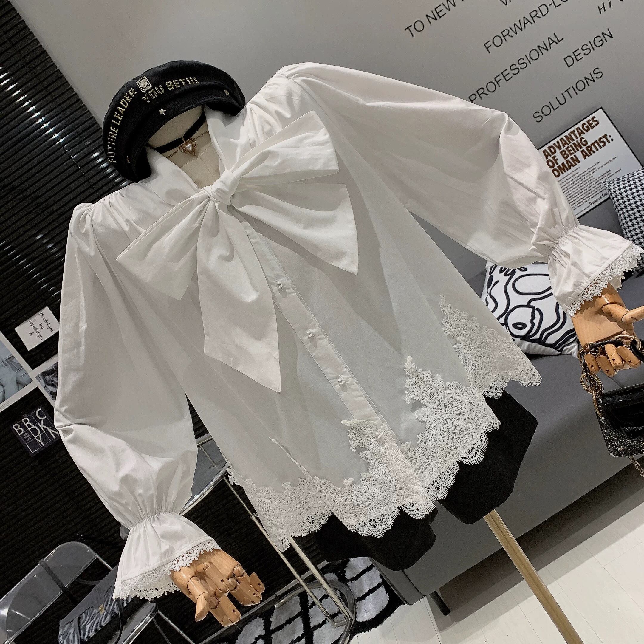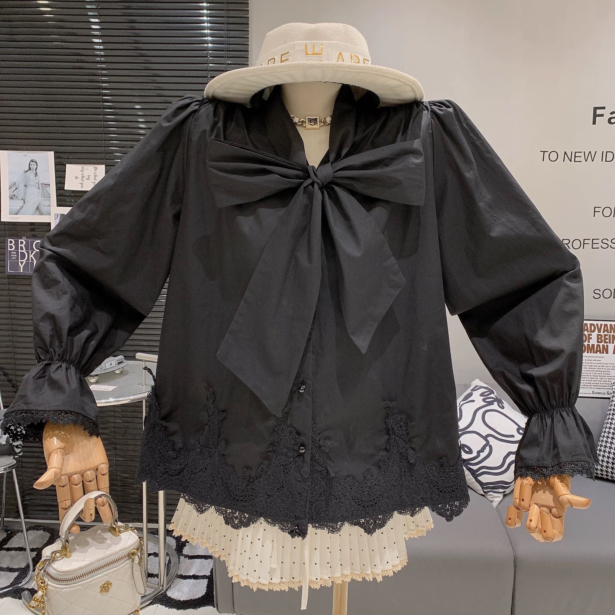 【tops】2色ボウタイシャツトップス RY1701