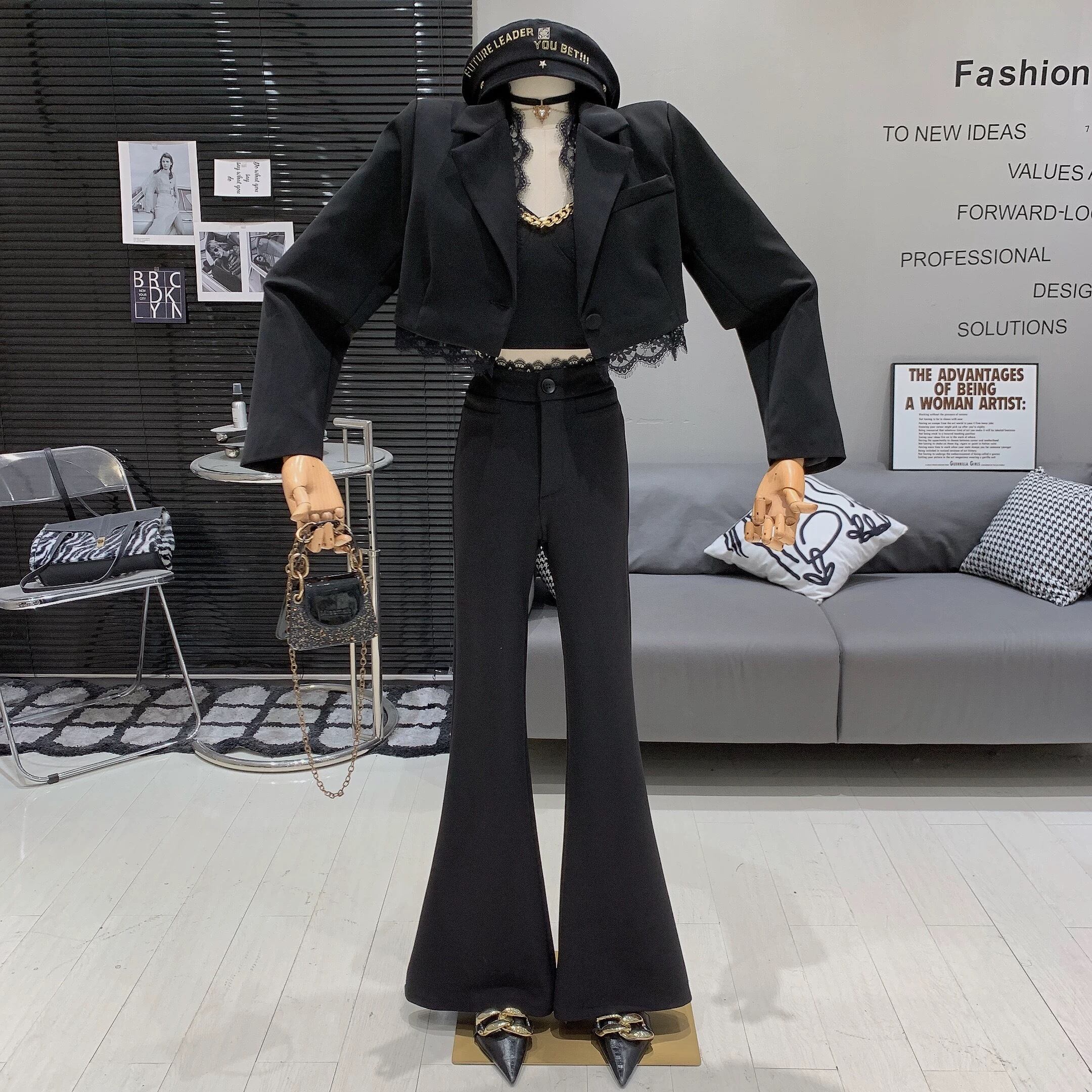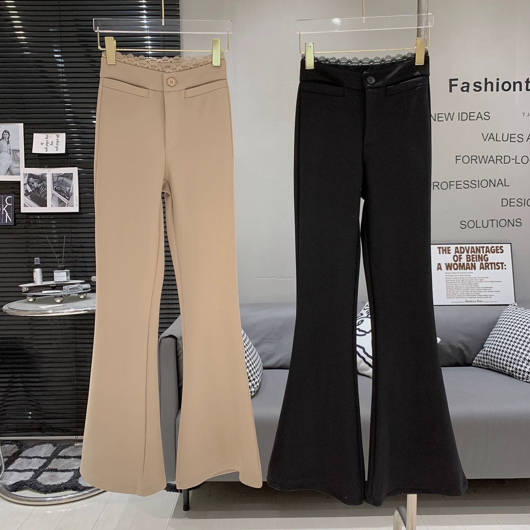 【bottoms】2色レースハイウエストフレアパンツ RY1702
