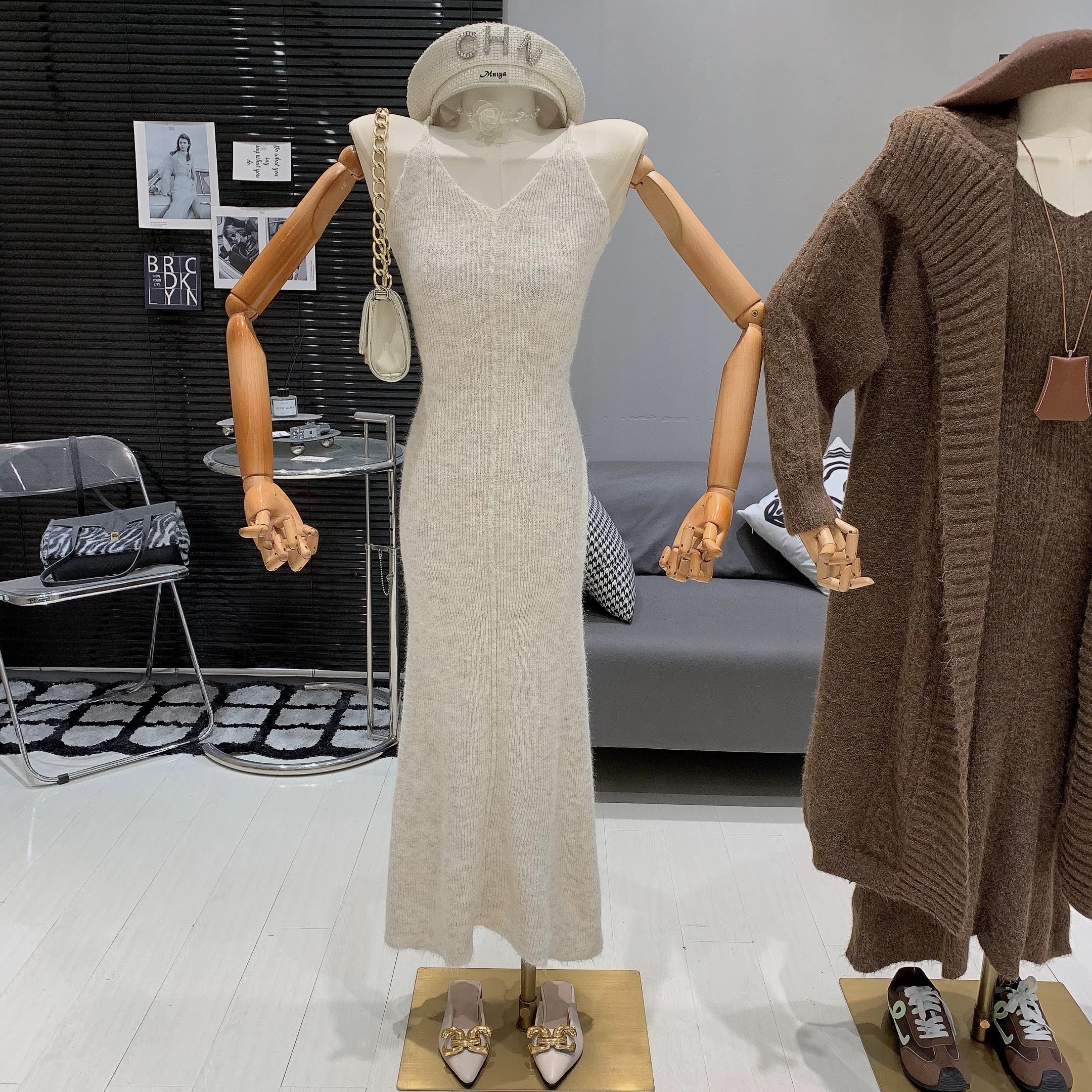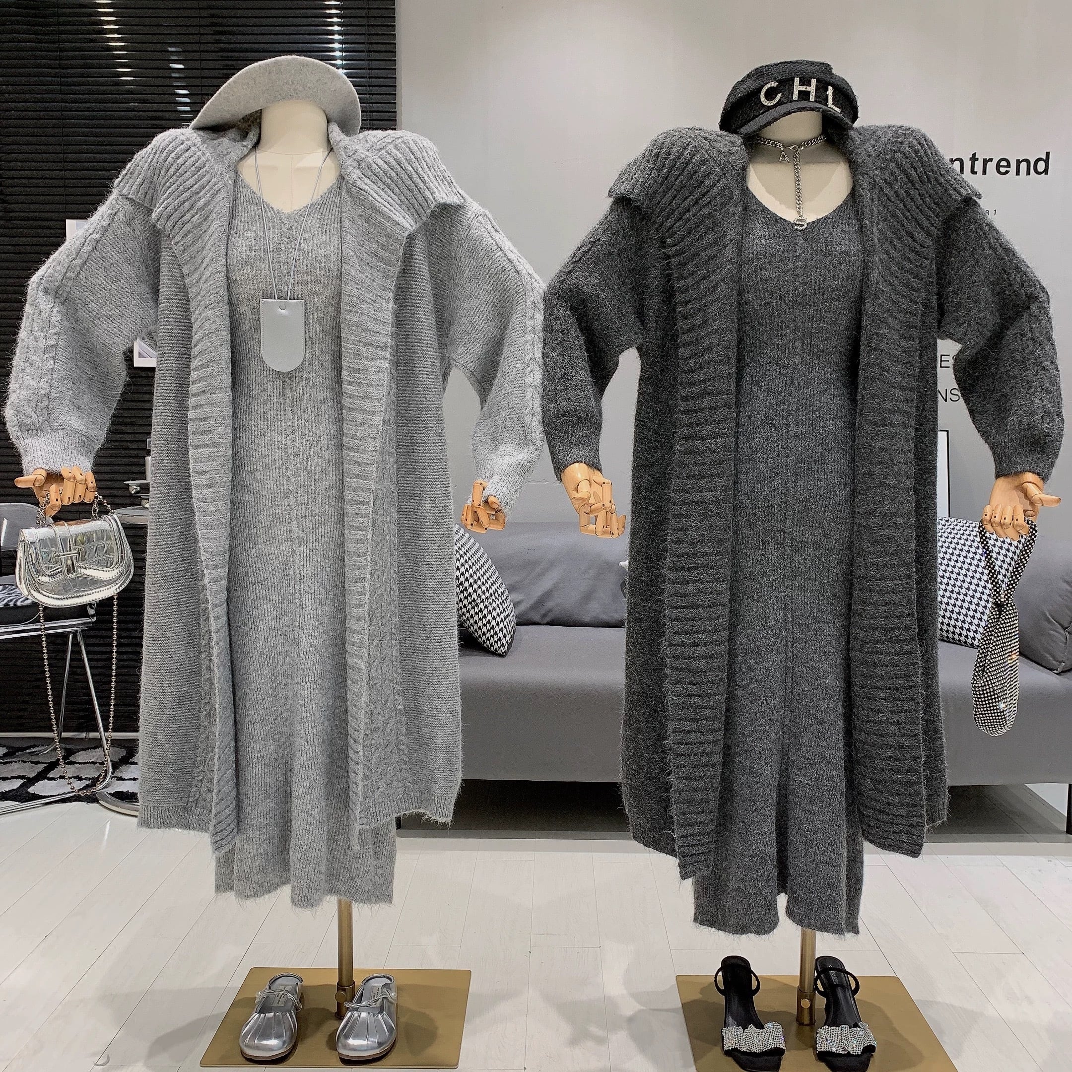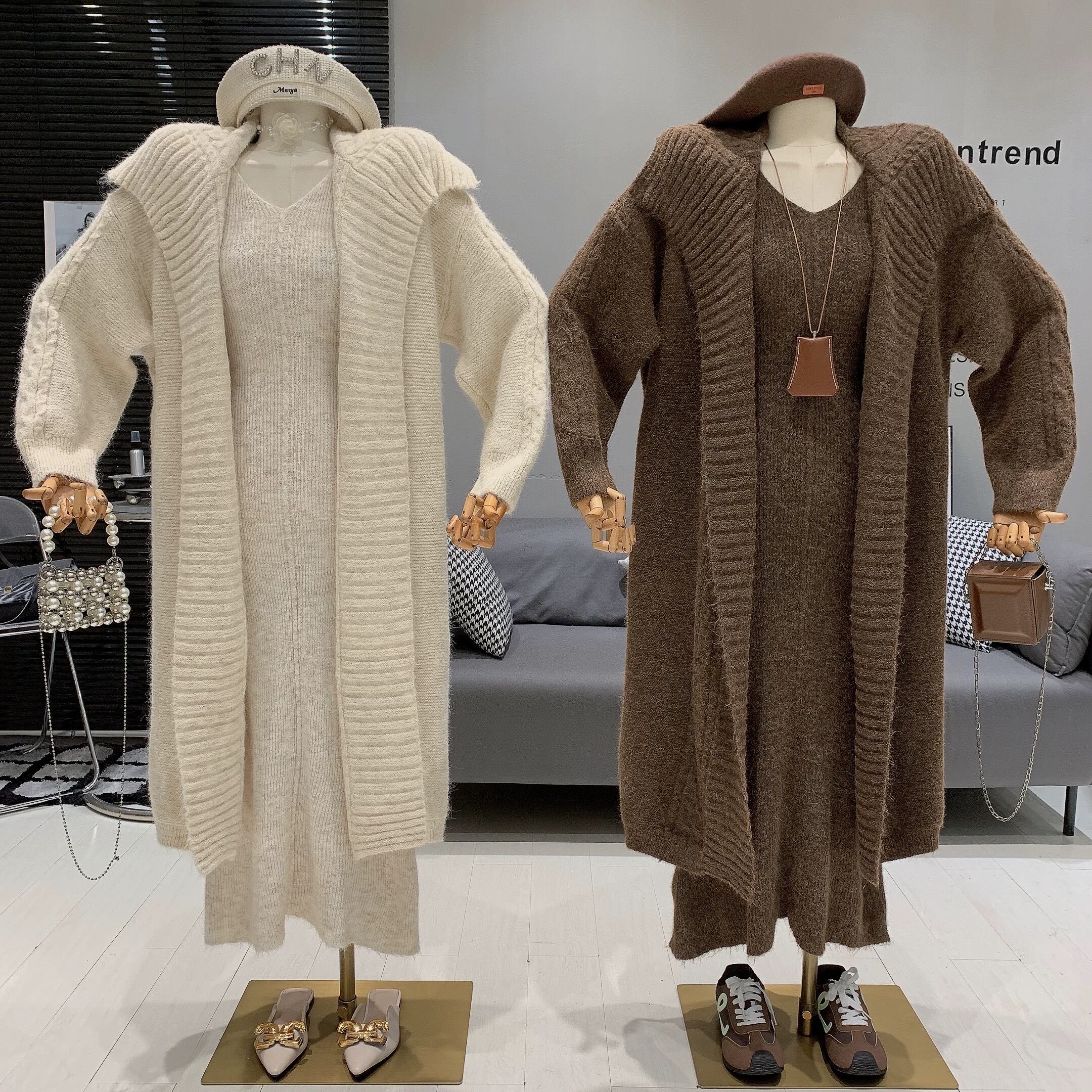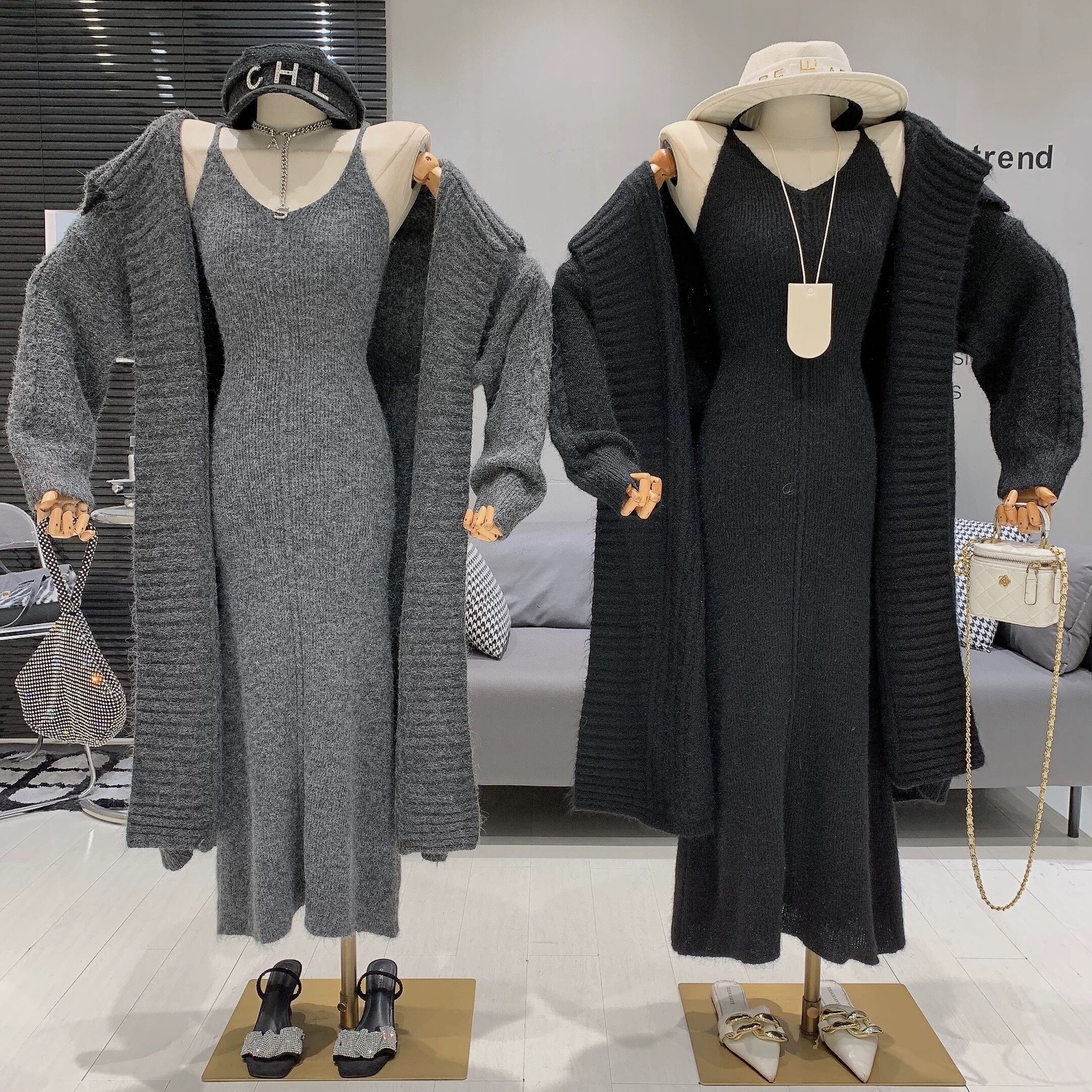 【set】5色ニットキャミワンピースxカーディガンRY1703