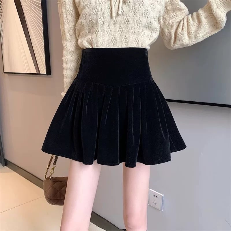 【bottoms】インパン付きベルベットプリーツスカート RY1900