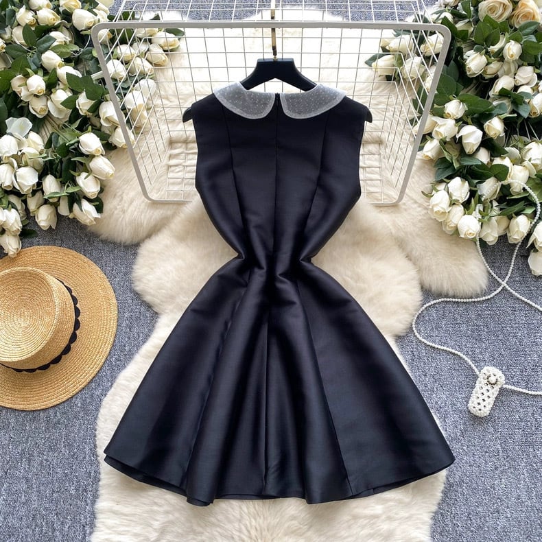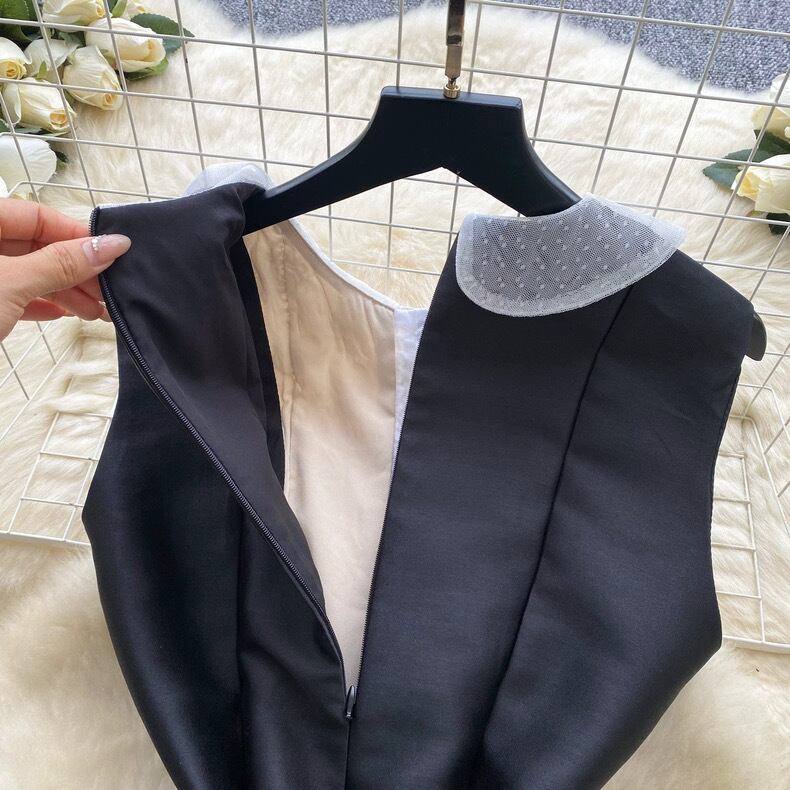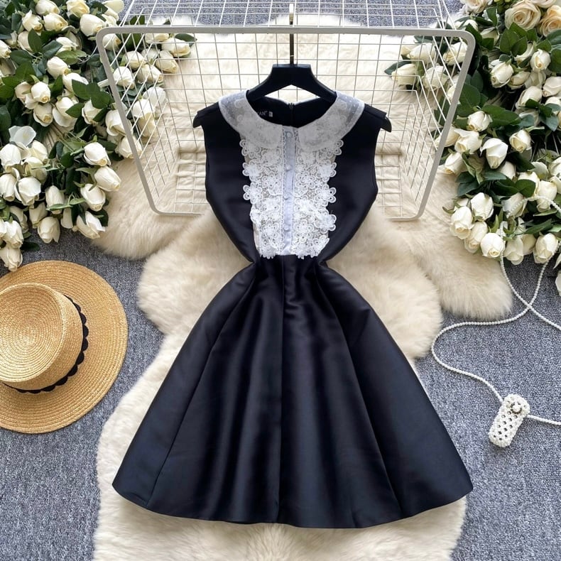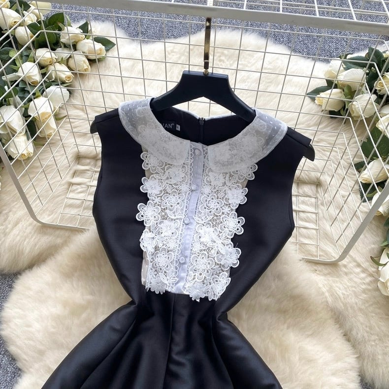 【dress】S-2XL丸襟レースノースリーブワンピース RY1901