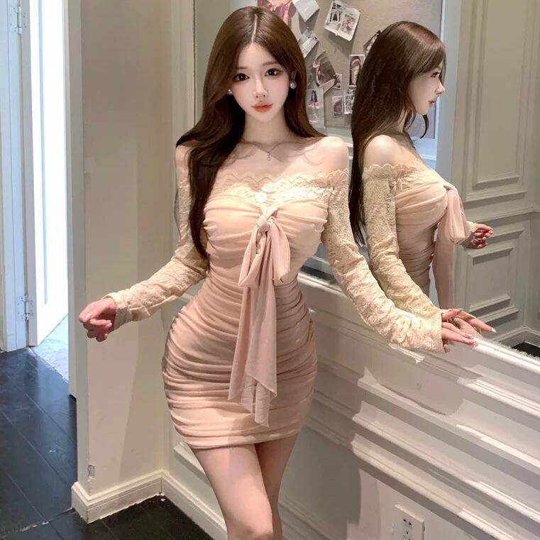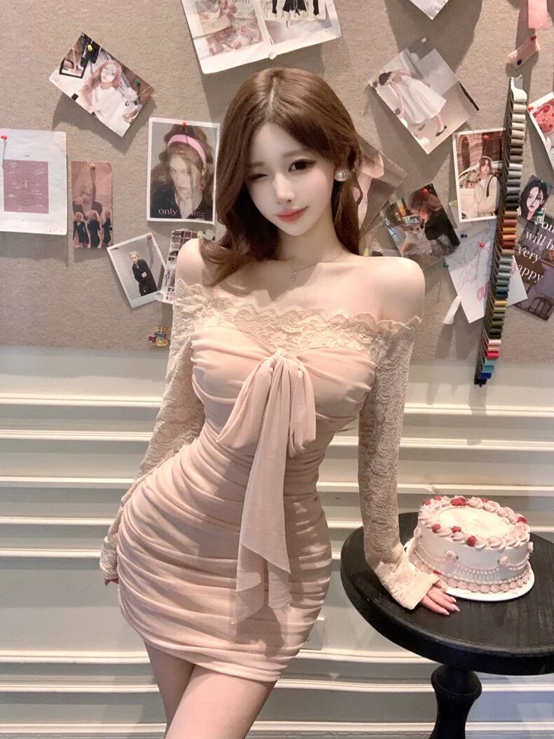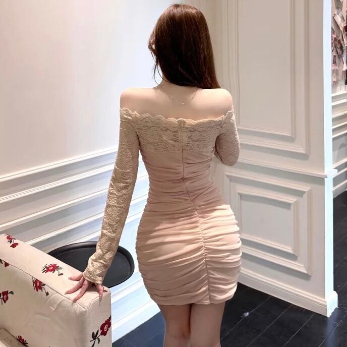 【dress】カップ付きオフショルダーレースミニワンピース RY2105