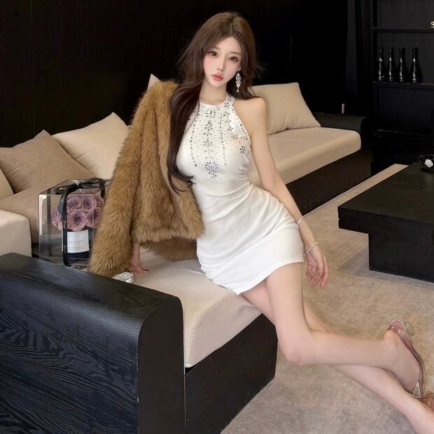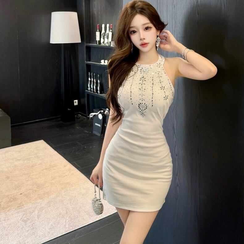 【dress】2色ホルターネックビジューミニワンピース RY2288