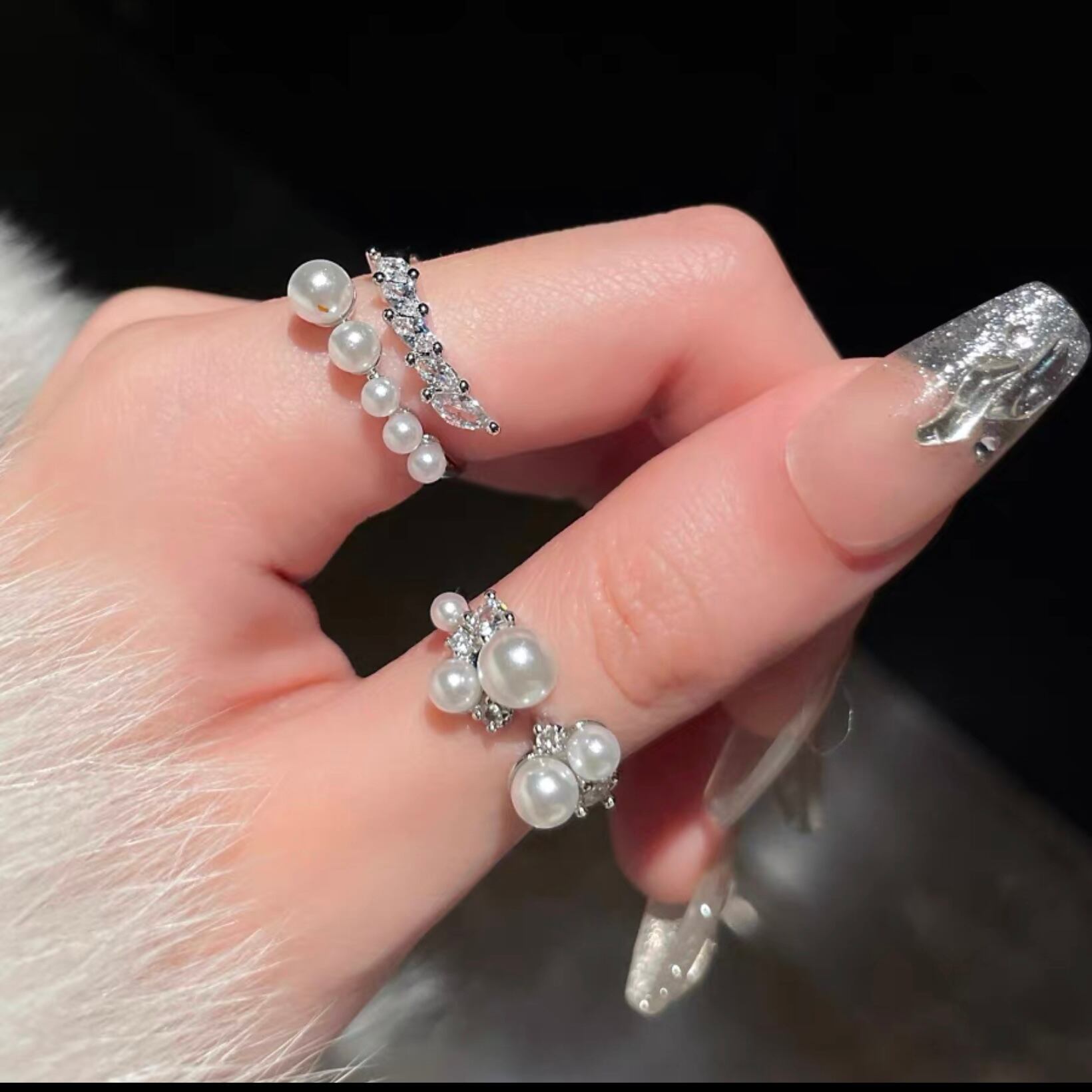 【雑貨】フレンチパールマイクロリング3個セット SW0177