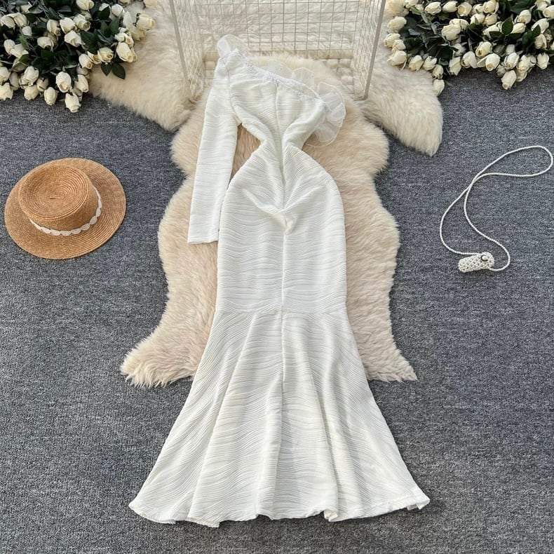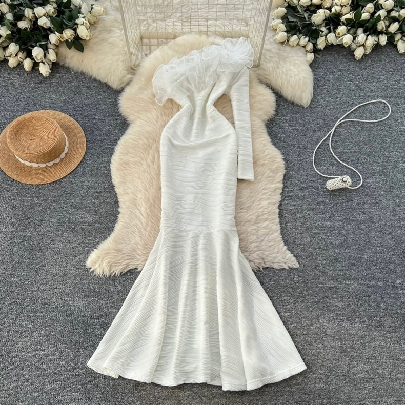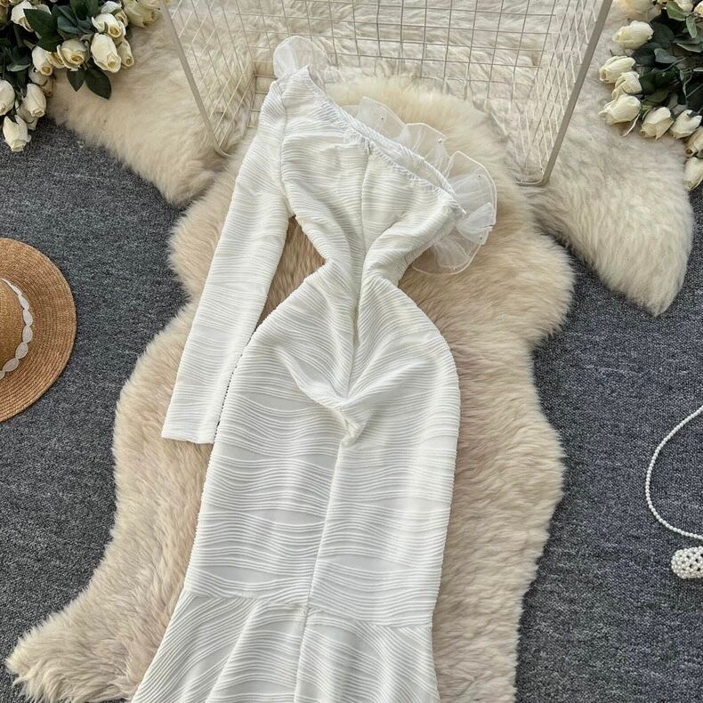 【dress】S-2XLオフショルダーマーメイドドレス RY2409