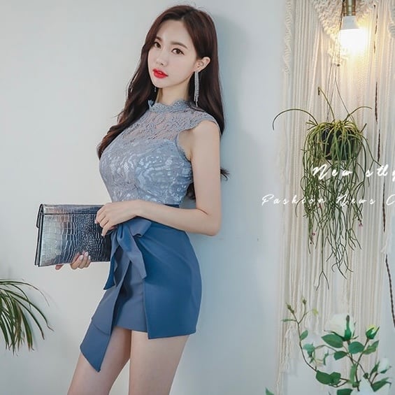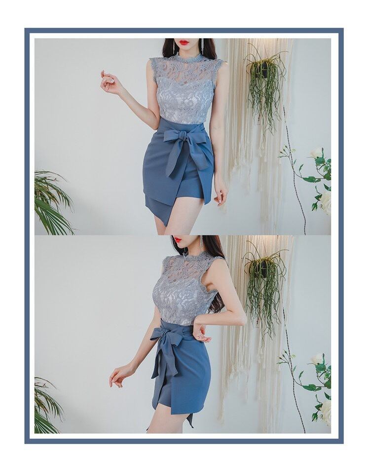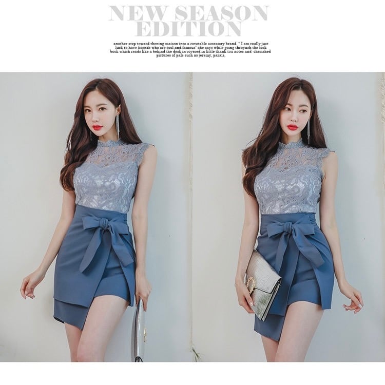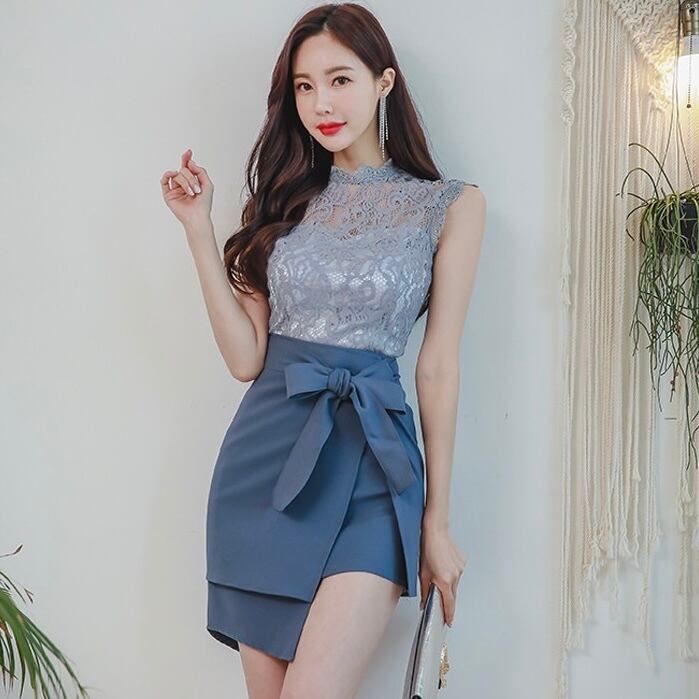 【set】ノースリーブレーストップスxリボンスカート RY2570