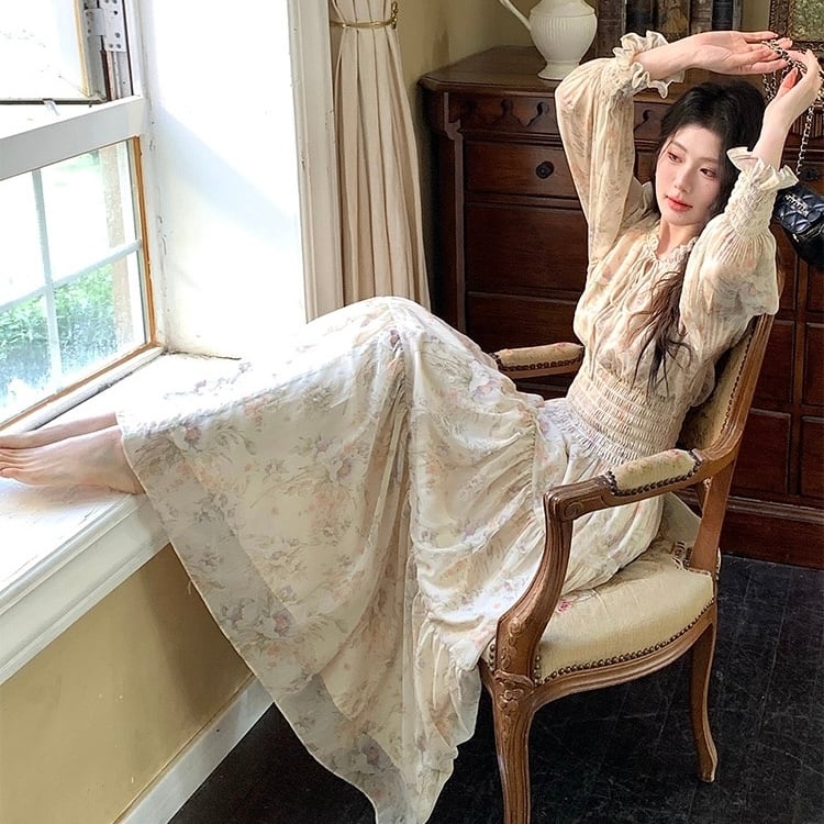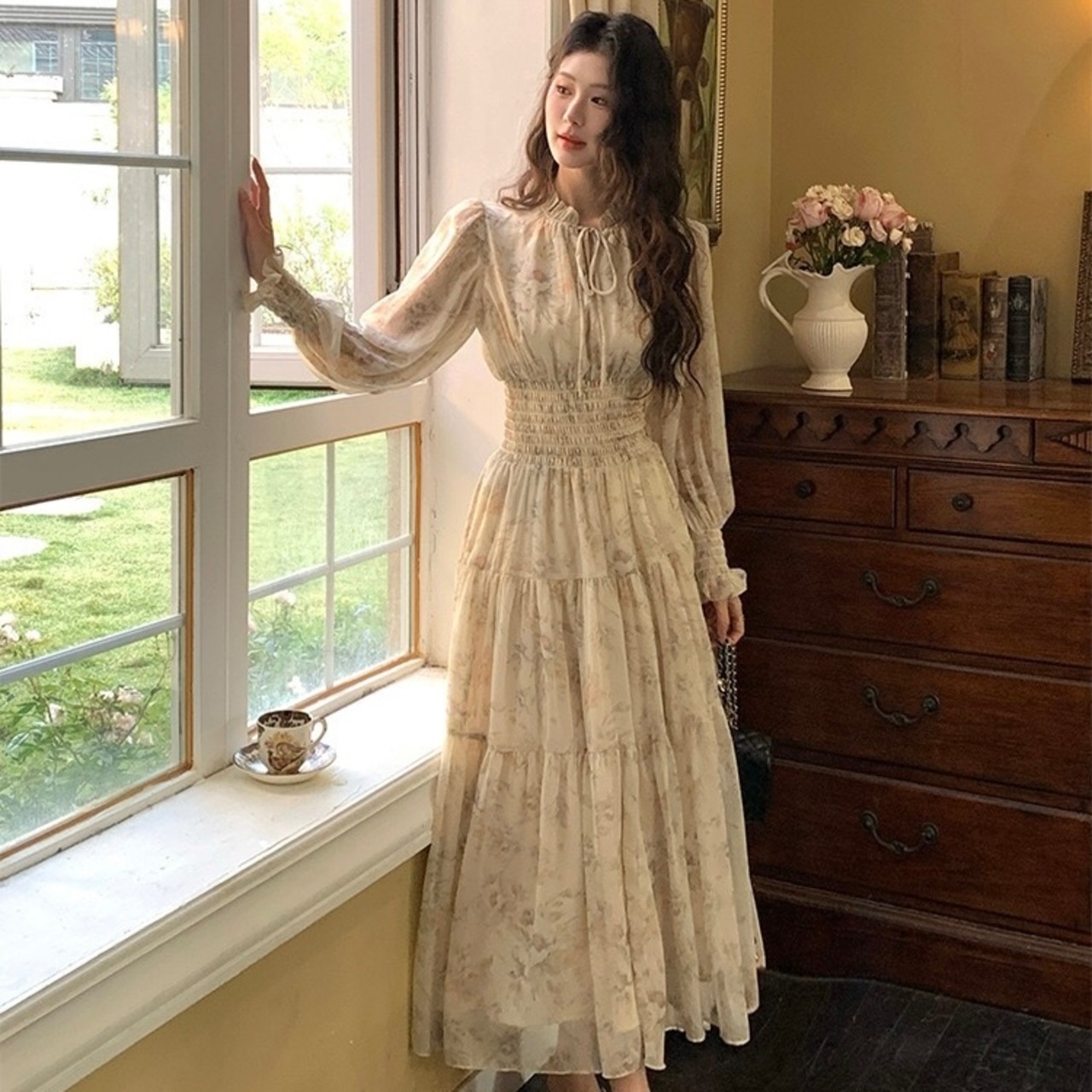 【dress】フラワー長袖ワンピース RY2500