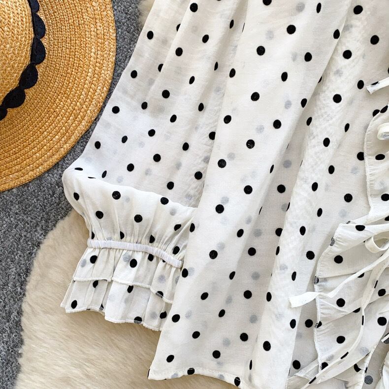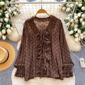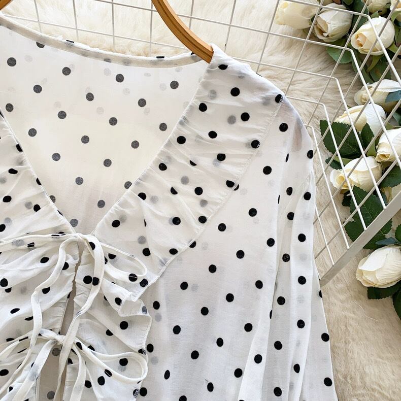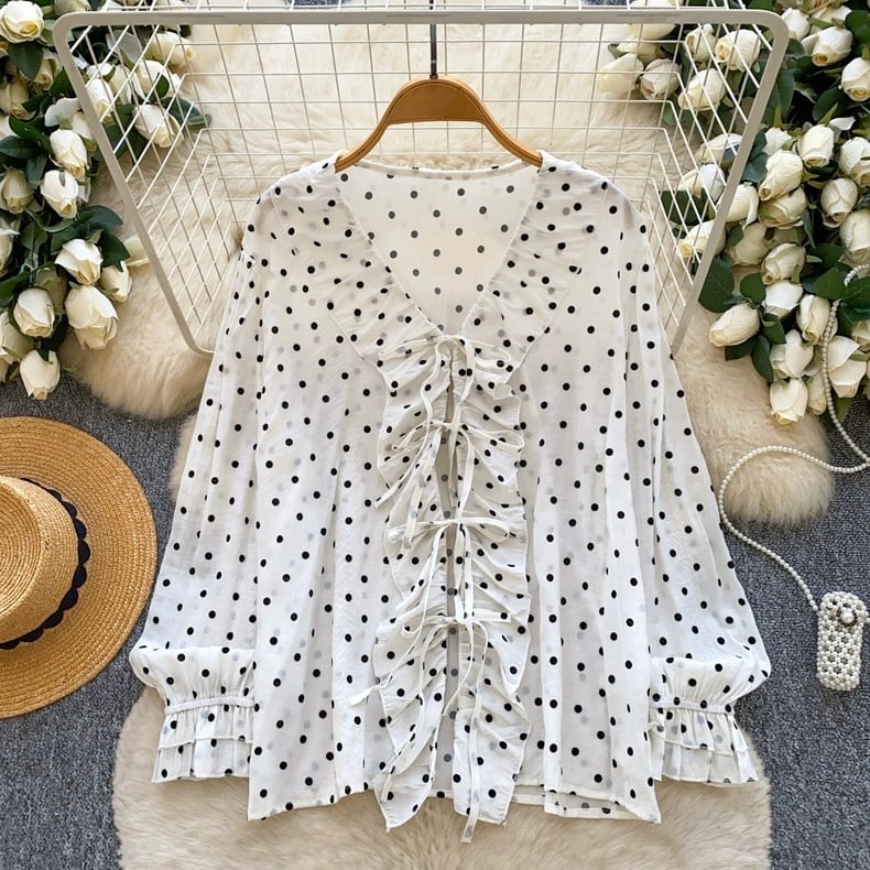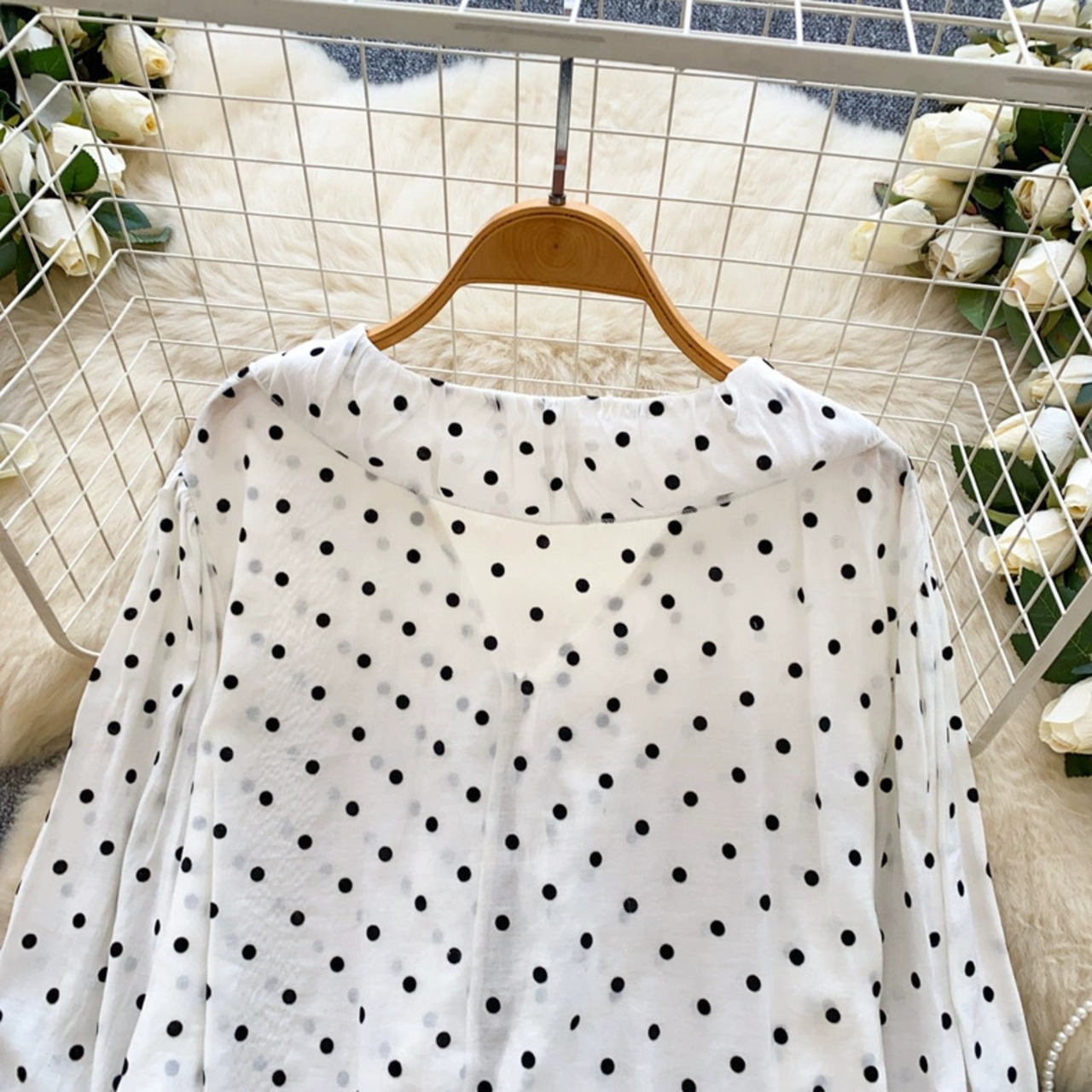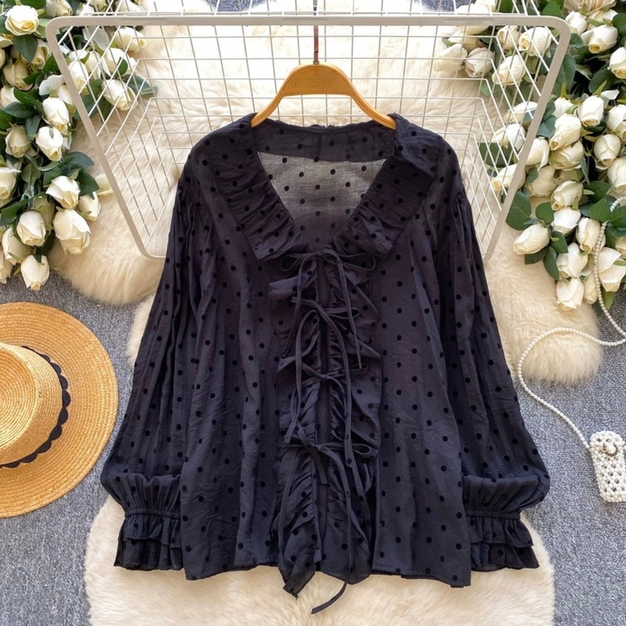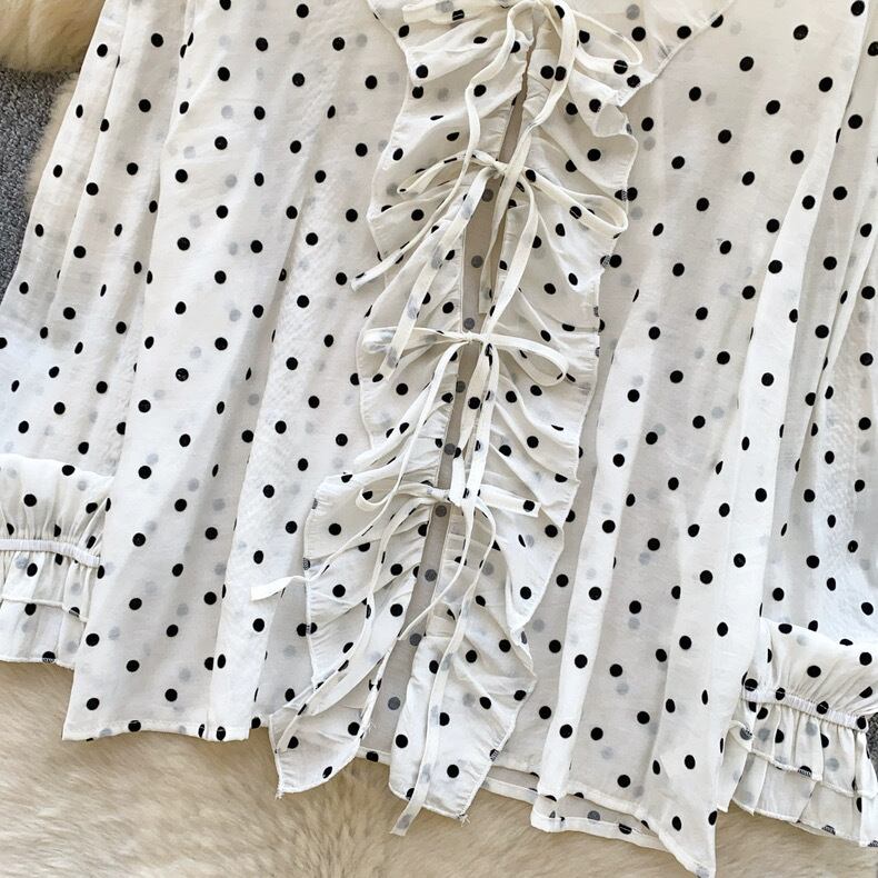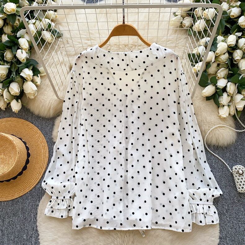 【tops】3色ドット柄リボンシャツトップス HB0209