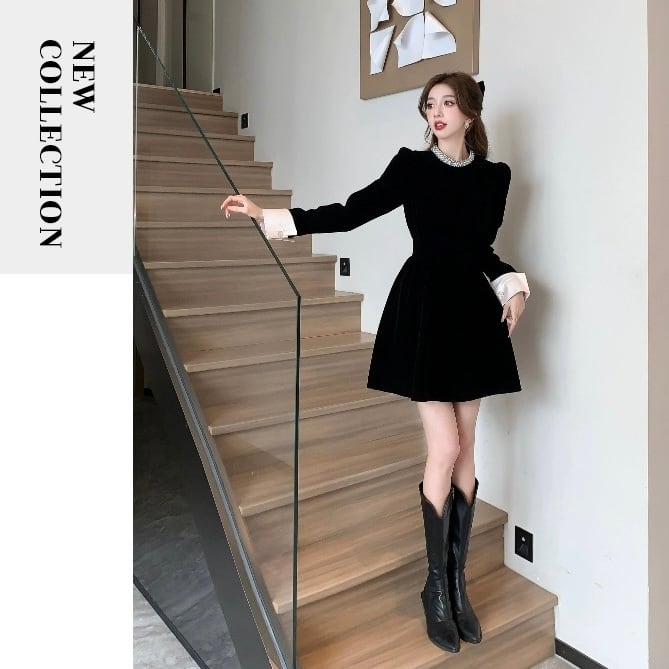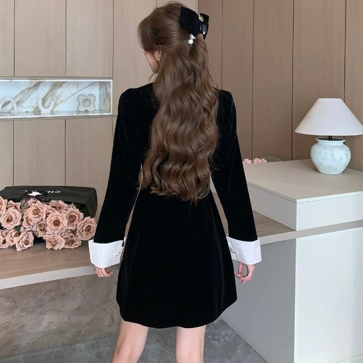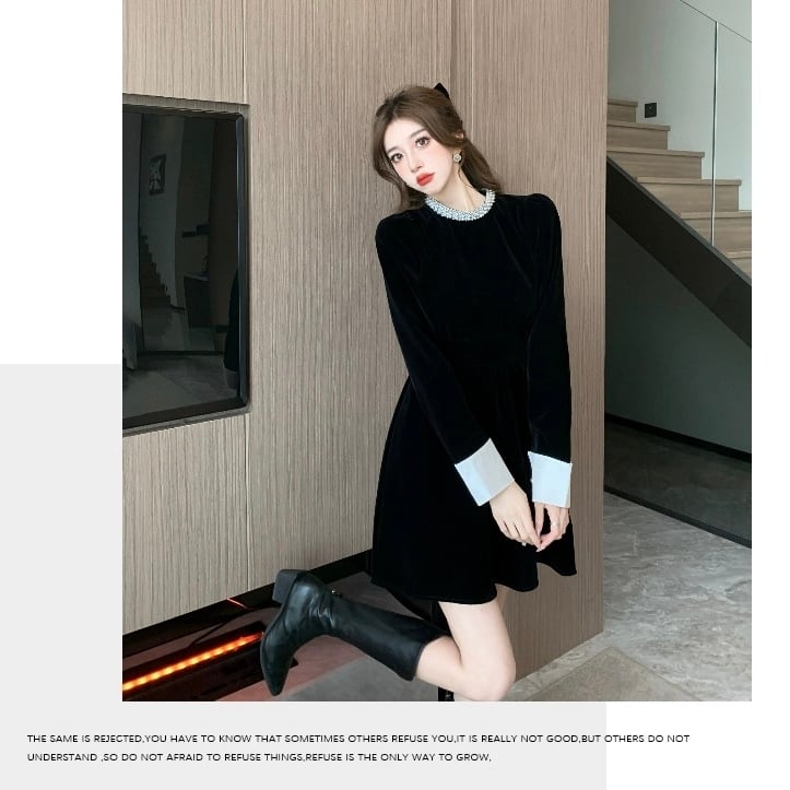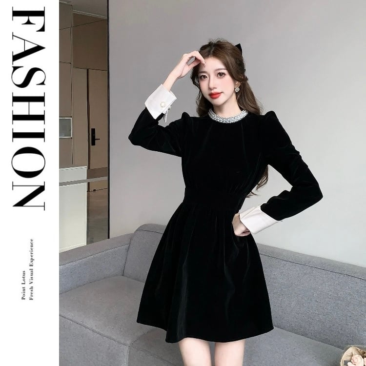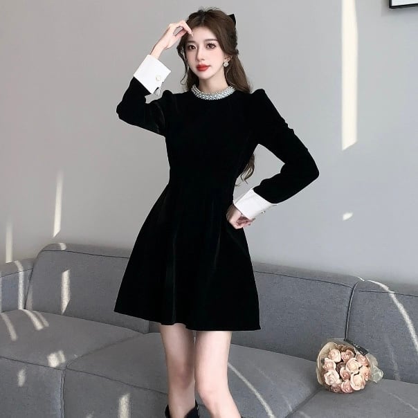 【dress】ビジュー付きベルベットワンピース HB2510