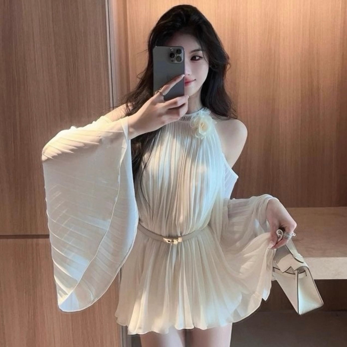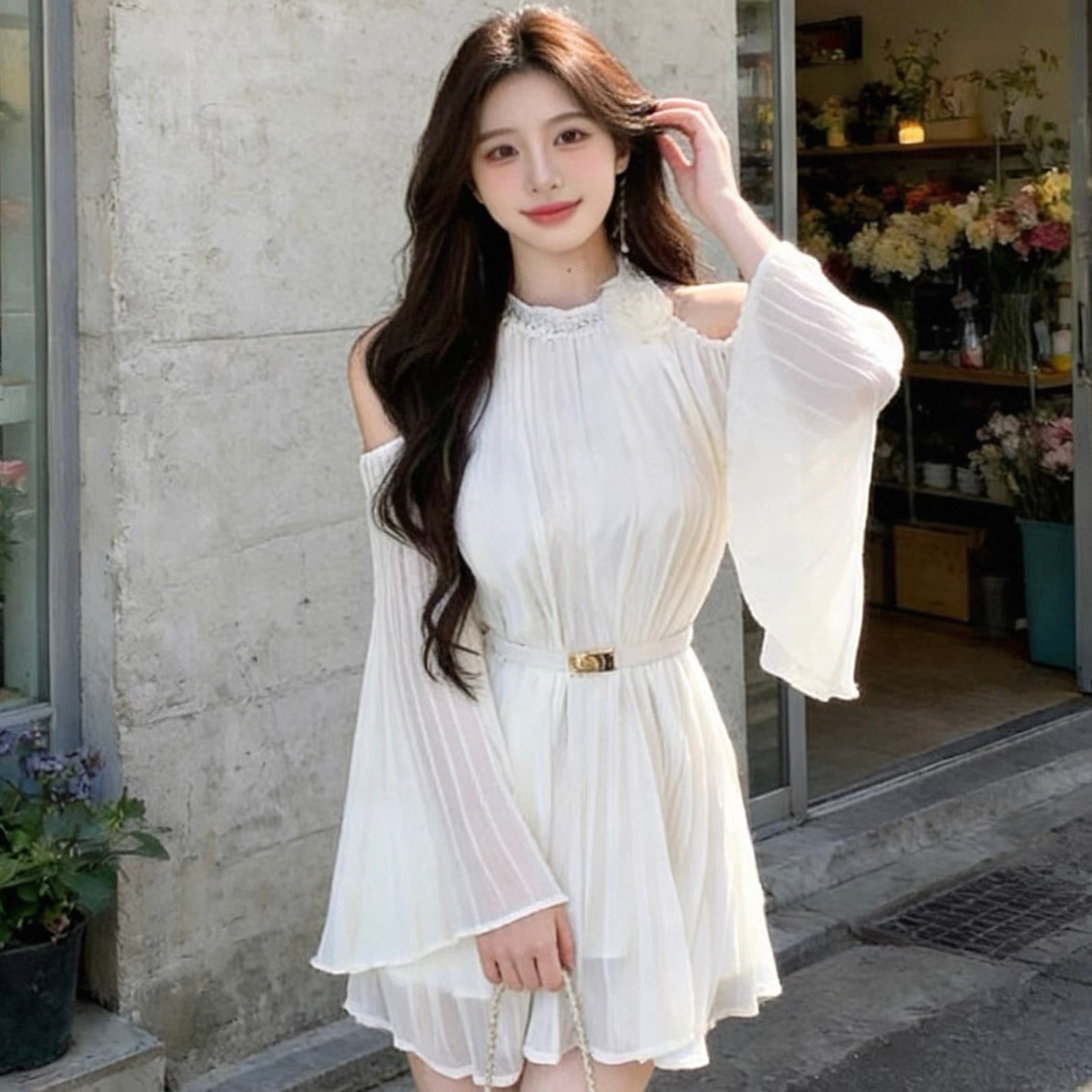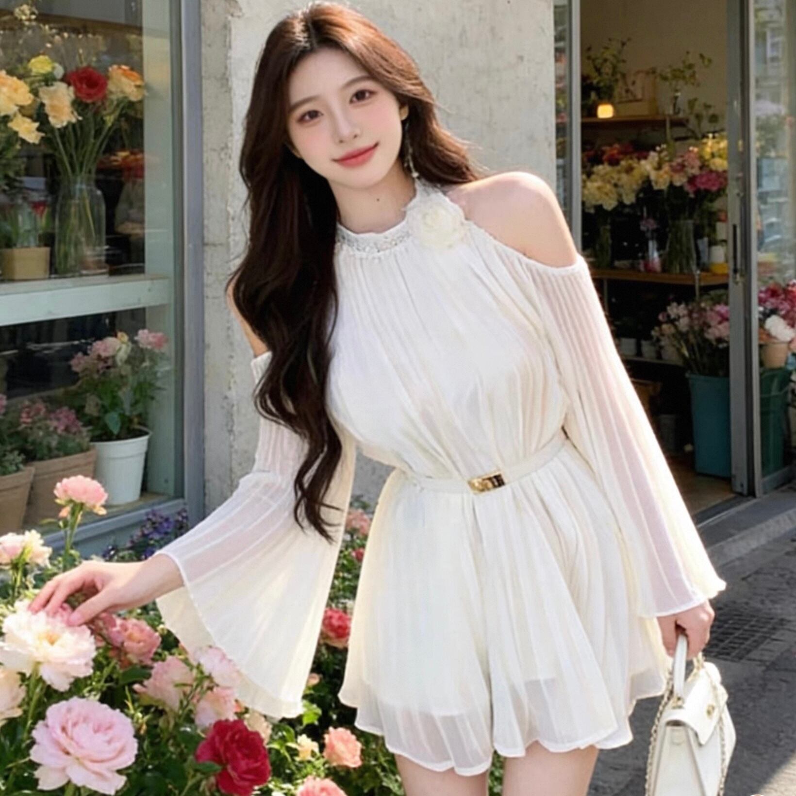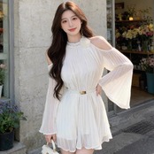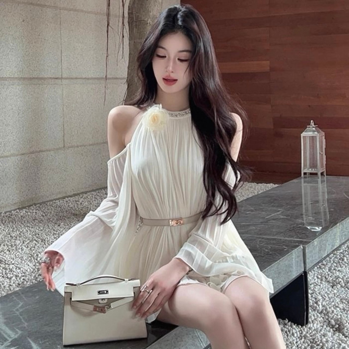 【dress】オフショルホルターネックシフォンブラウス HK0332