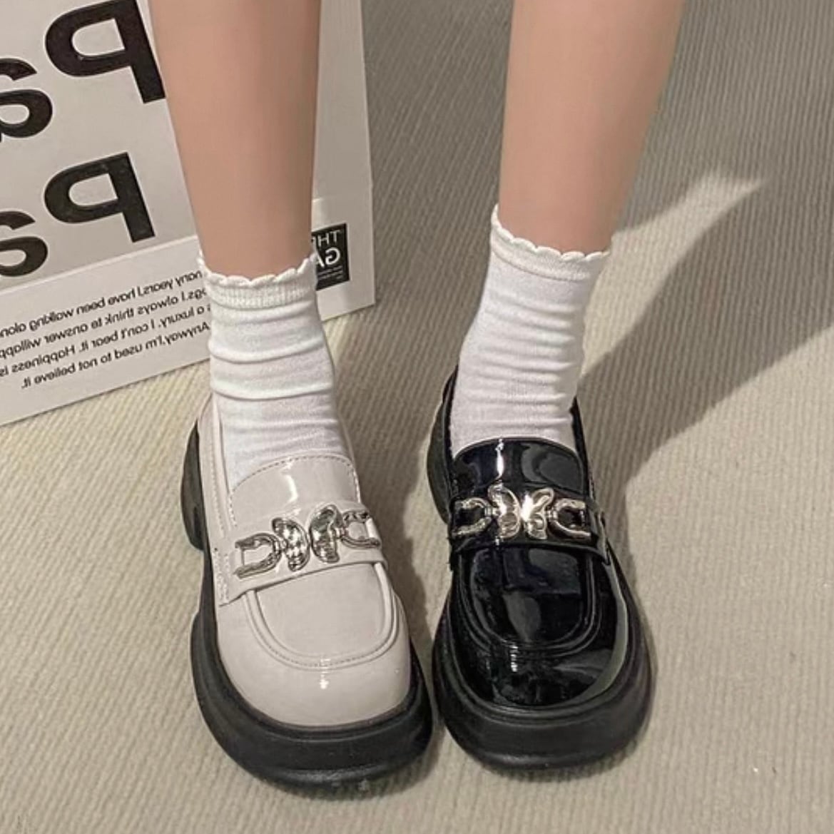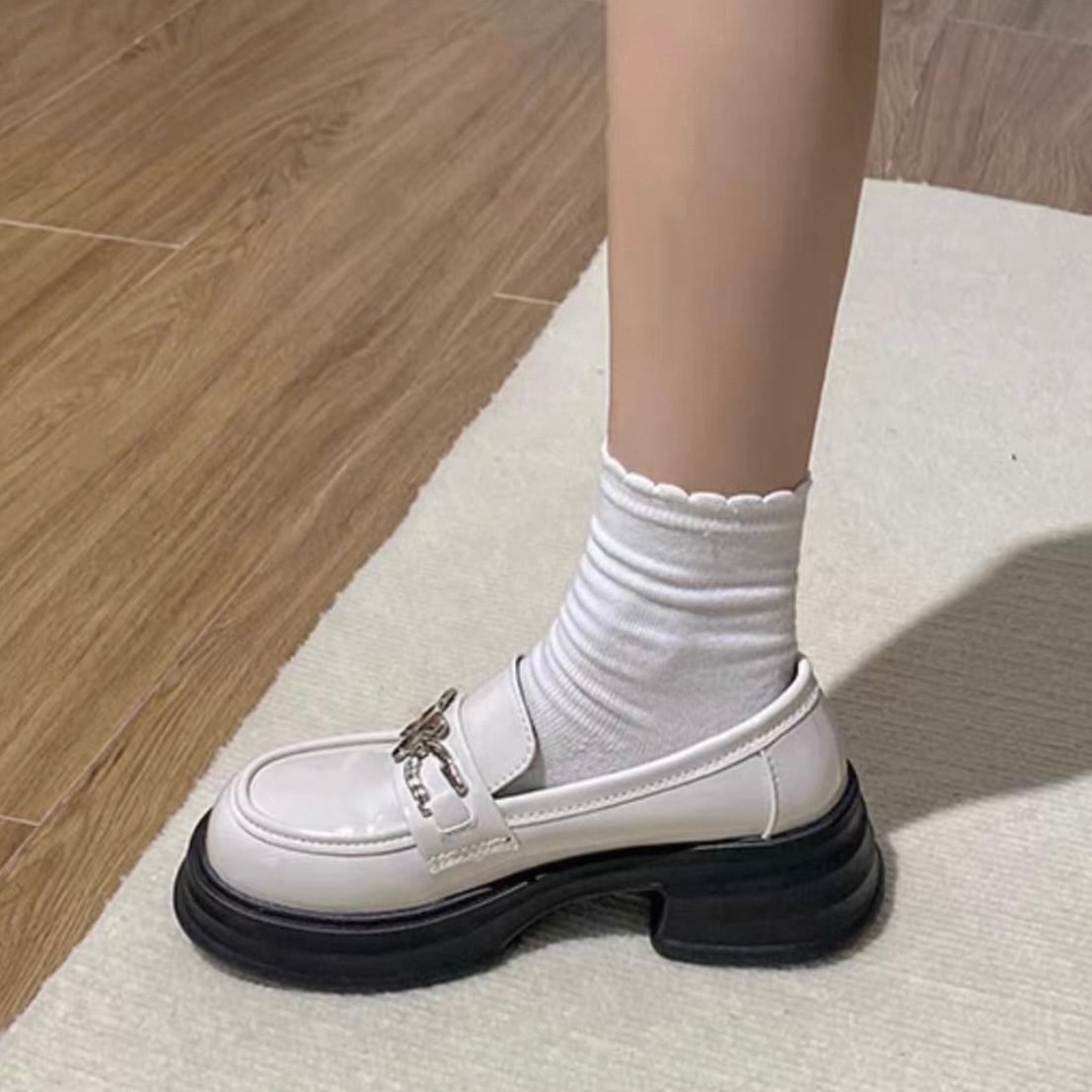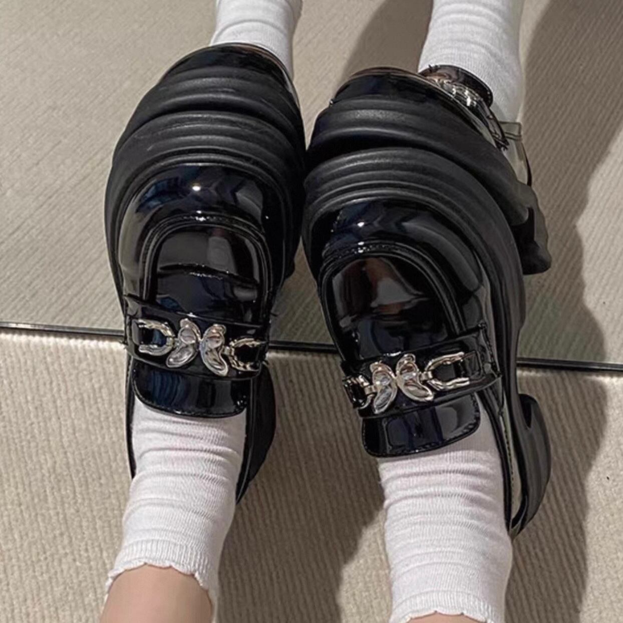 【shoes】2色レトロ風レディースレザーシューズ HK4567