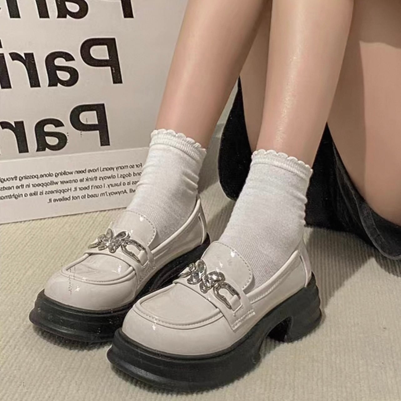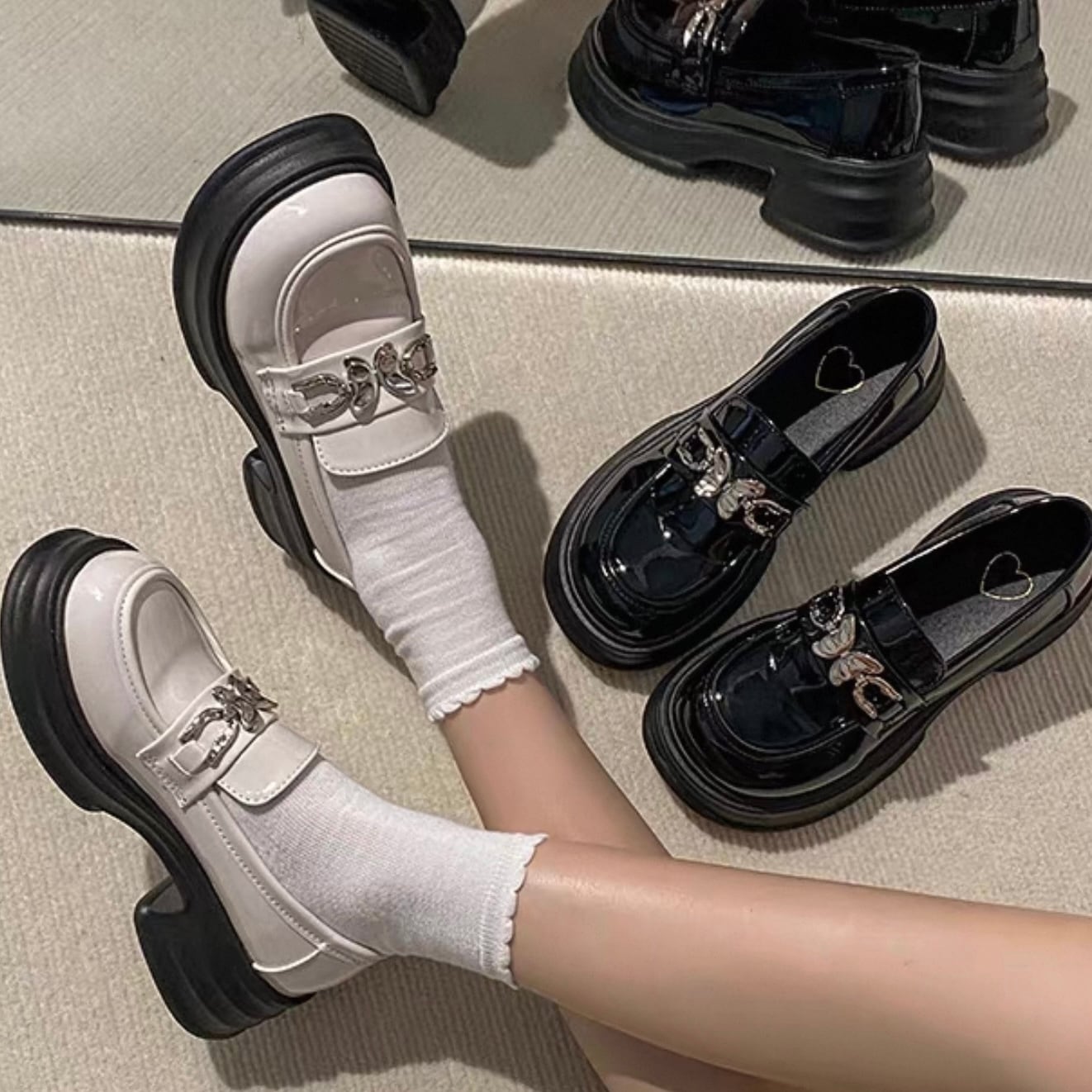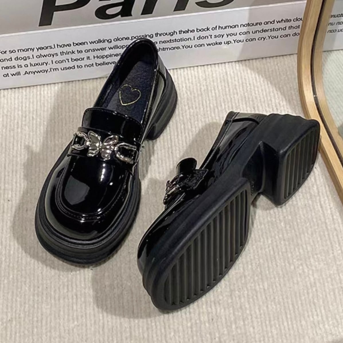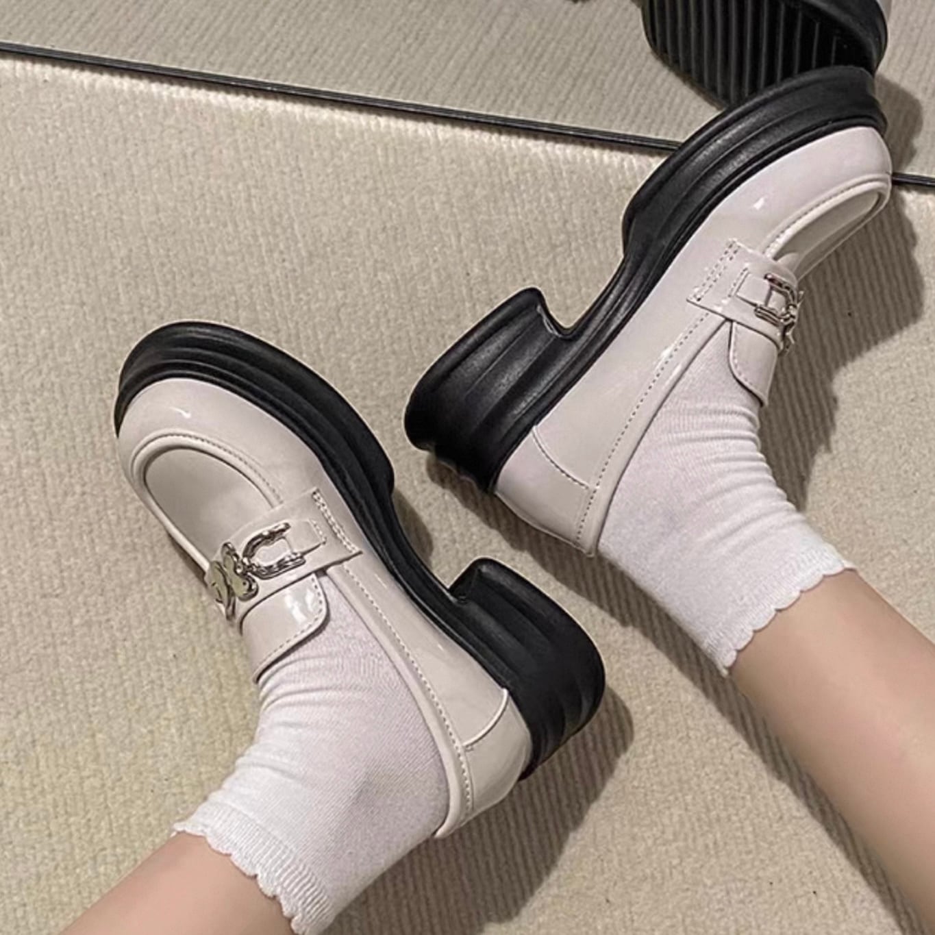 【shoes】2色レトロ風レディースレザーシューズ HK4567