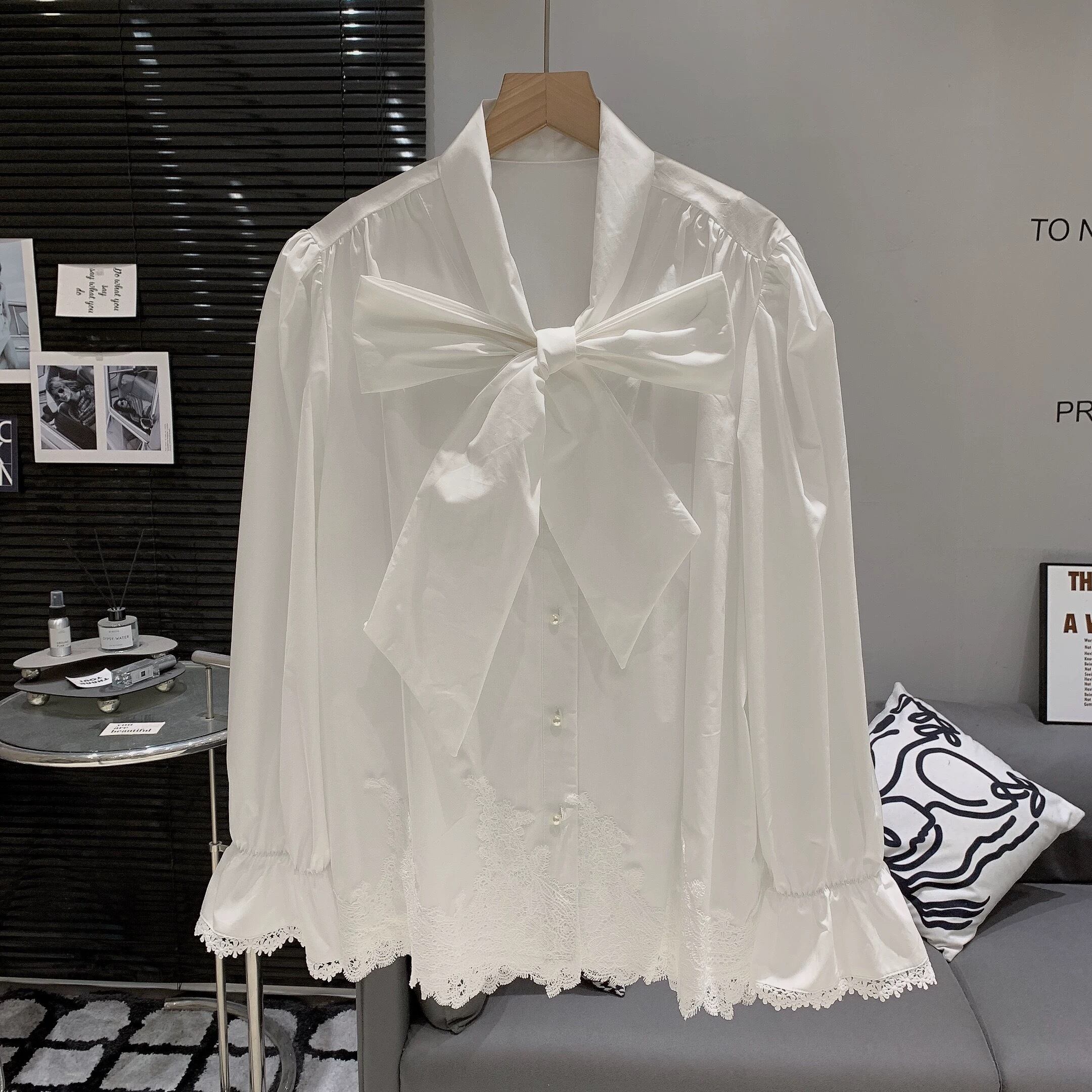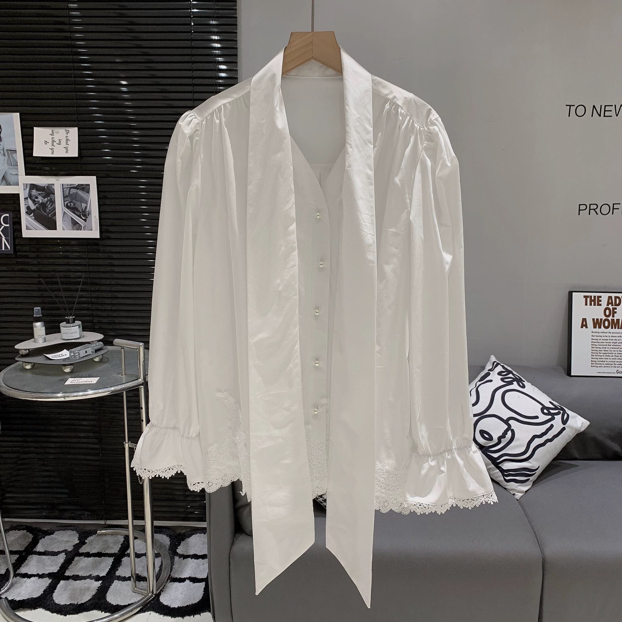 【tops】ボウタイレースドッキングシャツトップス RH2910