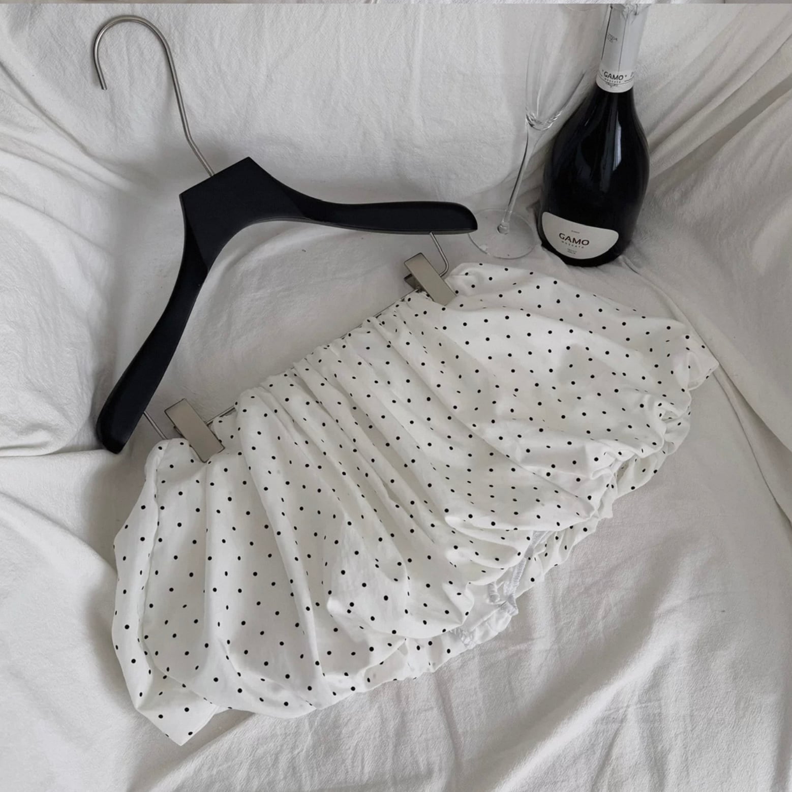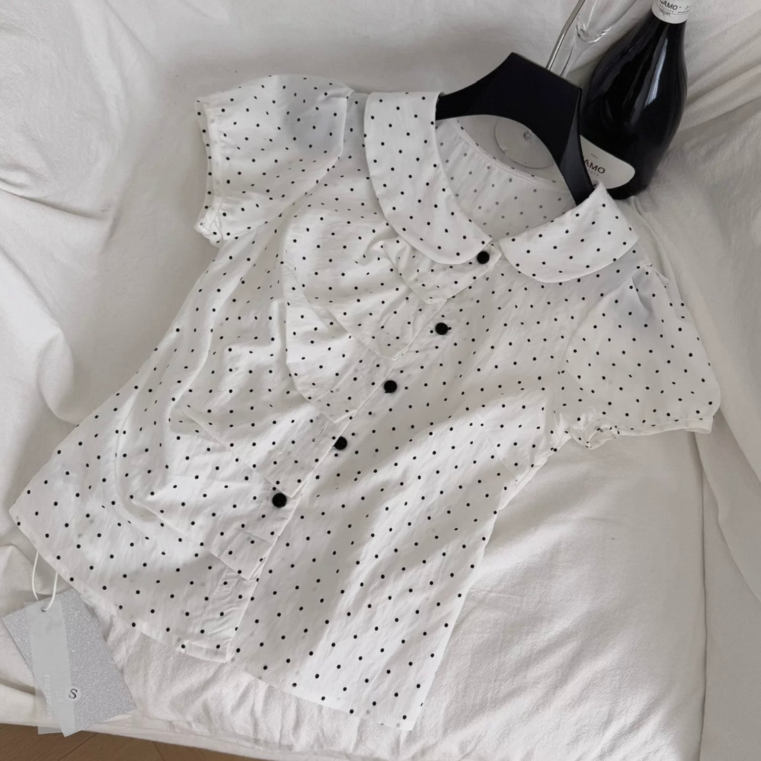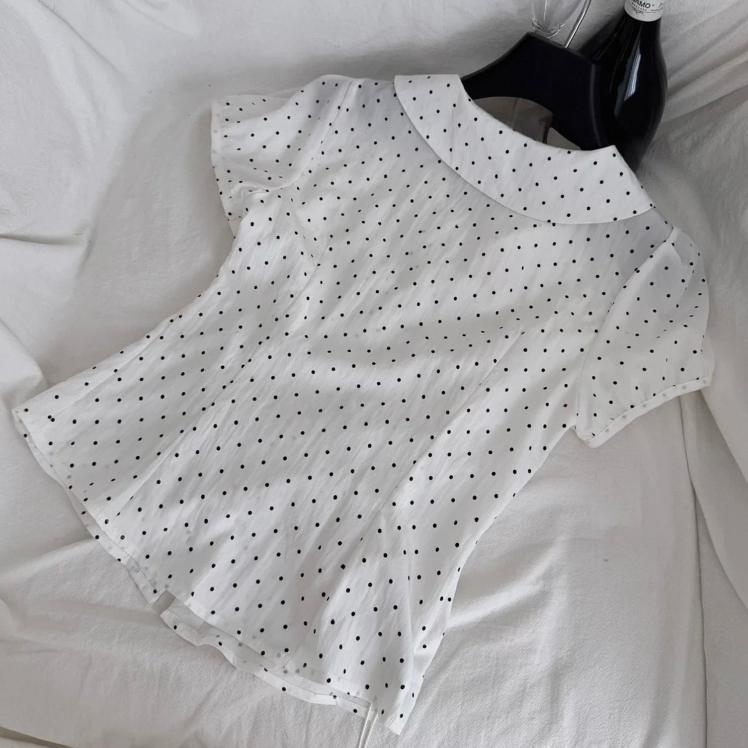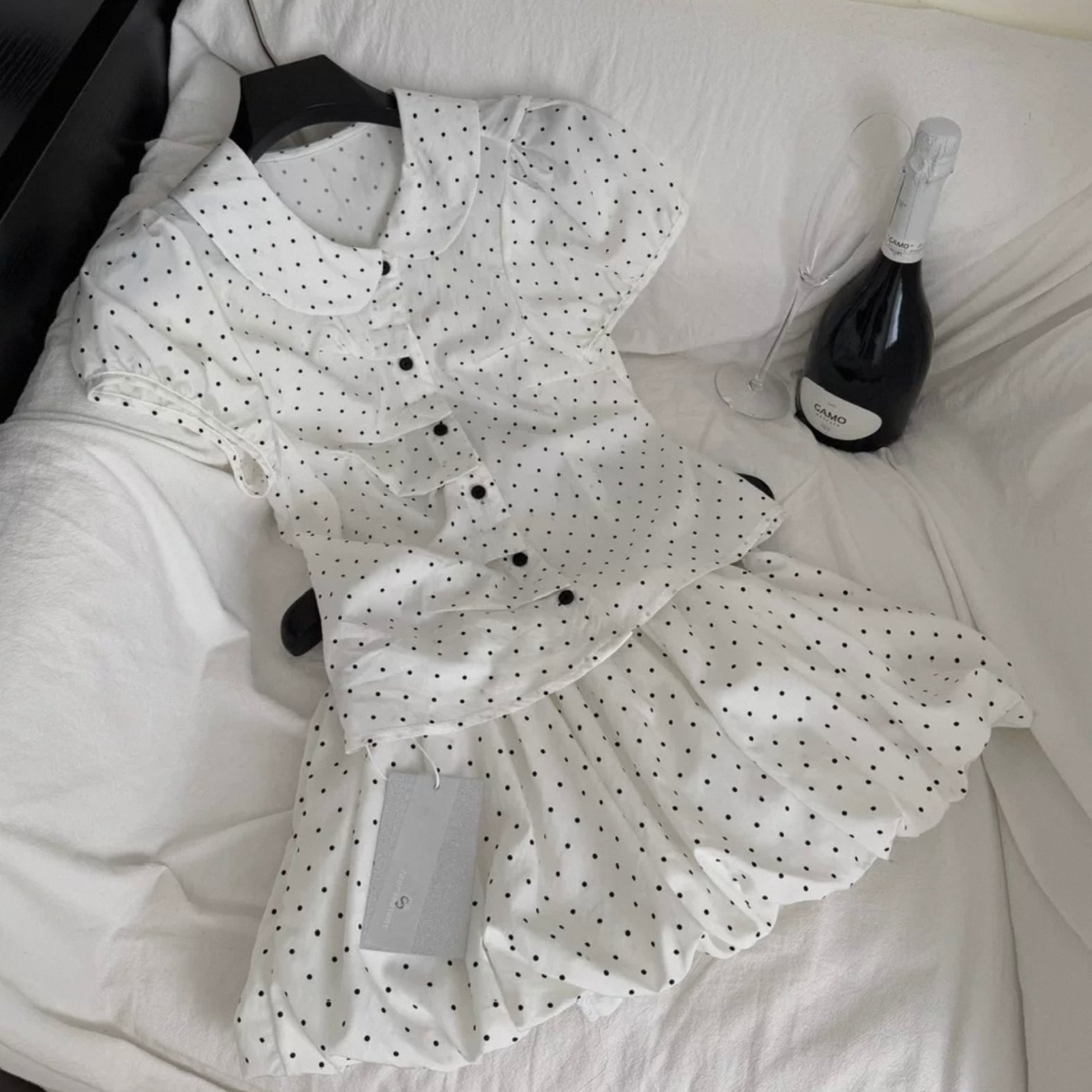 【set】プリーツデザインドット柄半袖ブラウス×インパン付きフリルスカート HK0356