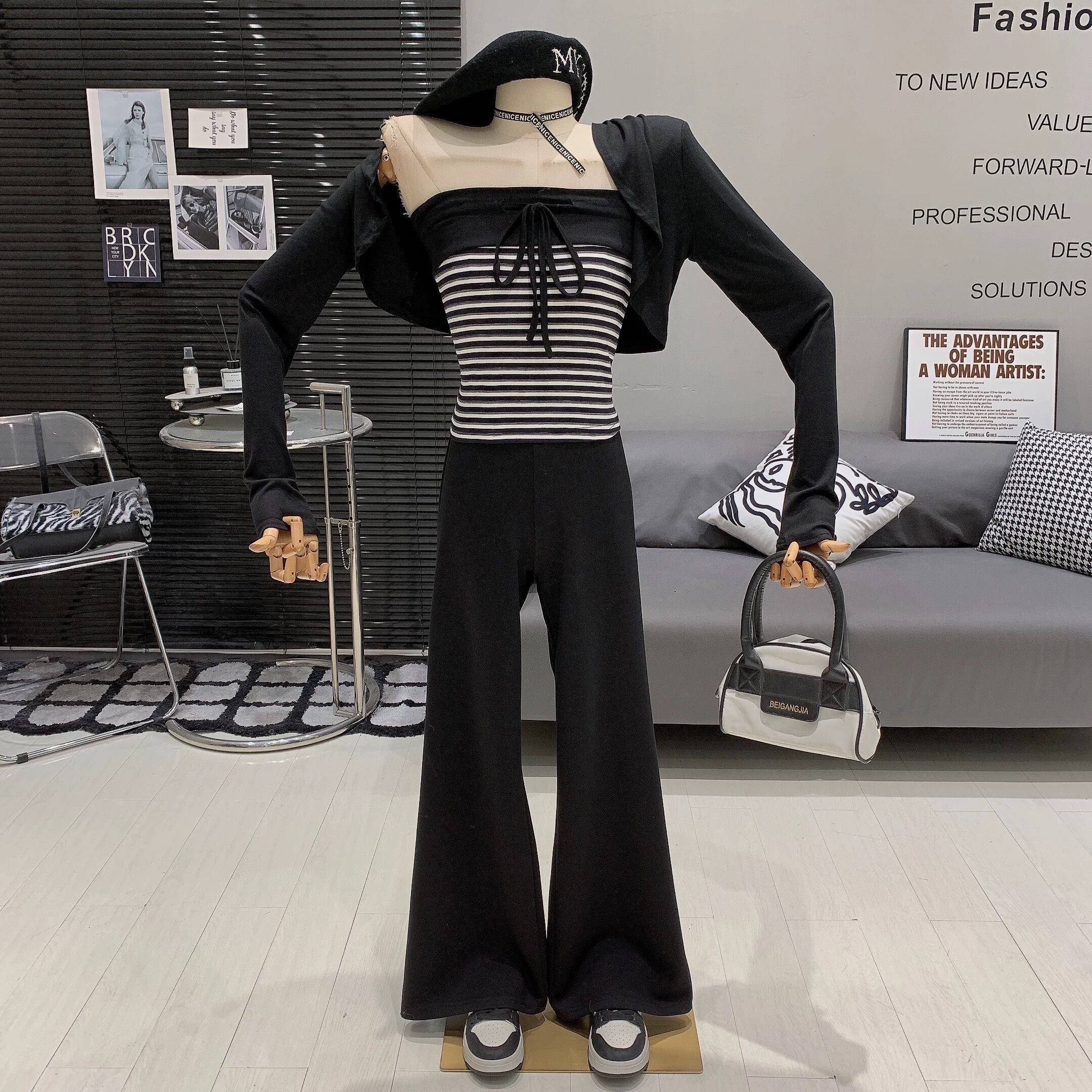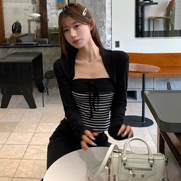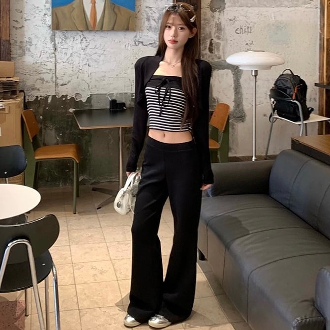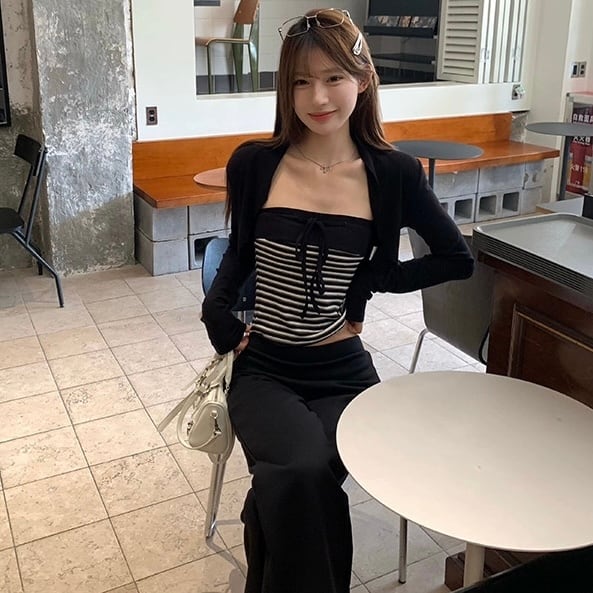 【set】3点set チューブトップスxカーディガンxワイドパンツ RH3289
