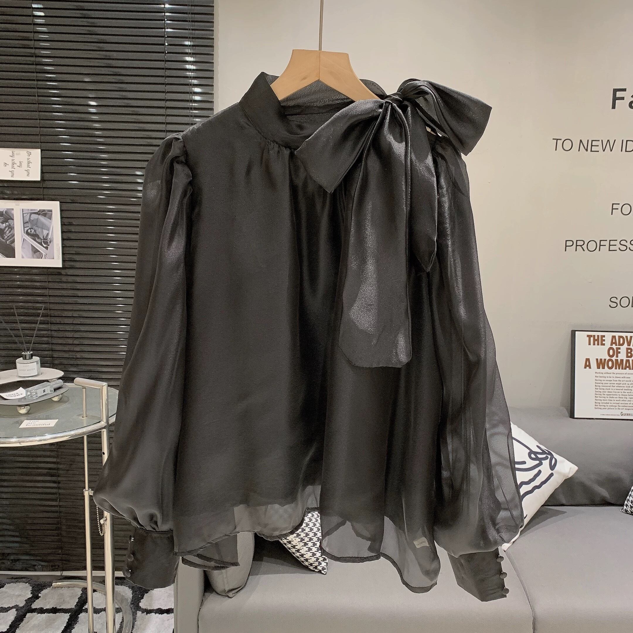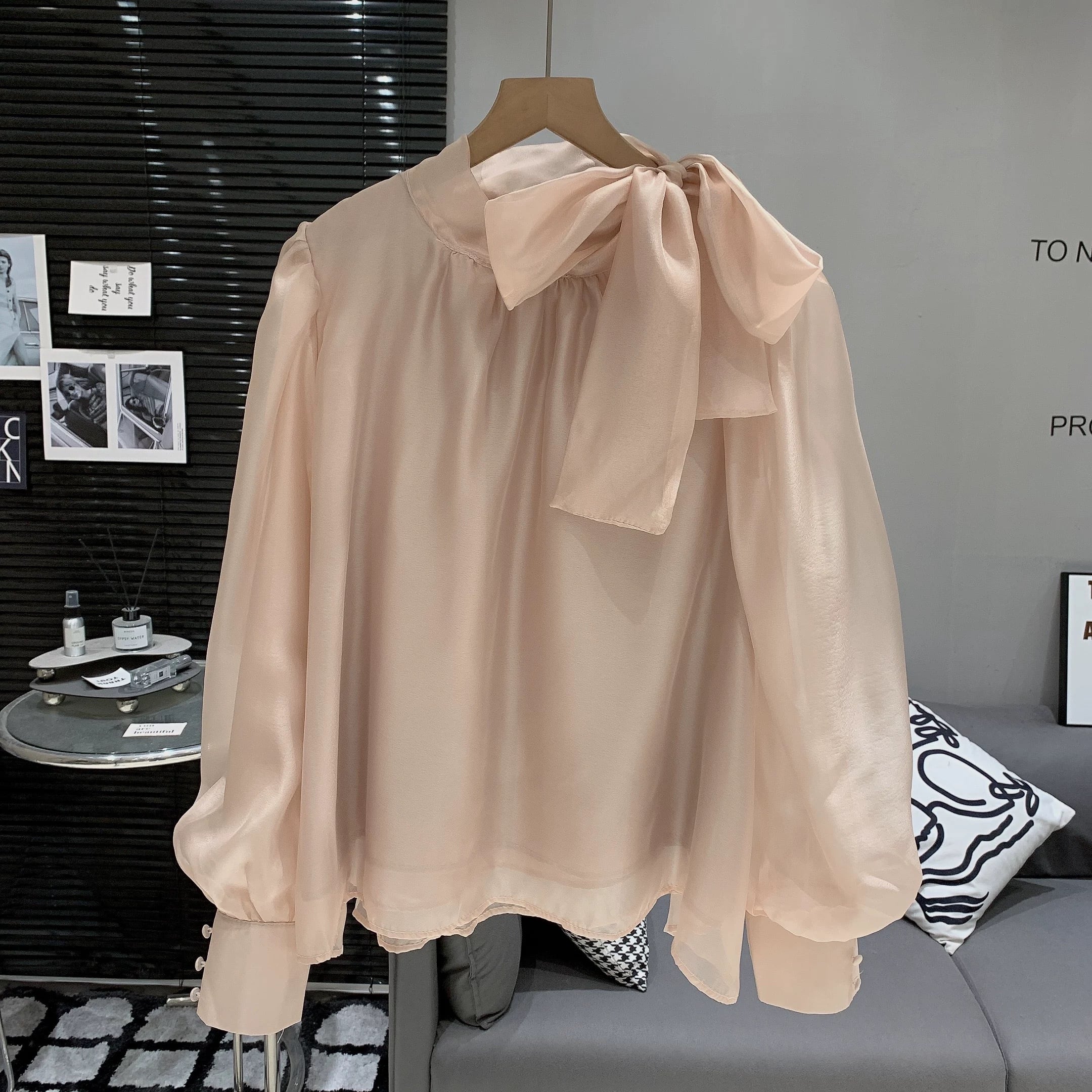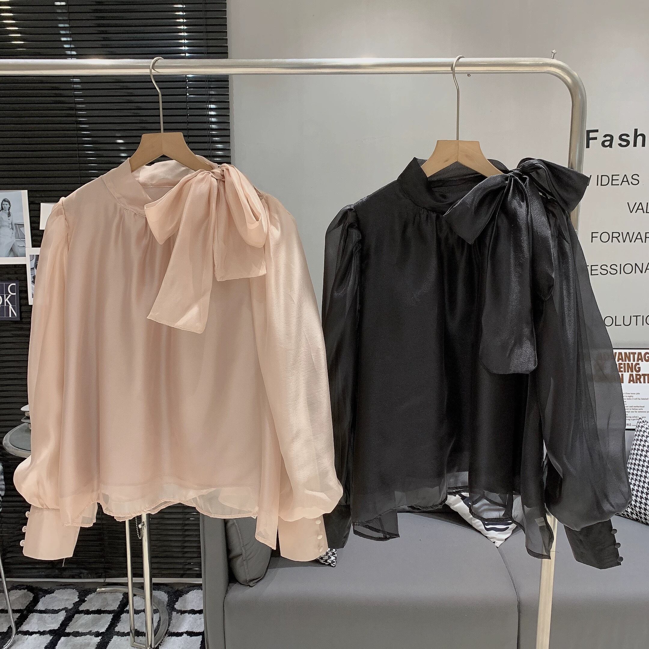 【tops】2色ボウタイシアーシャツ RH3609