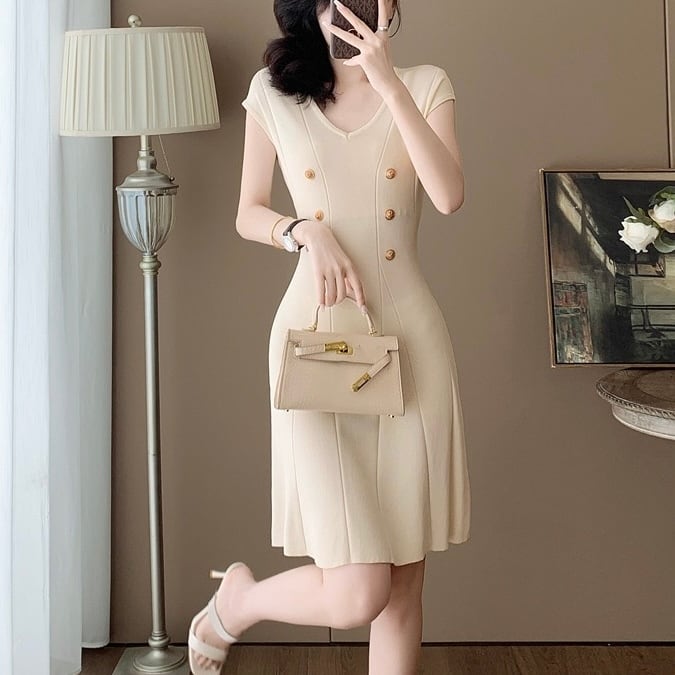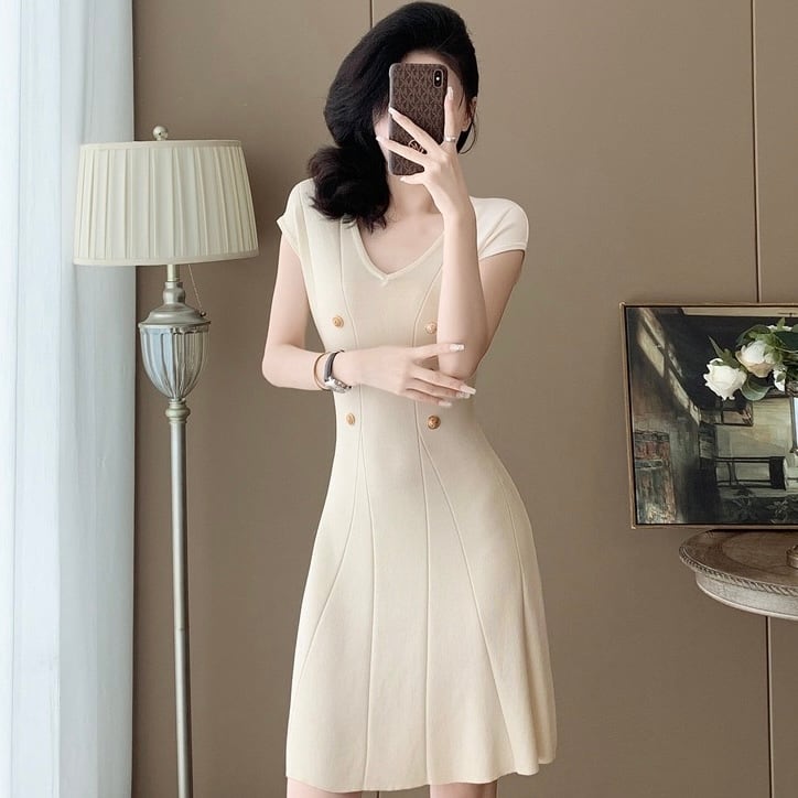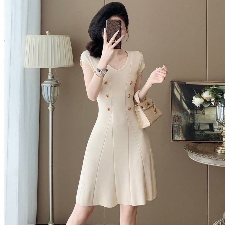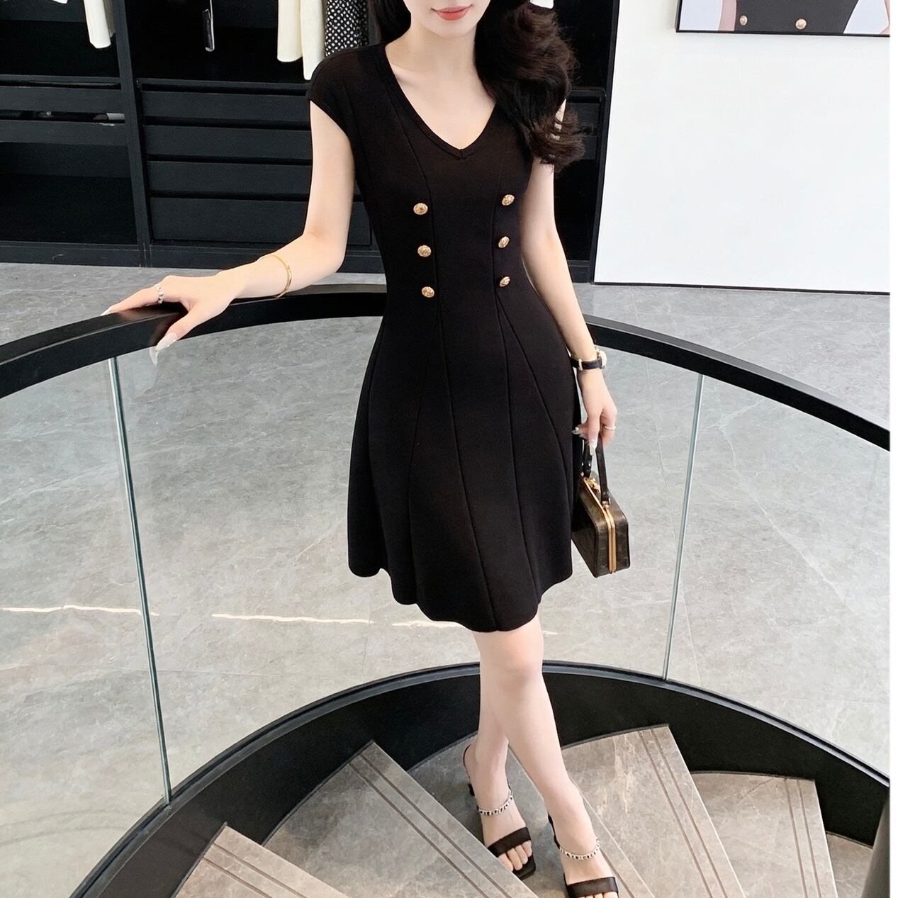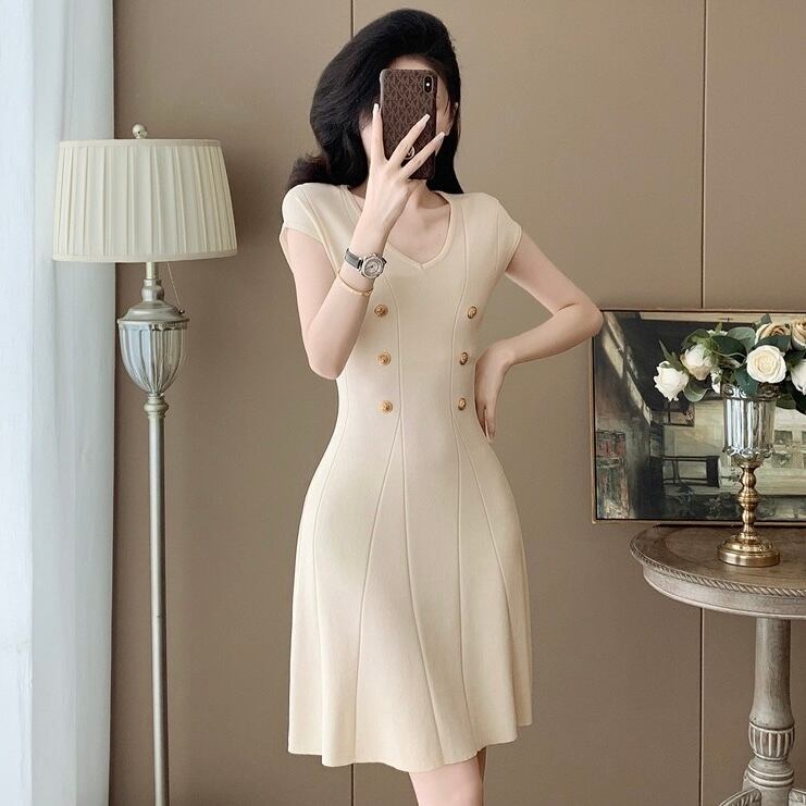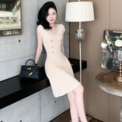 【dress】2色Vネックフロントボタンニットワンピース RH3970