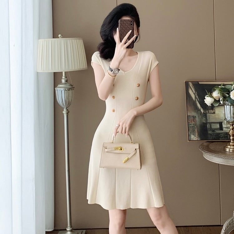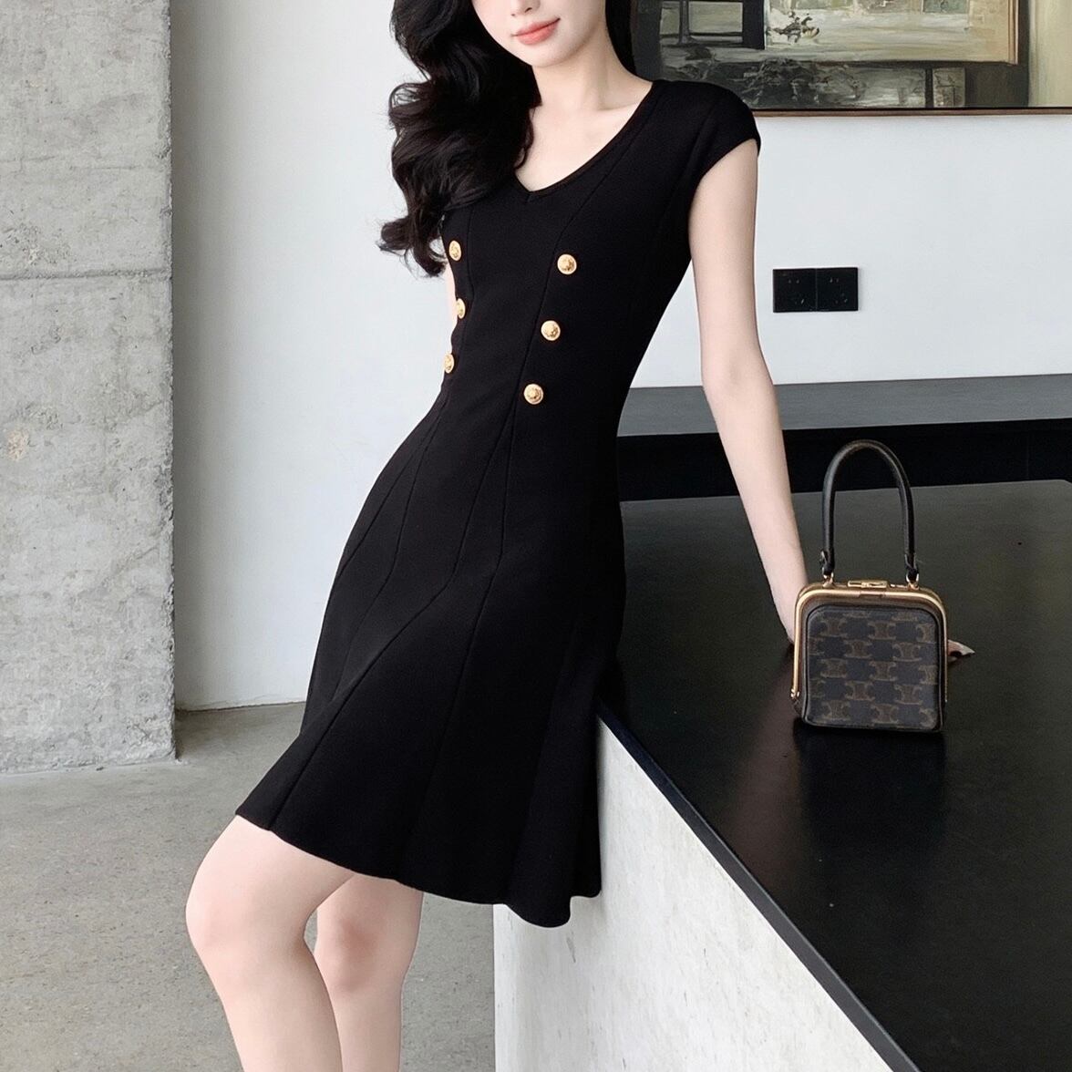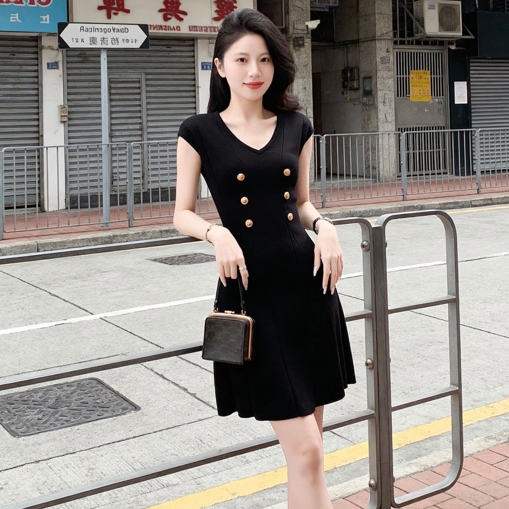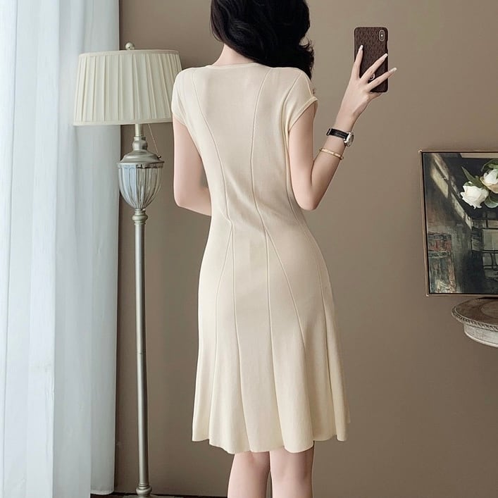 【dress】2色Vネックフロントボタンニットワンピース RH3970