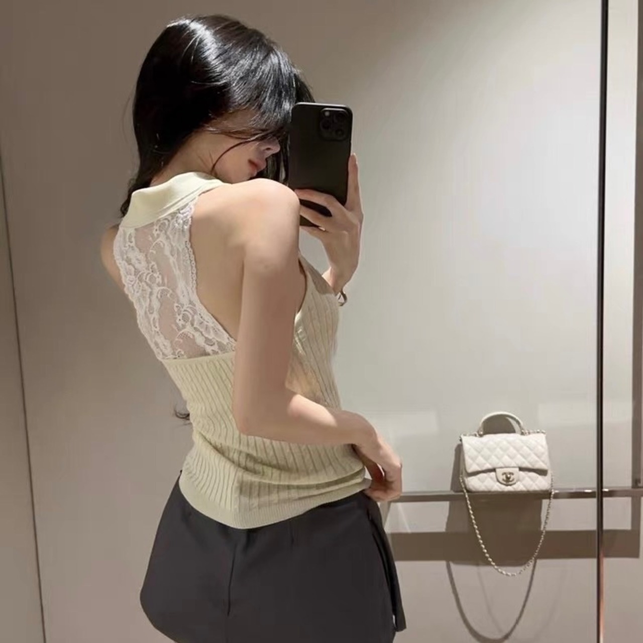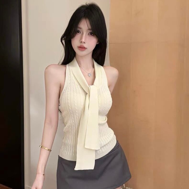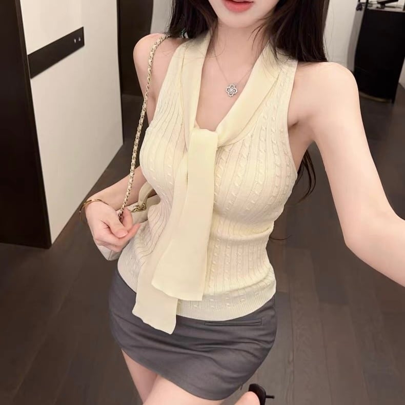 【tops】リボン付きホルターネックノースリーブトップス HK0370