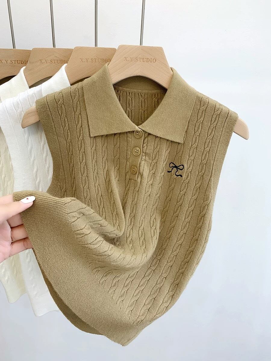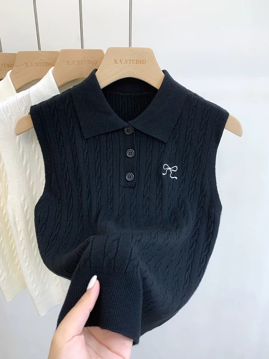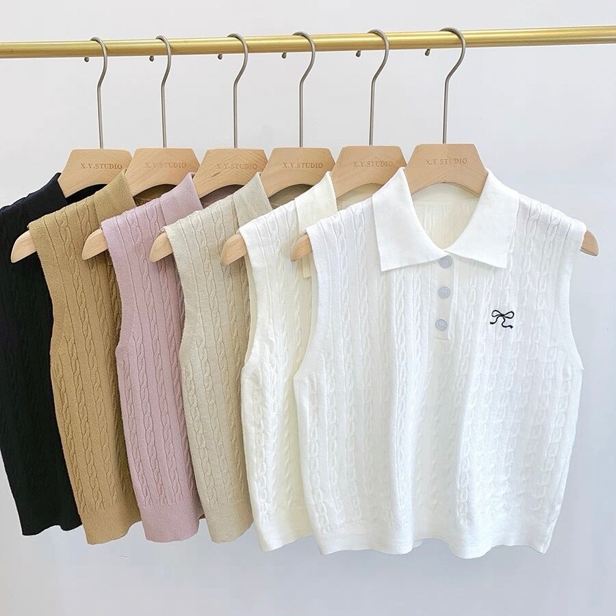 【tops】6色ポロ襟ニットベストノースリーブトップス HK0371