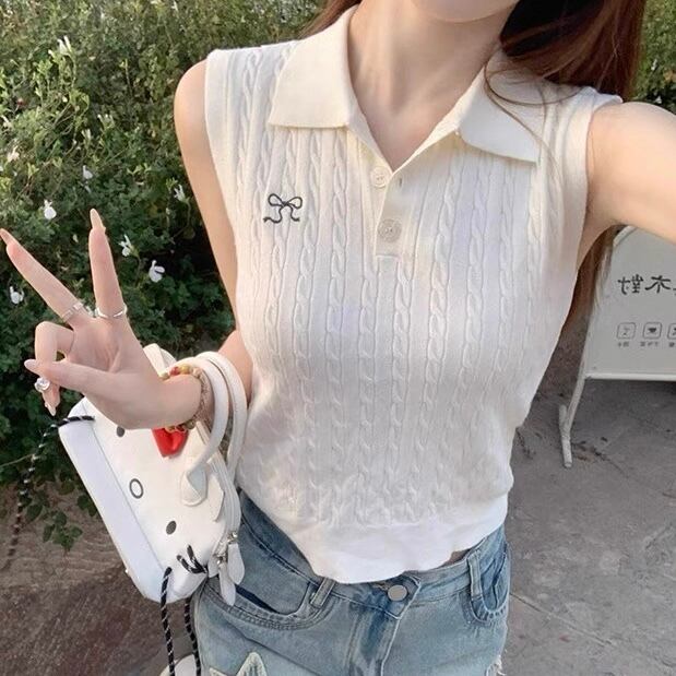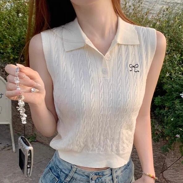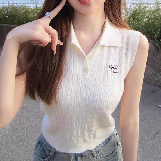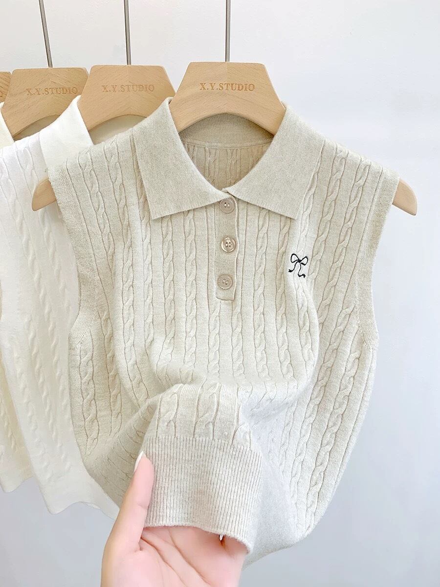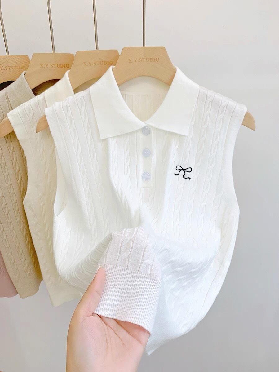 【tops】6色ポロ襟ニットベストノースリーブトップス HK0371