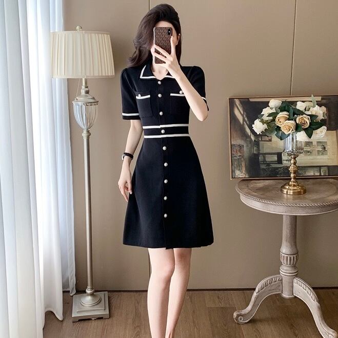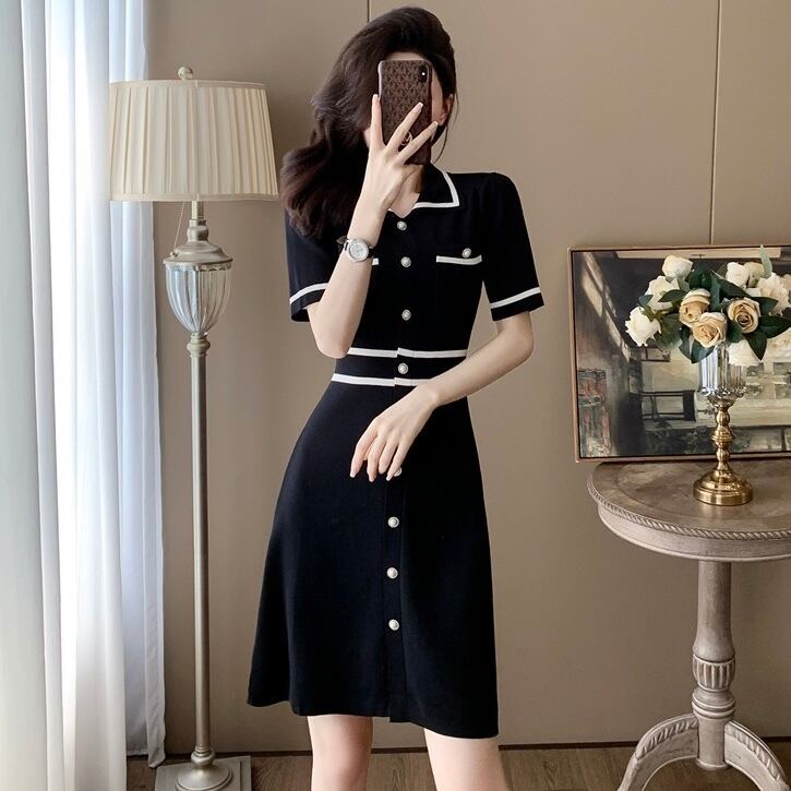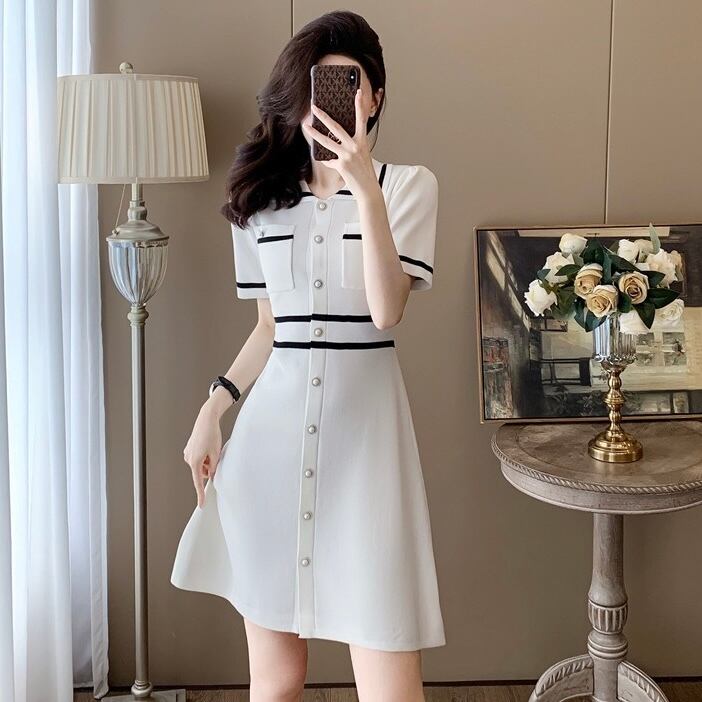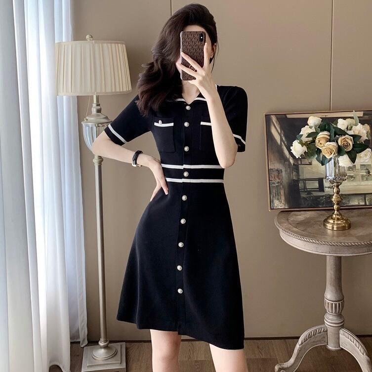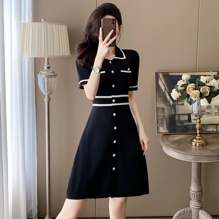 【dress】2色配色ニットワンピース RH3106