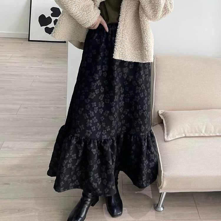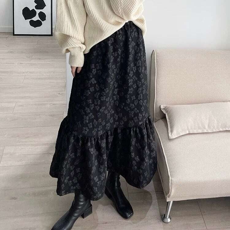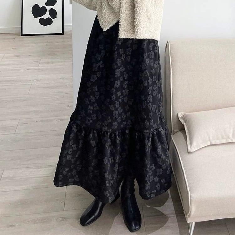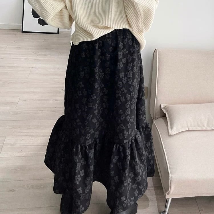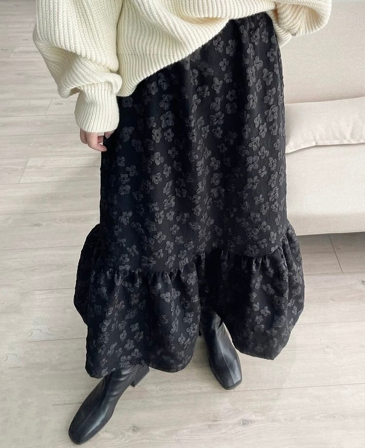【bottoms】フラワージャガードヘムフリルスカート HK0381