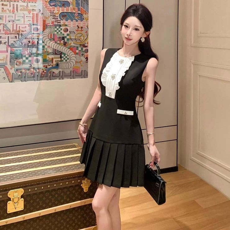 【dress】配色ノースリーブワンピース RH3122