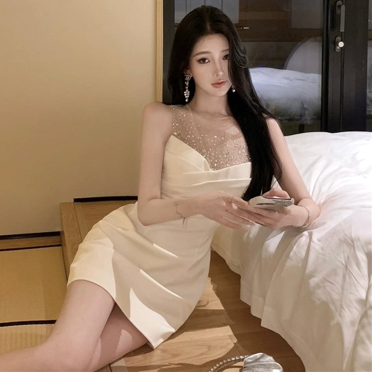 【dress】2色ビジューチュールドッキングワンピース RH3131