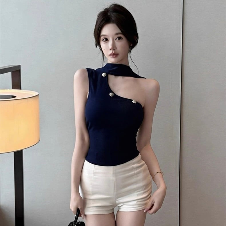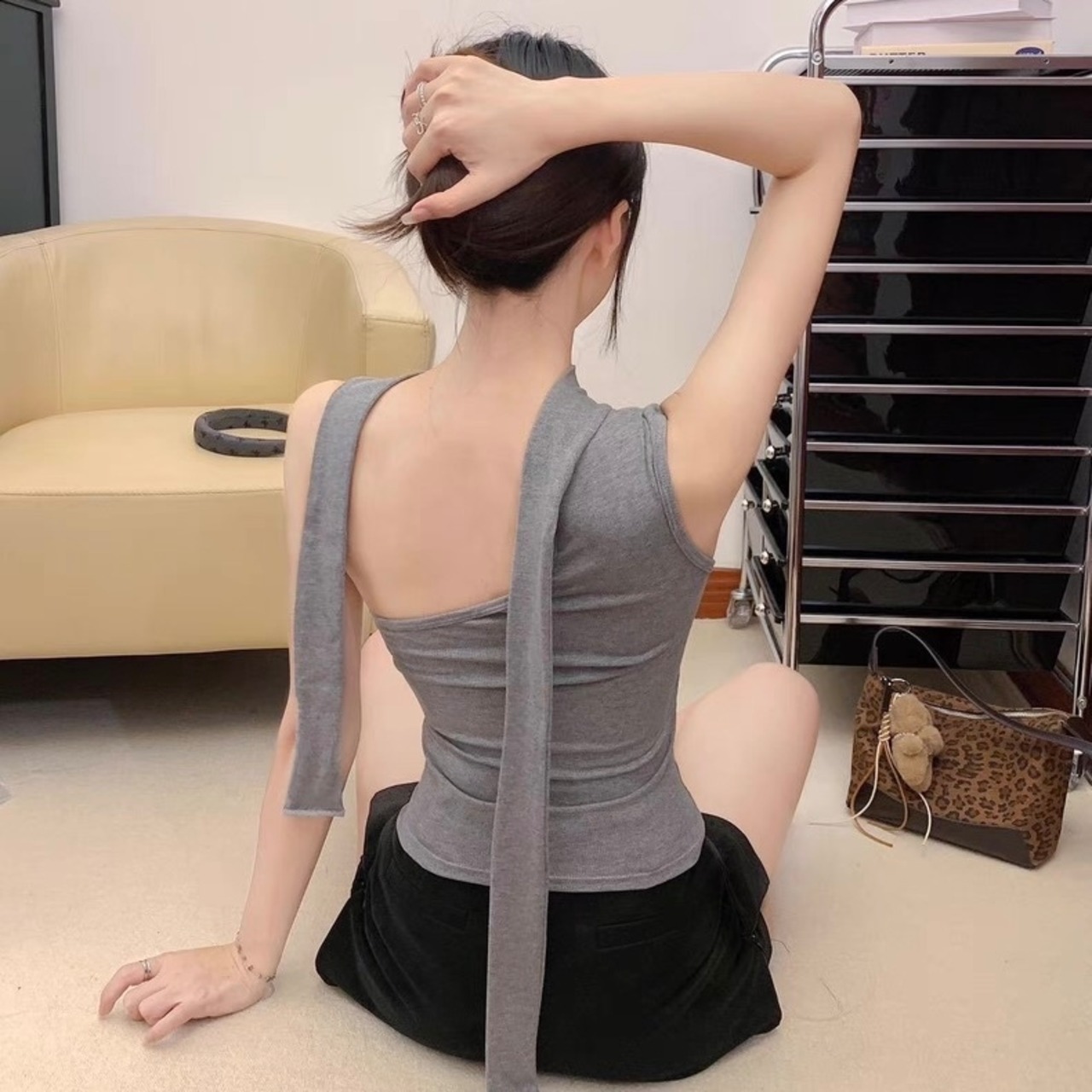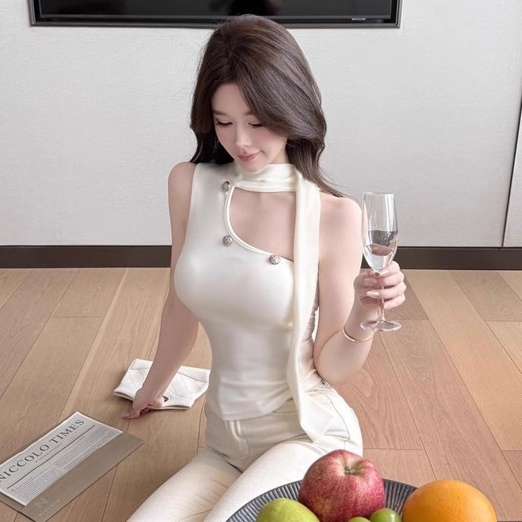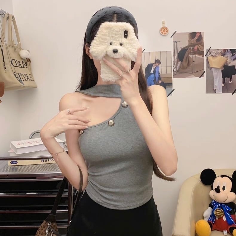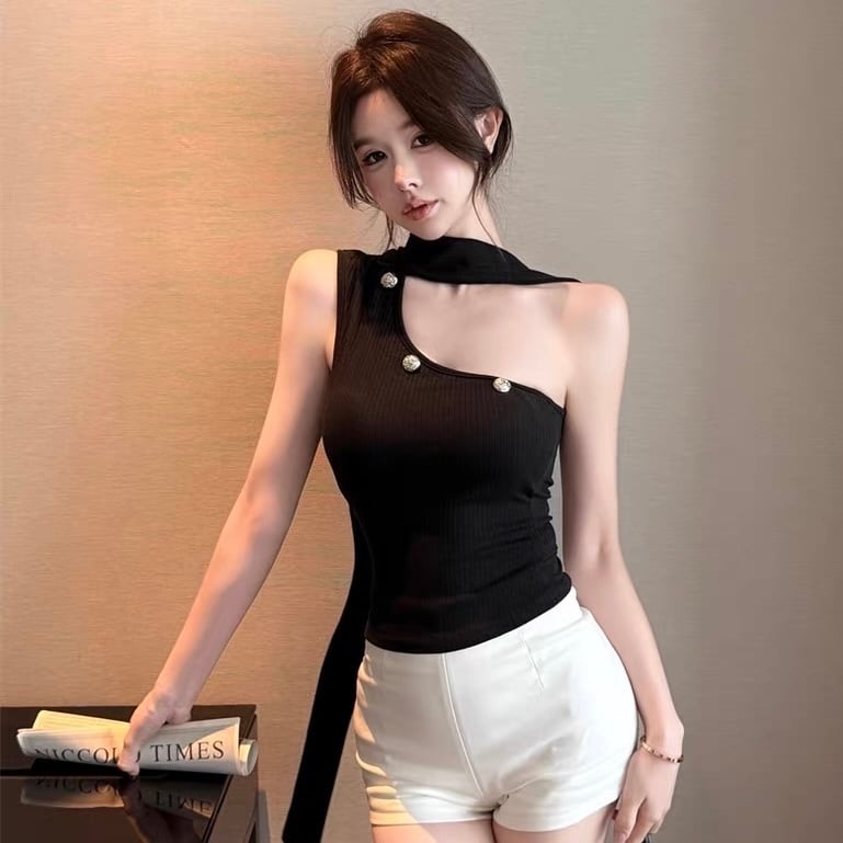 【tops】5色リボン付きオフショルダーキャミトップス HK0340