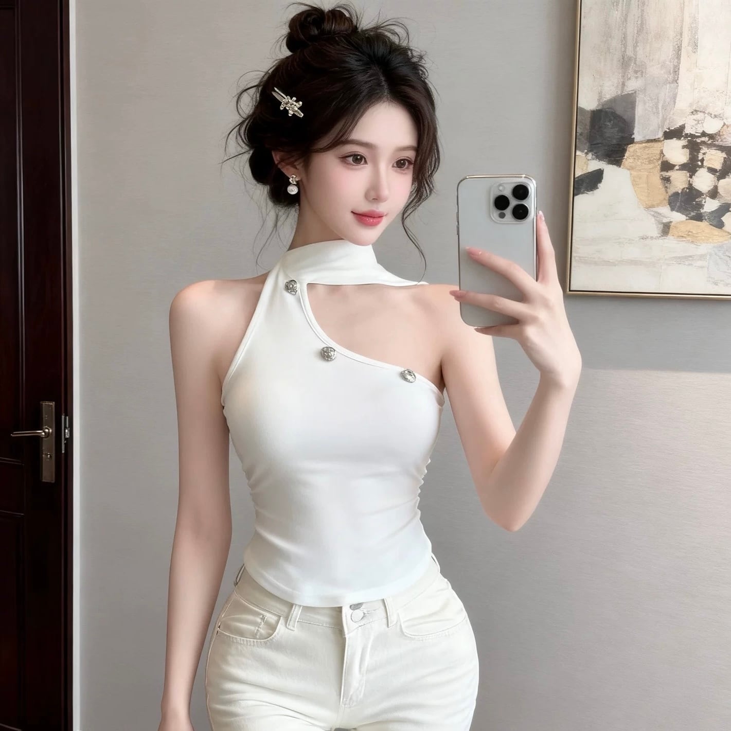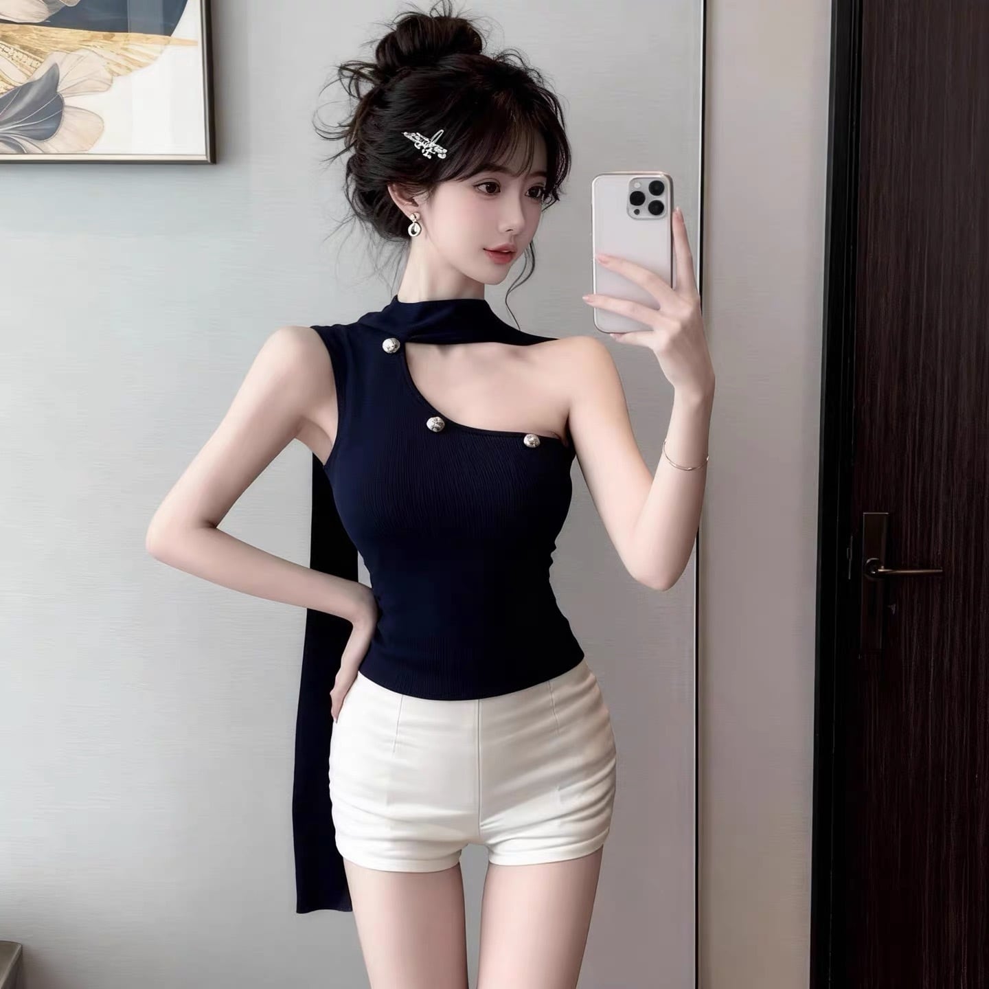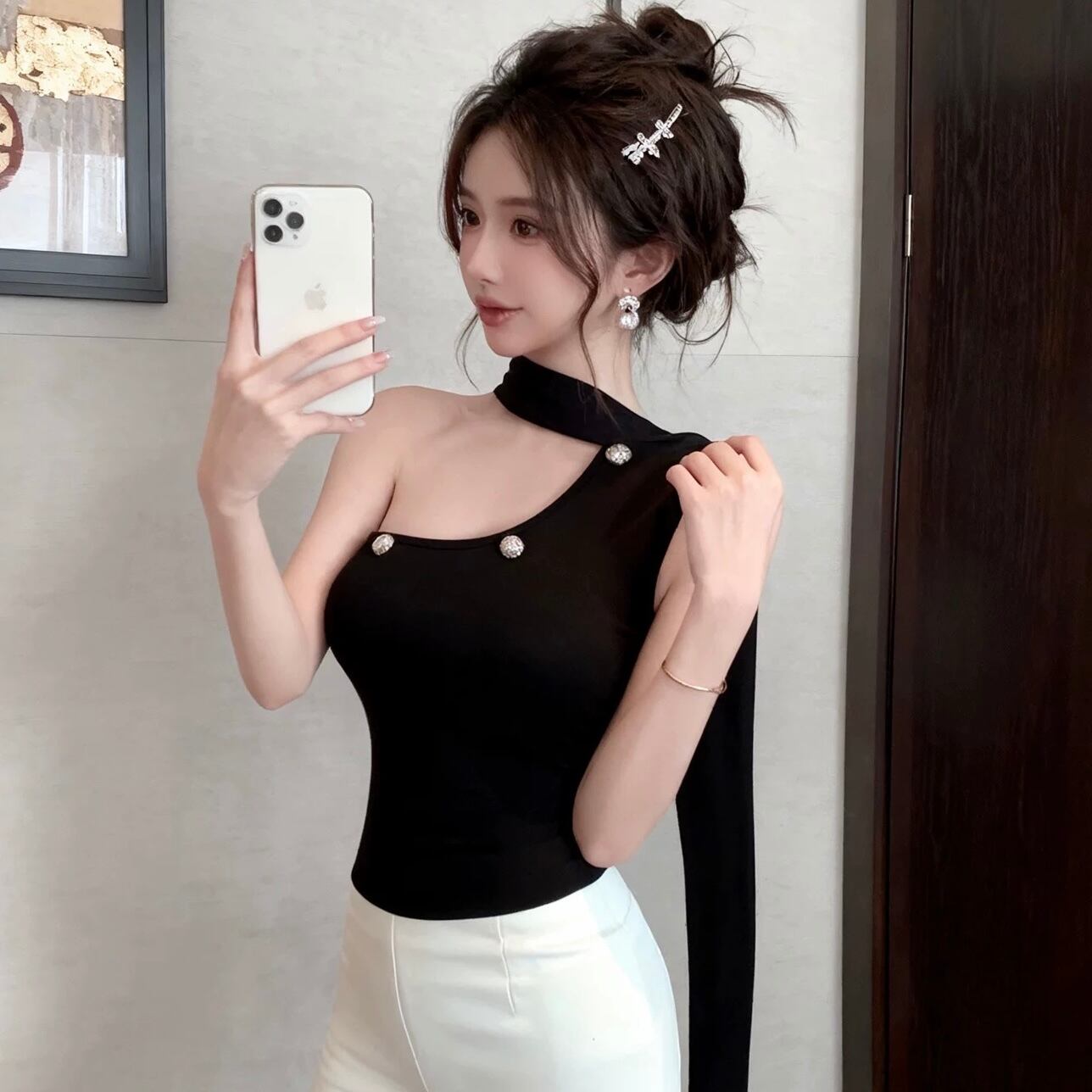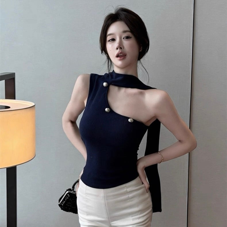 【tops】5色リボン付きオフショルダーキャミトップス HK0340
