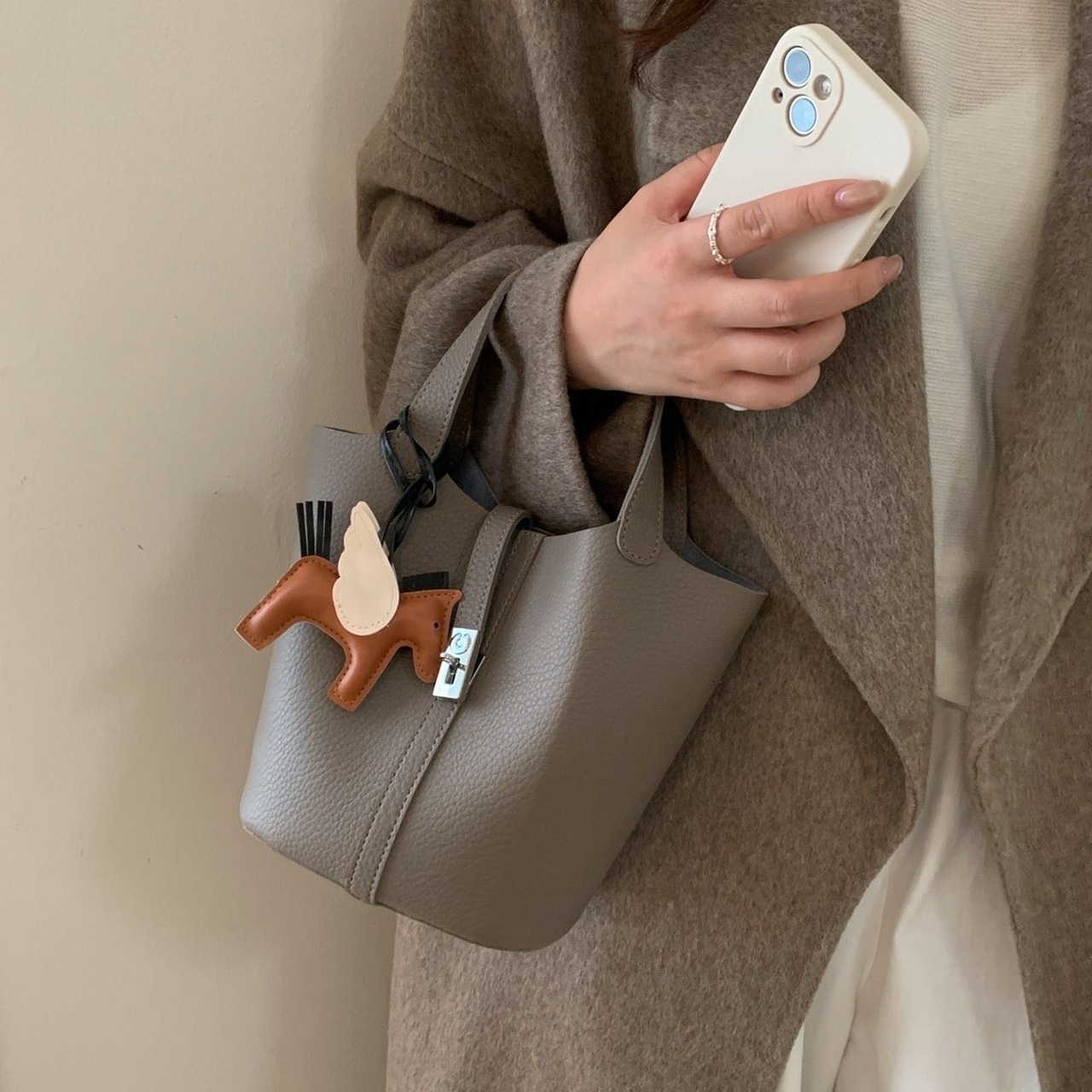 【bag】5色2wayポーチ付きショルダーバケットバッグ RH3139
