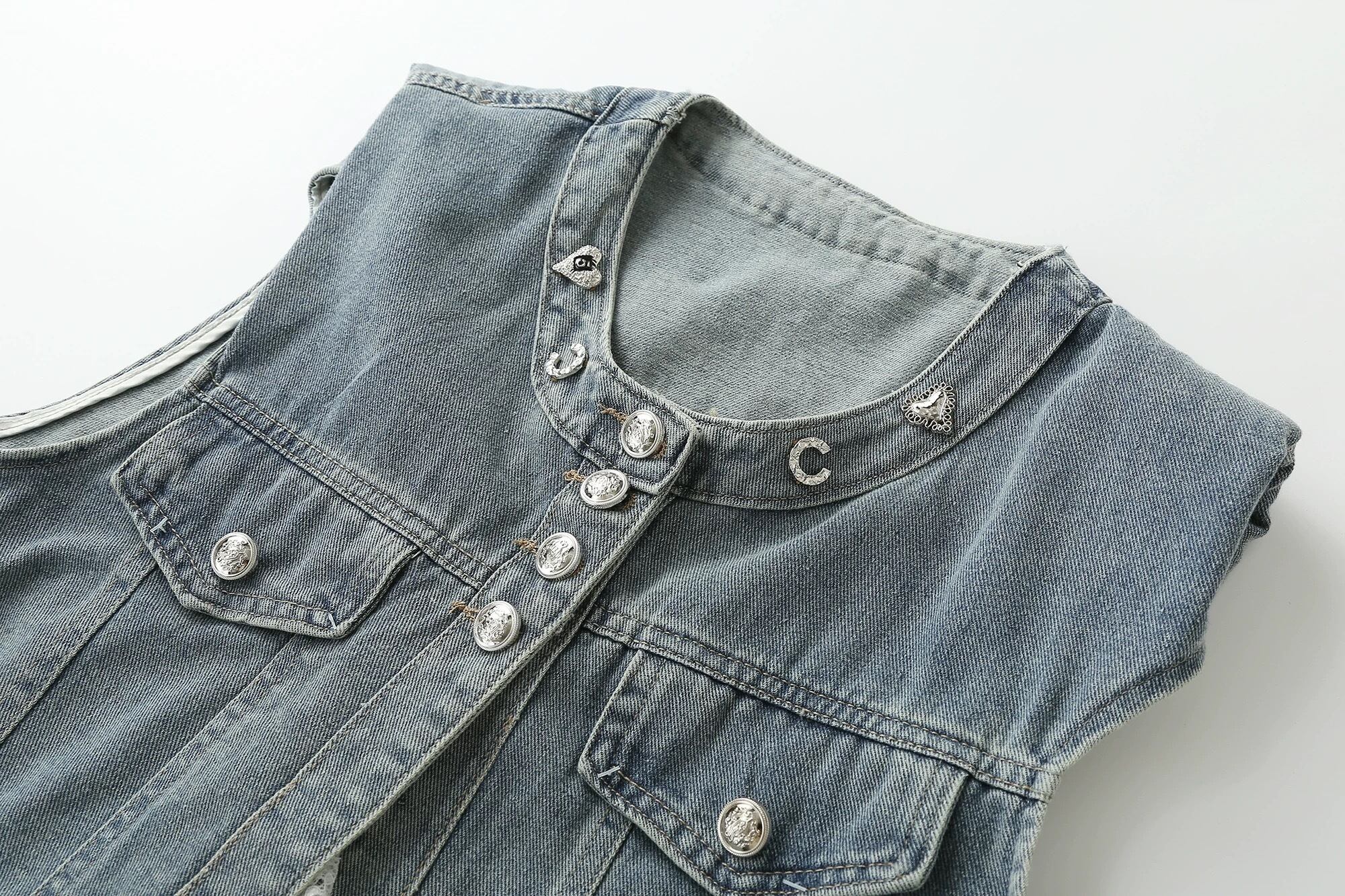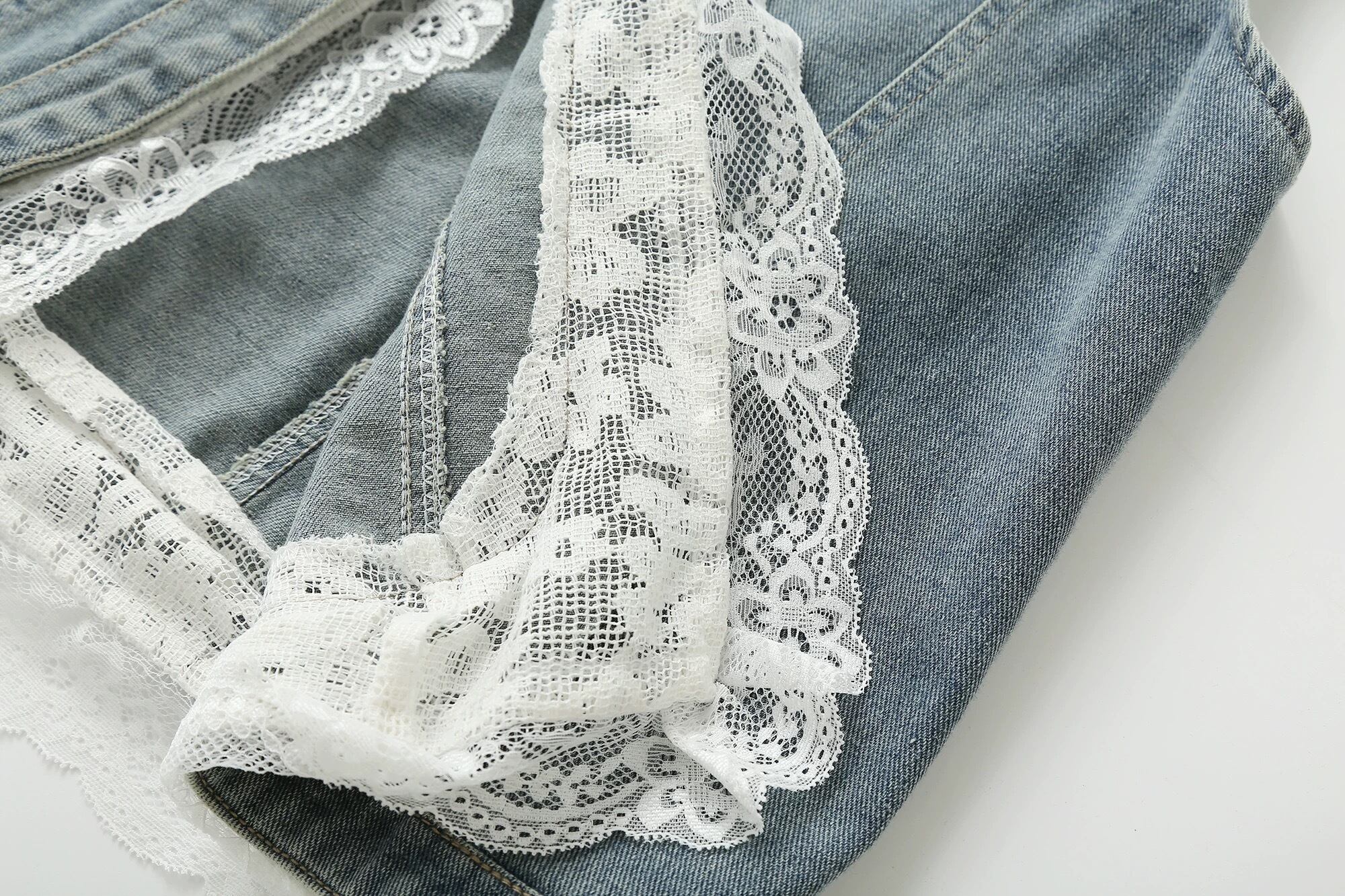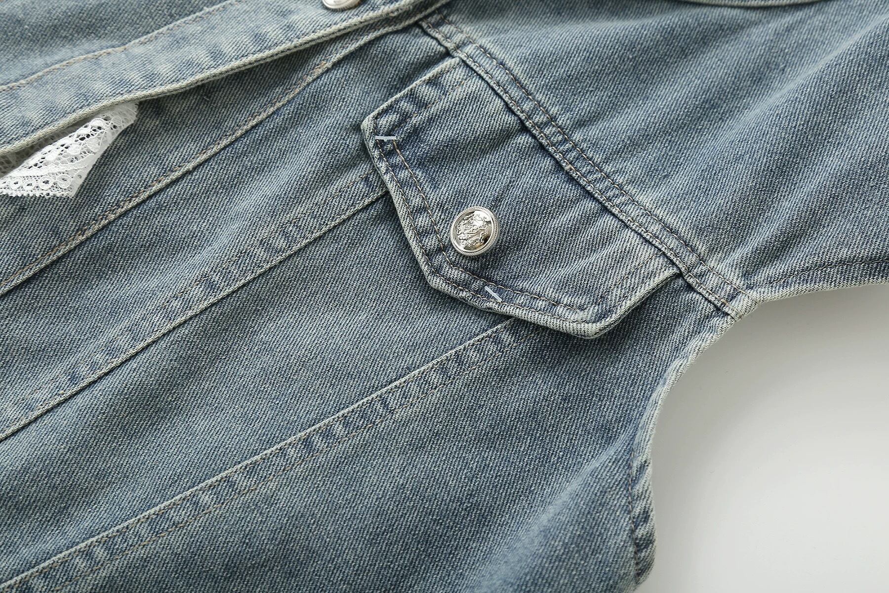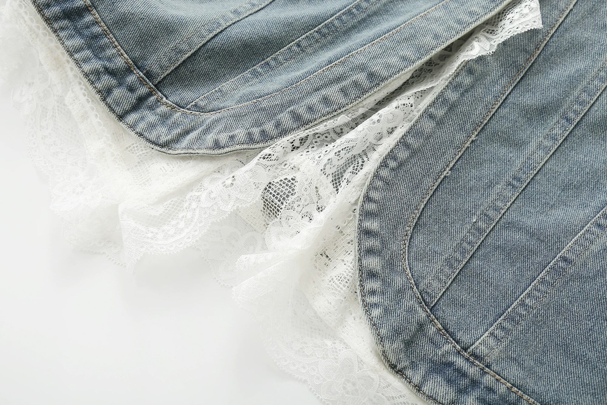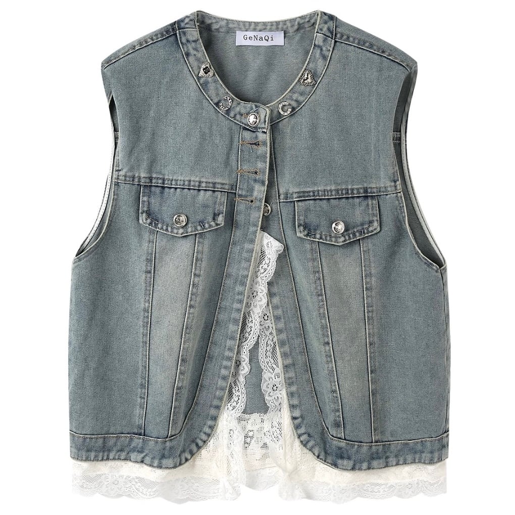 【outer】レース切り替えノースリーブデニムベスト HK0355
